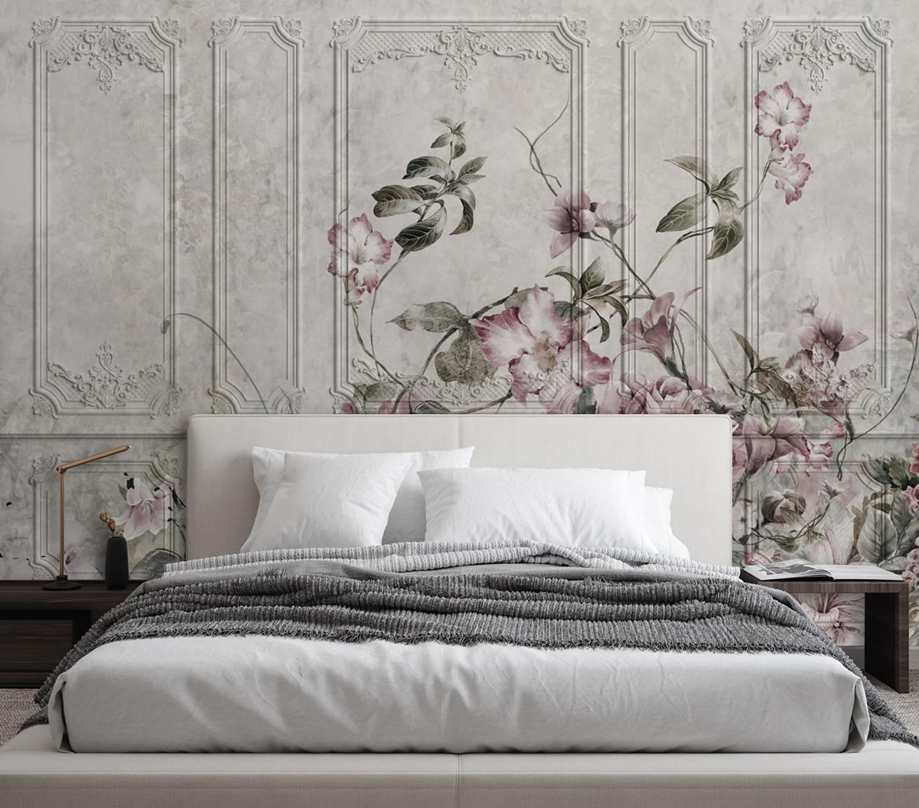 Beschrijving en kenmerken - Decoratieve fotowand met 3D-aspect en vintage stijl met wilde bloemenpatroon
