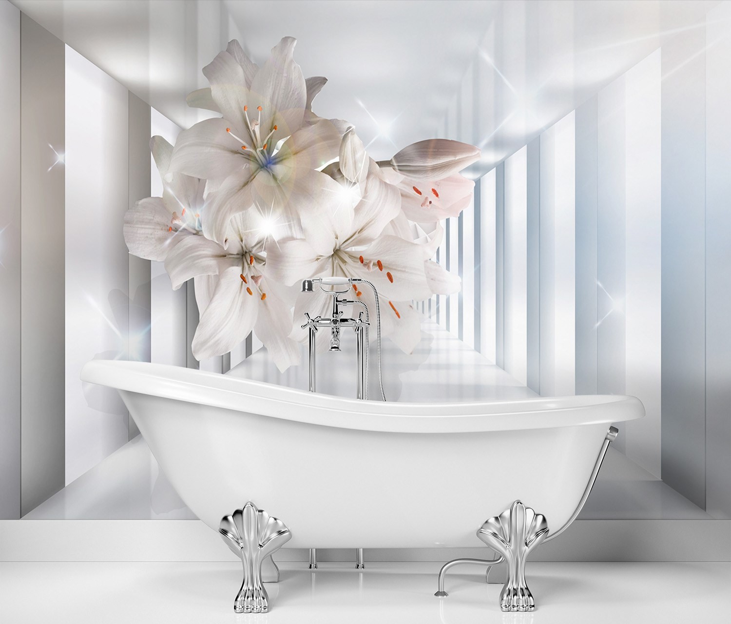 Productinformatie "Rechthoekig waterafstotend behang gedrukt op canvas 3d bloemen in een gang"
