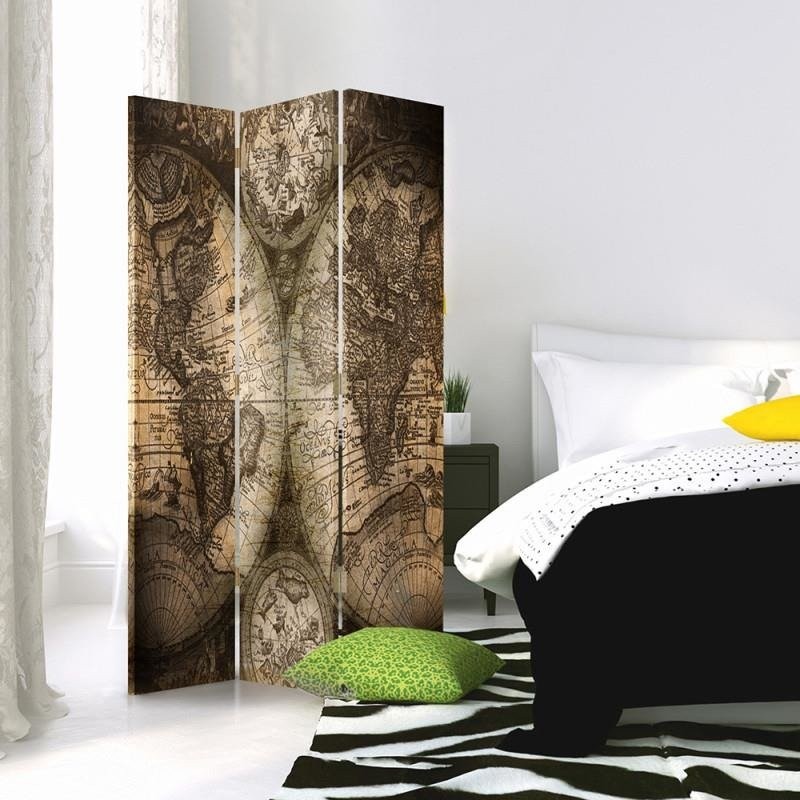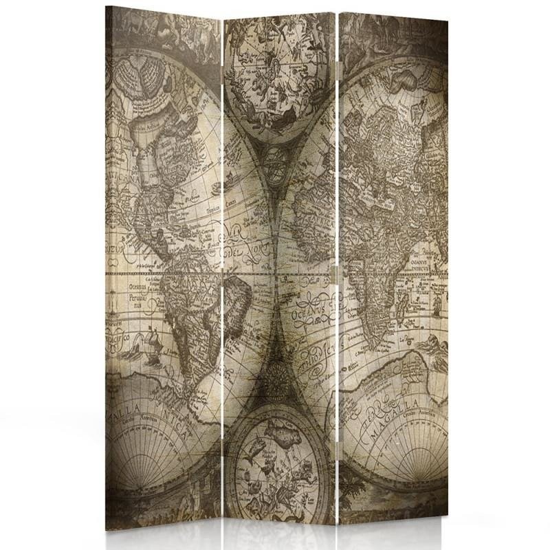 Dubbelzijdig ruimteverdelerscherm van canvas met mdf-frame van de oude wereldkaart
