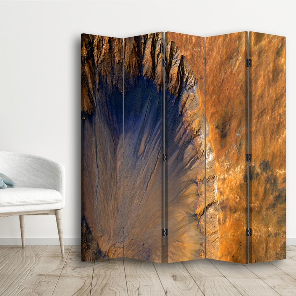 Beschrijving en kenmerken - Roomdivider gezeefdrukt op canvas met geoxideerd abstractie MDF-frame