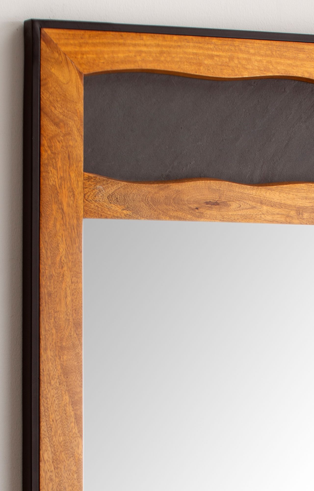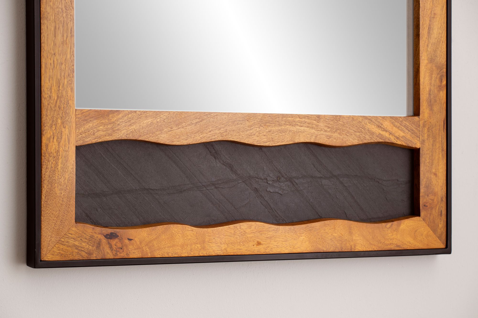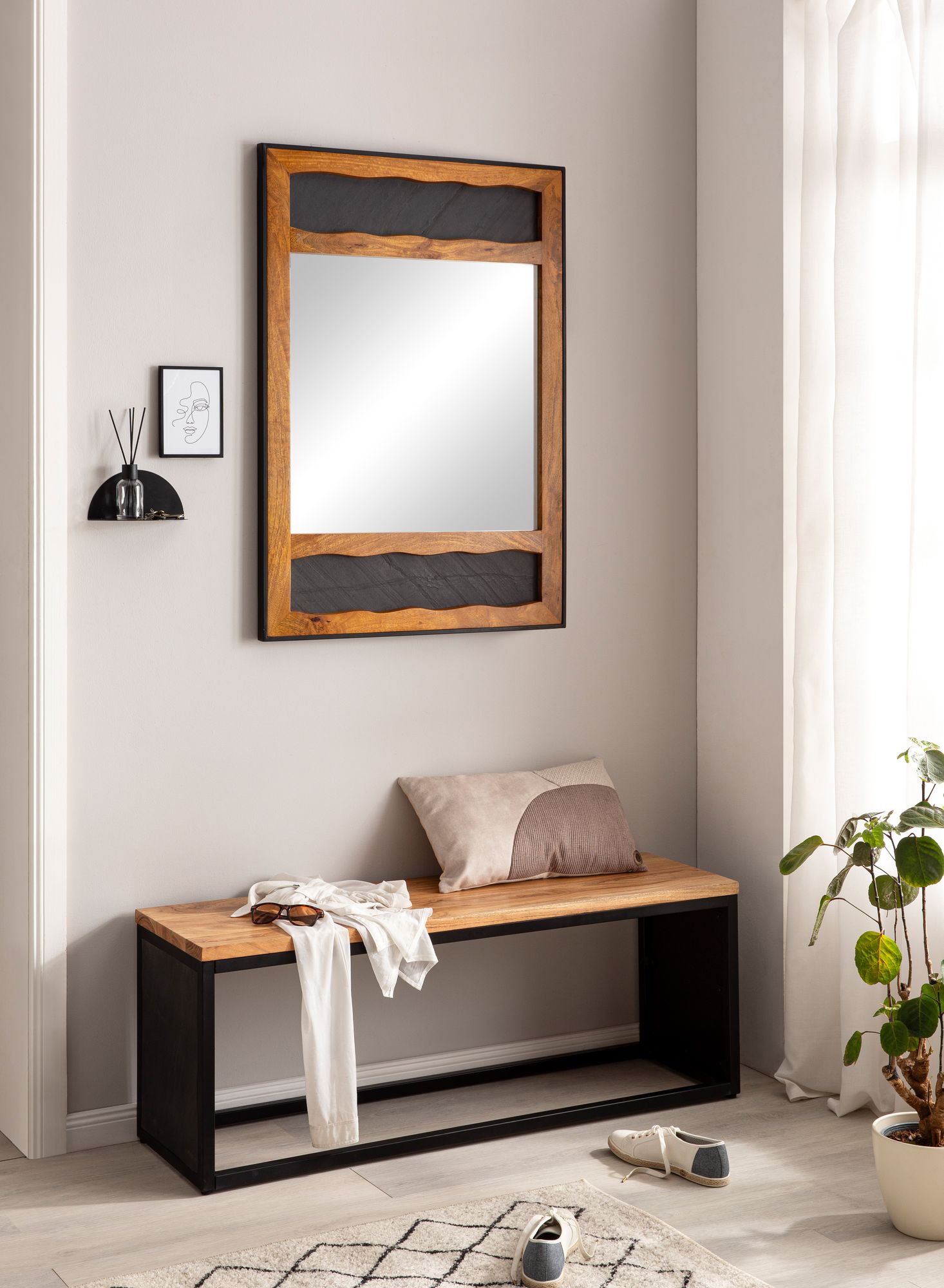 Productinformatie "Wandspiegel mango massief hout & steenlook 72x102x3 cm halspiegel groot"