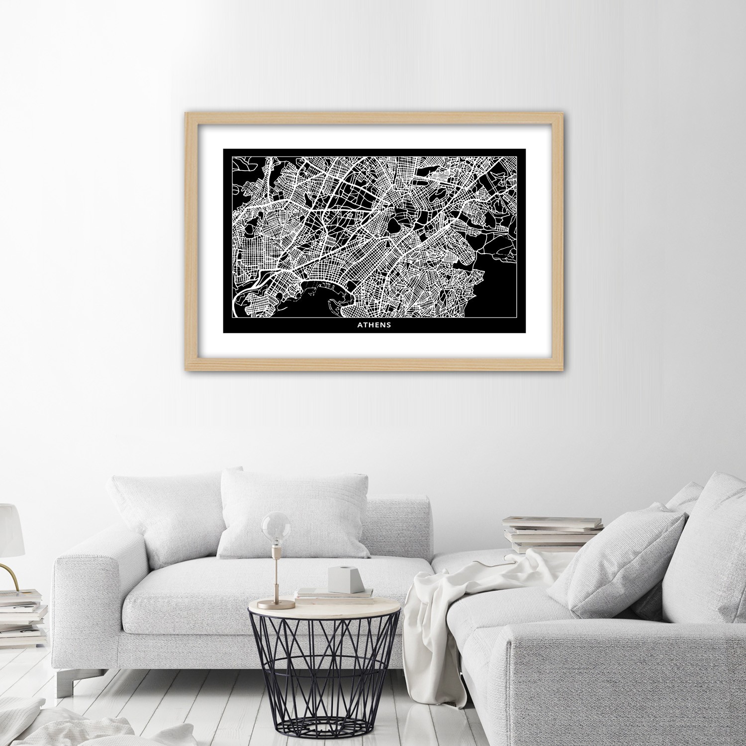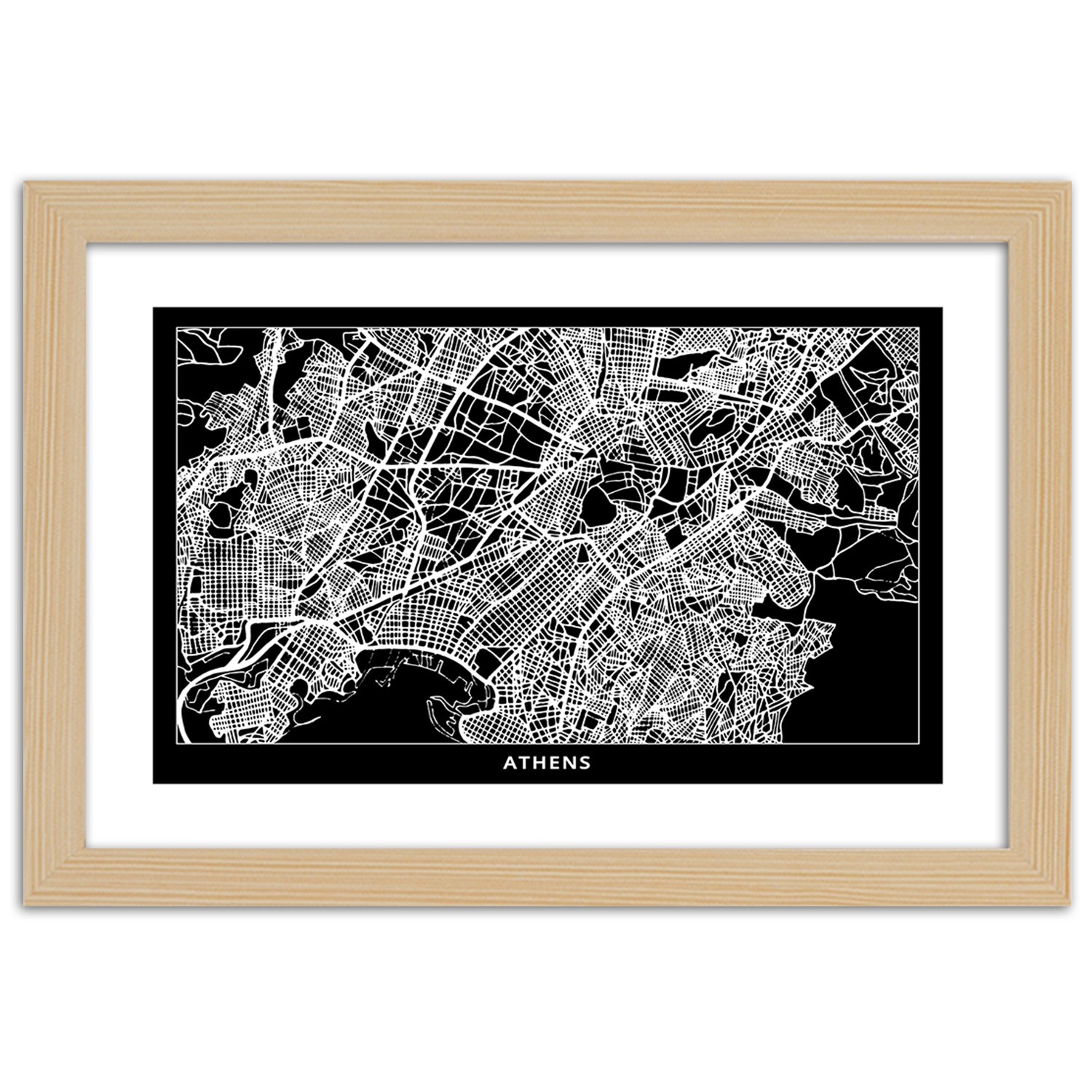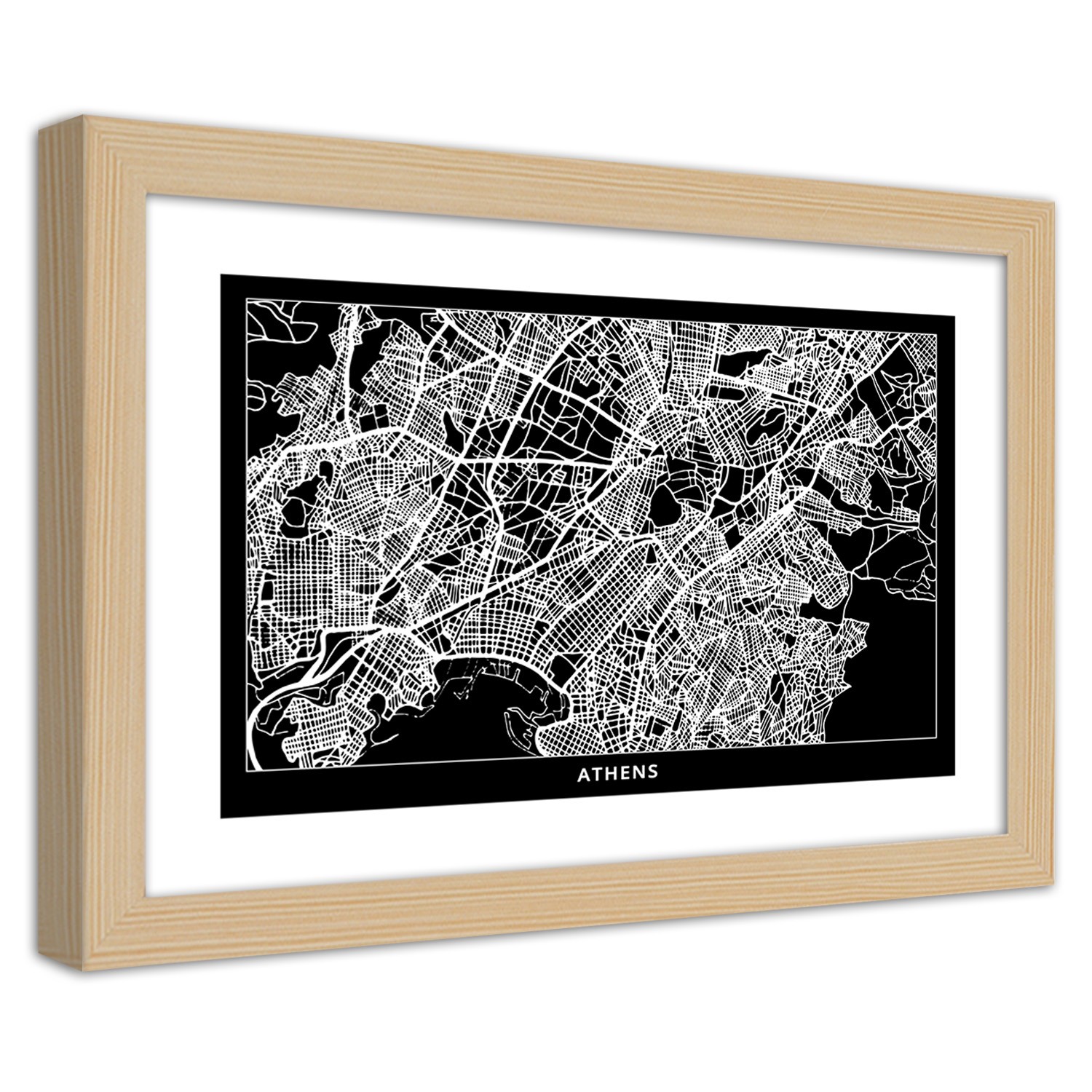Productinformatie "Frame gedrukt op canvas met afbeelding van een kaart van de stad athene gemaakt in mdf"