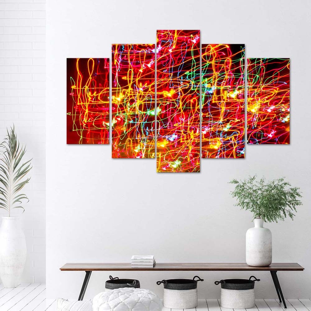 Frame samengesteld uit vijf mdf-panelen gedrukt op papier met afbeelding van lichten in de stad