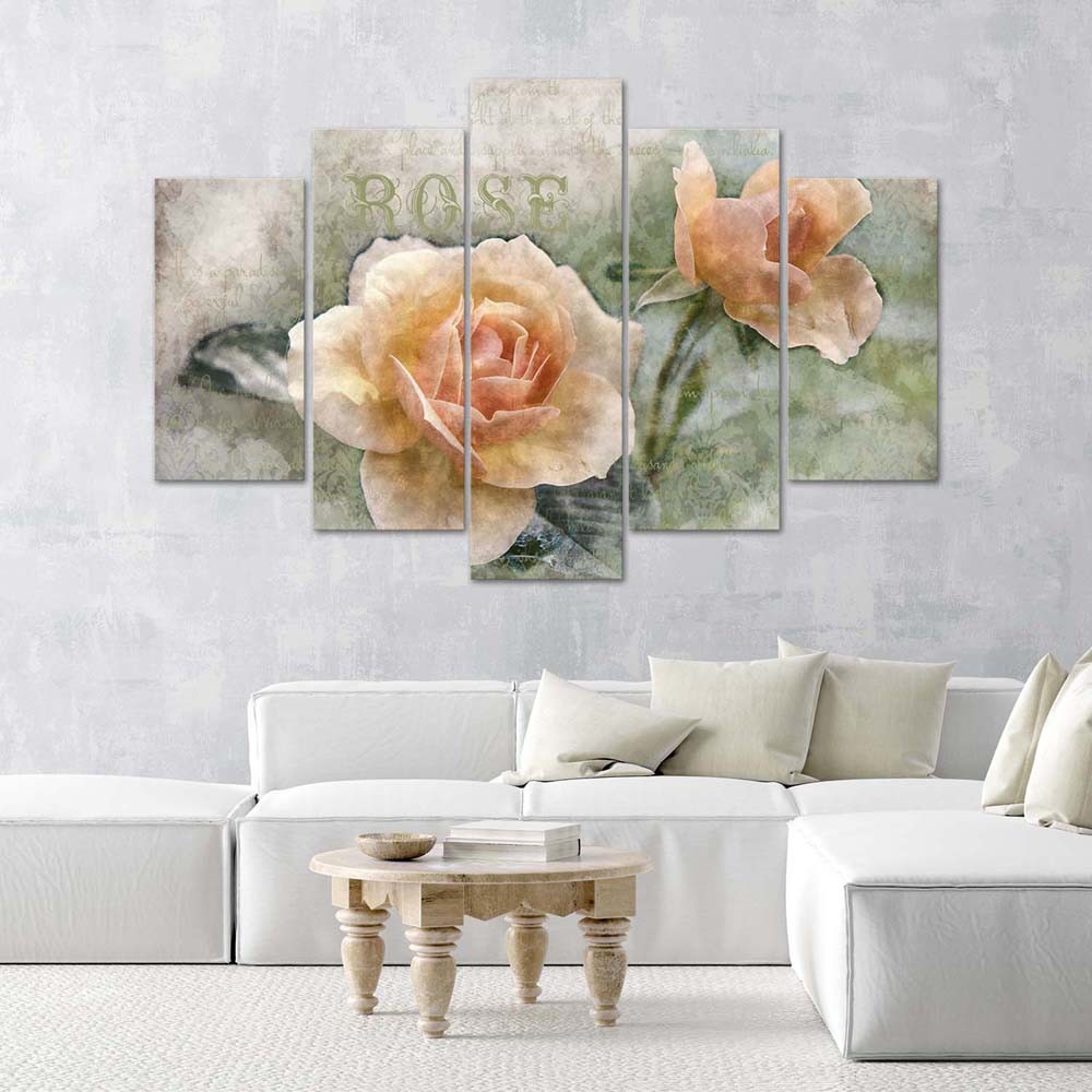 - Frame bestaande uit vijf shabby chic tea rose stukken gedrukt op MDF-canvas (medium density fiber).