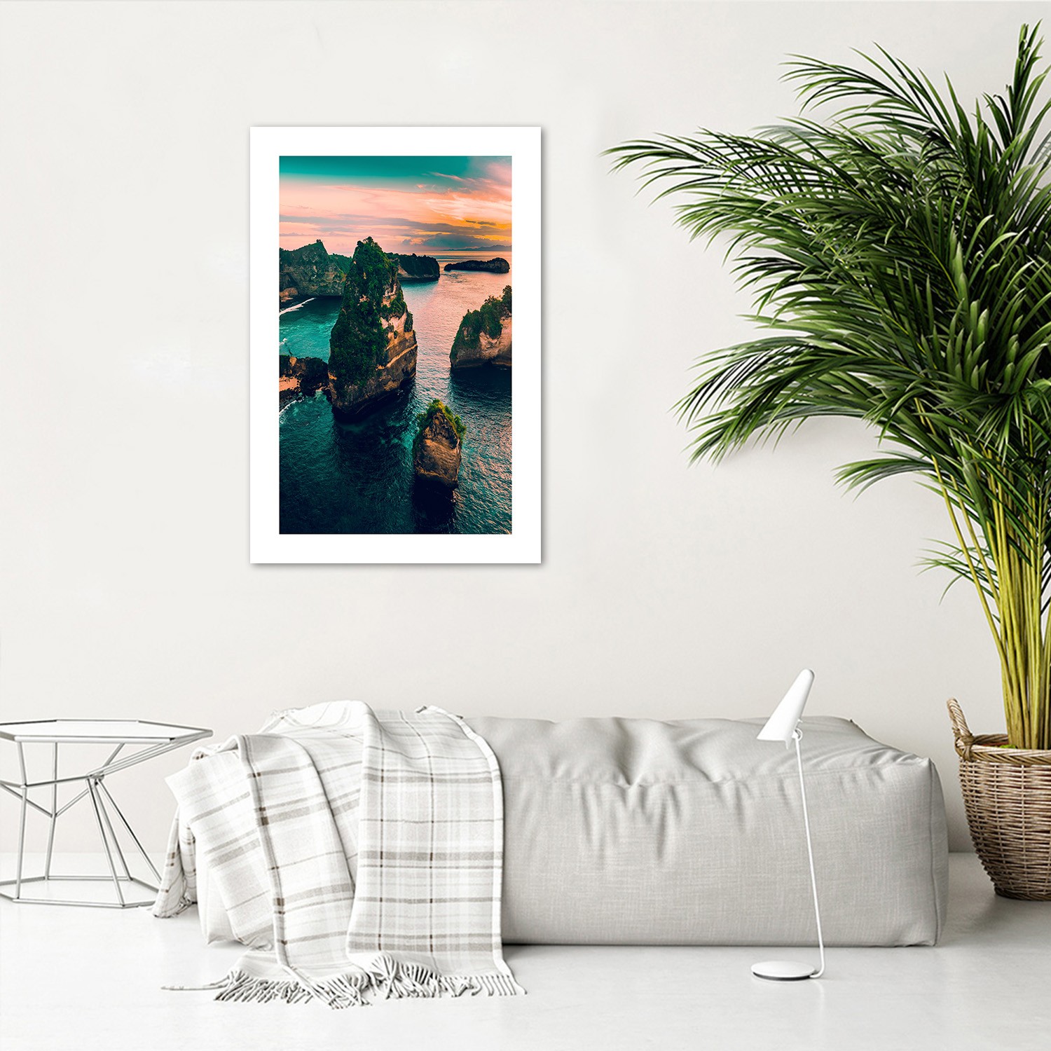 Productinformatie "Poster, Rocks in the turquoise ocean"