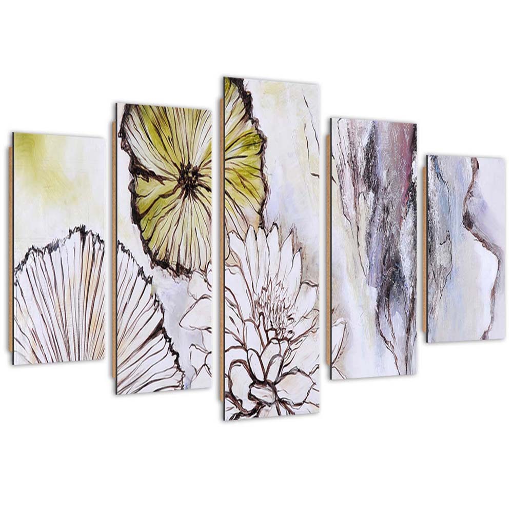 Omschrijving en kenmerken - Set van vijf kaders met wit bloemenpatroon