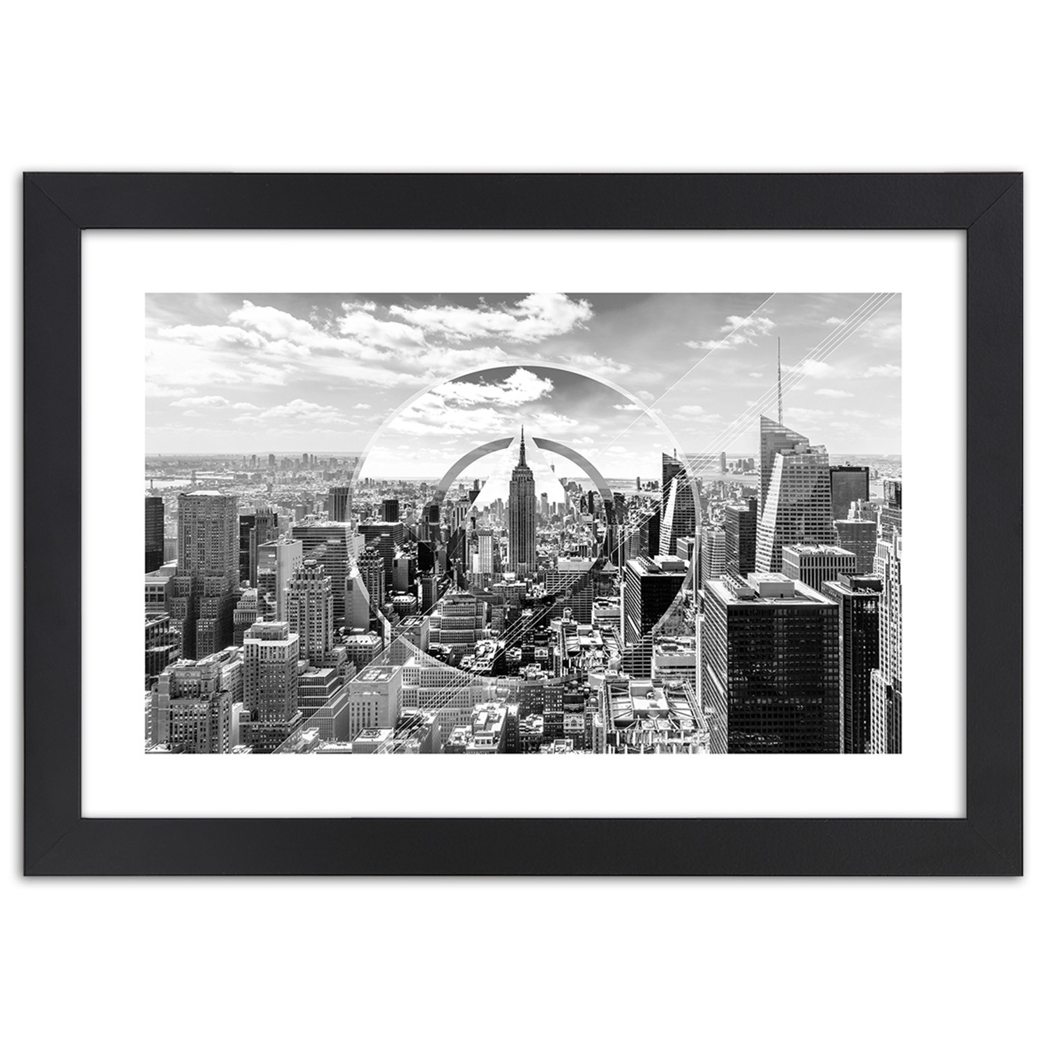 Zwart gefineerd mdf frame met een poster van wolkenkrabbers