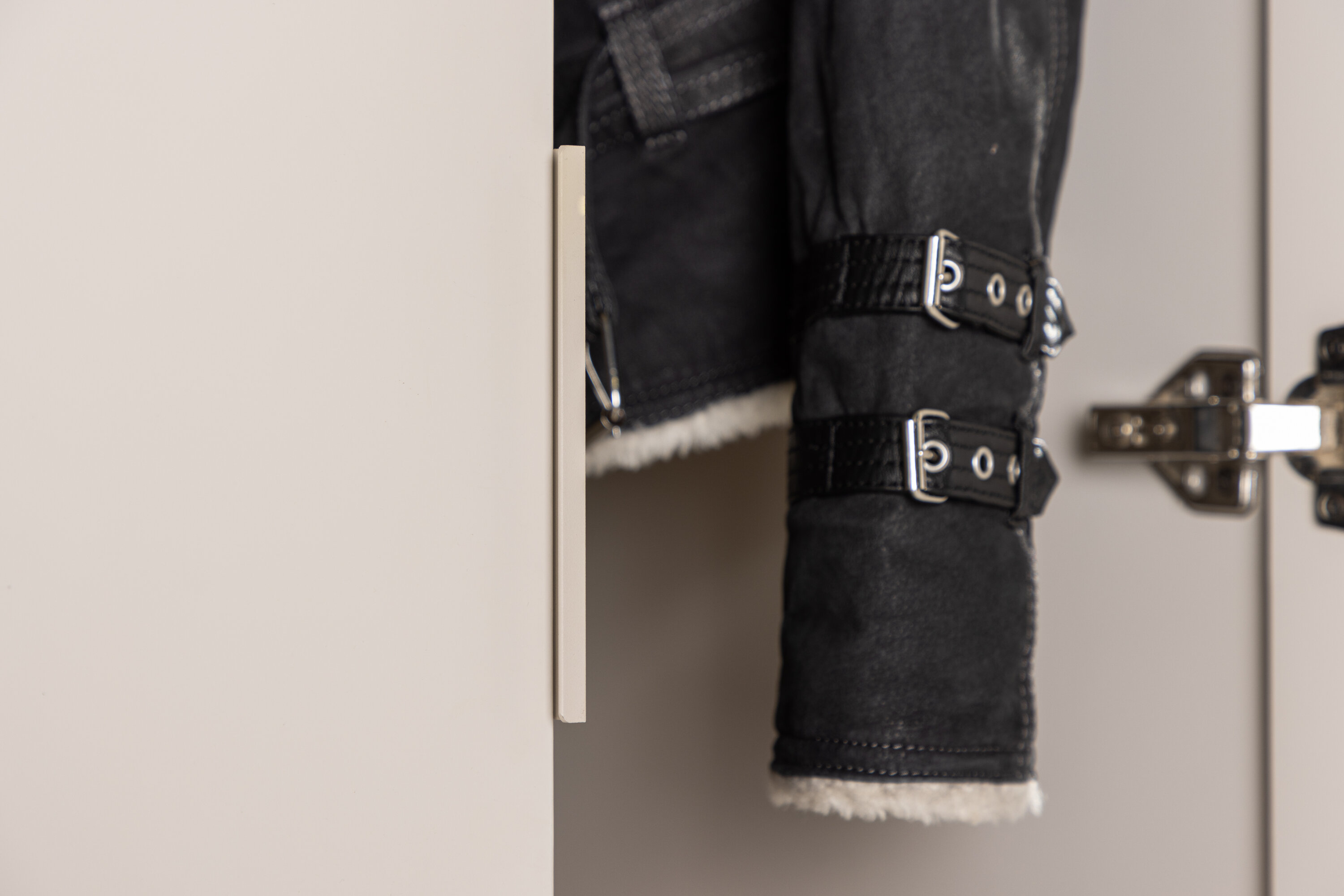 La garde-robe dispose de deux portes qui s'ouvrent sur un intérieur bien planifié avec des étagères et des fonctions de suspension. Vos vêtements auront à la fois de l'espace et les soins qu'ils méritent – oubliez le désordre et les vêtements froissés. Avec son design bas au sol, la garde-robe repose fermement sur le sol, offrant un sentiment robuste de durabilité au point focal.