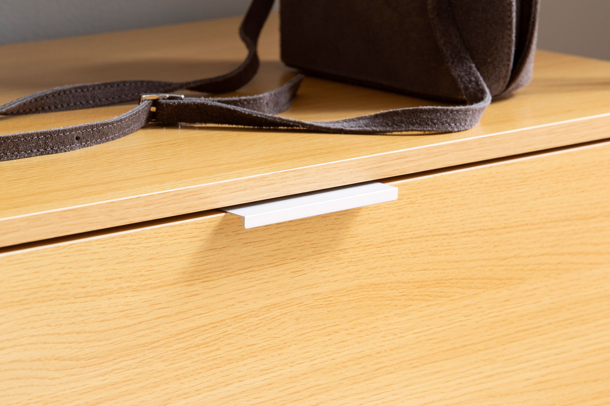La surface au-dessus des tiroirs est idéale pour déposer clés ou objets d’ornement. Les patins antidérapants protègent les sols et la surface mélaminée résiste à l'eau et aux rayures, assurant une excellente robustesse.