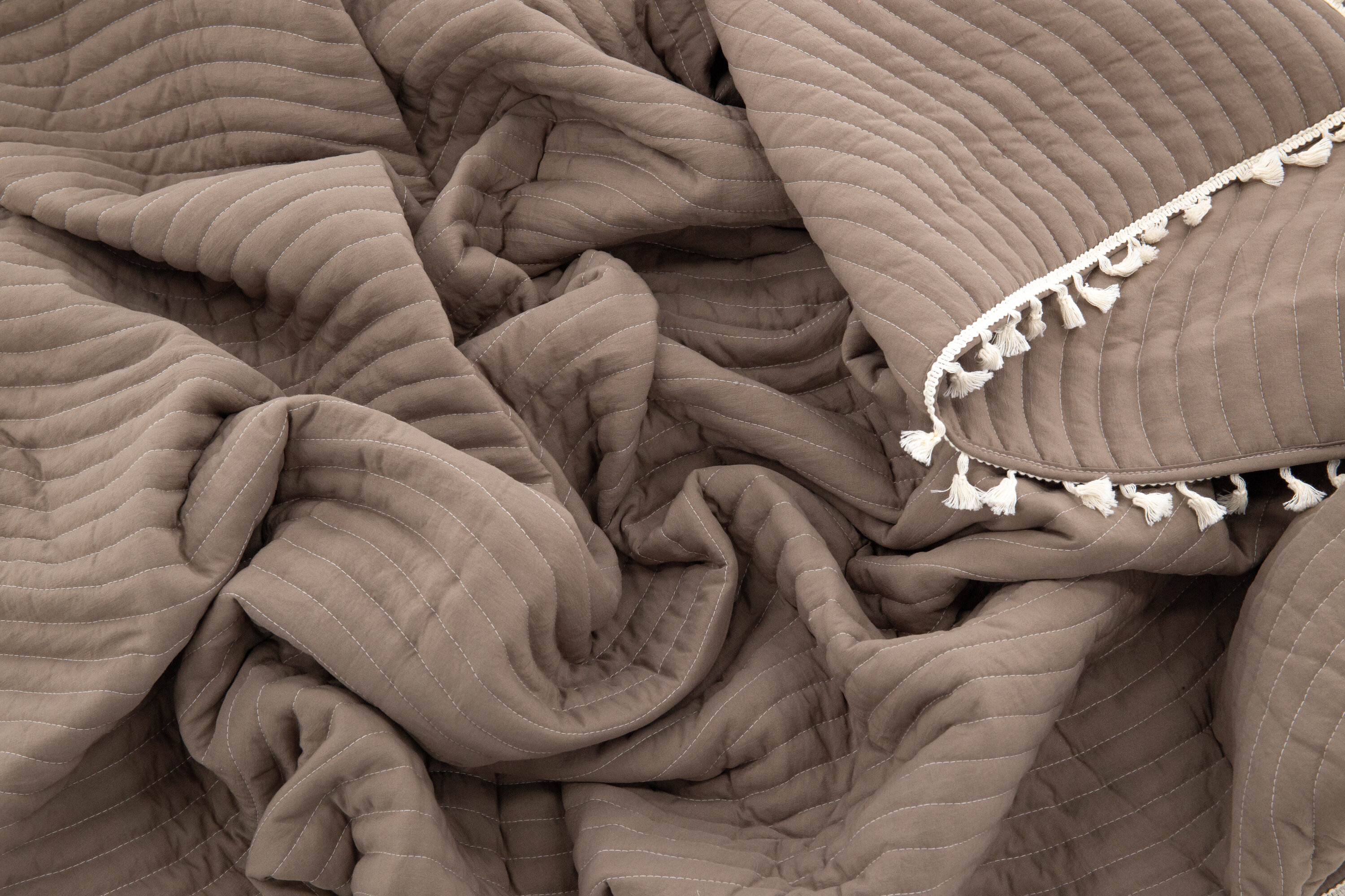 Le couvre-lit Lias en microfibre douce donne une sensation de chaleur dans la chambre et la couleur marron donne une impression confortable et confortable. Lias est un couvre-lit matelassé et a un bord brodé décoratif avec des cils qui donne un bel effet à votre lit. Nous vous recommandons d'utiliser l'élimination des taches en cas de taches et d'altérer fréquemment le textile pour préserver la couleur et la forme. Le couvre-lit mesure 260 x 260 cm et nous recommandons de laver en machine à 40 degrés.