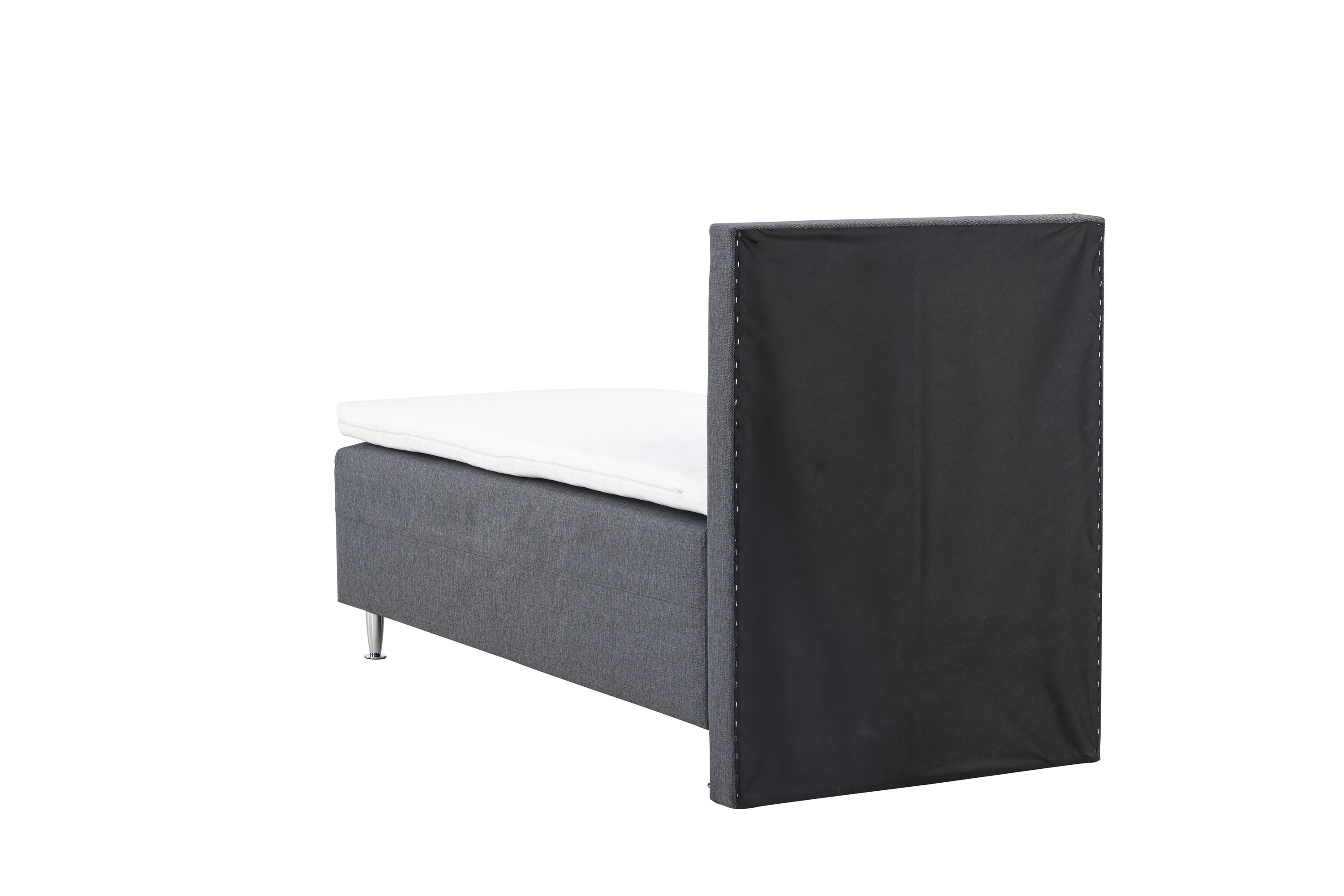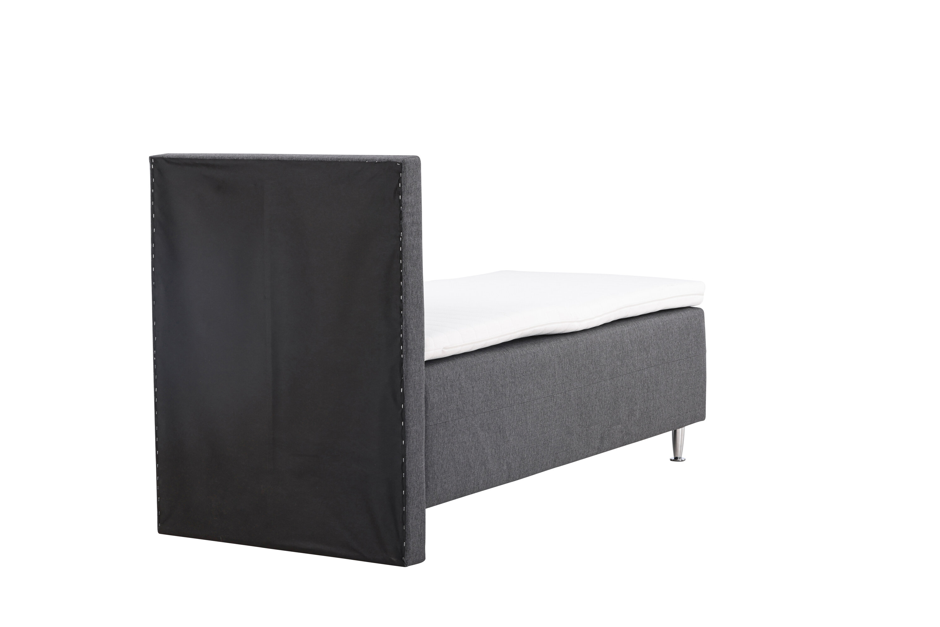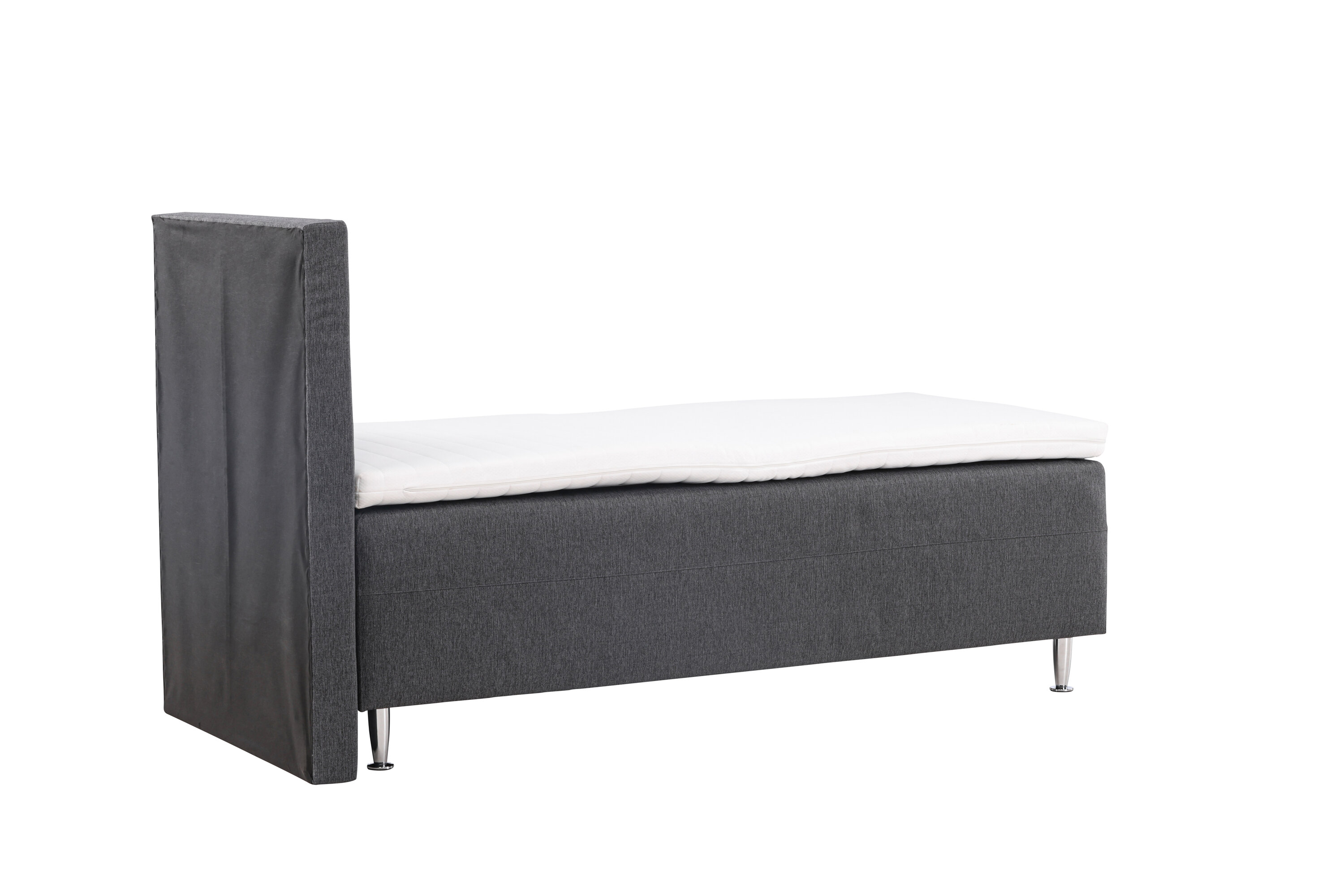 Mesa est un lit à cadre de 90 cm de large habillé d'un élégant tissu gris foncé. La couleur sombre et profonde ajoute une touche moderne à votre décor et crée un sentiment de luxe et de sophistication. Le tissu est agréable au toucher et crée une atmosphère chaleureuse et accueillante dans votre chambre.