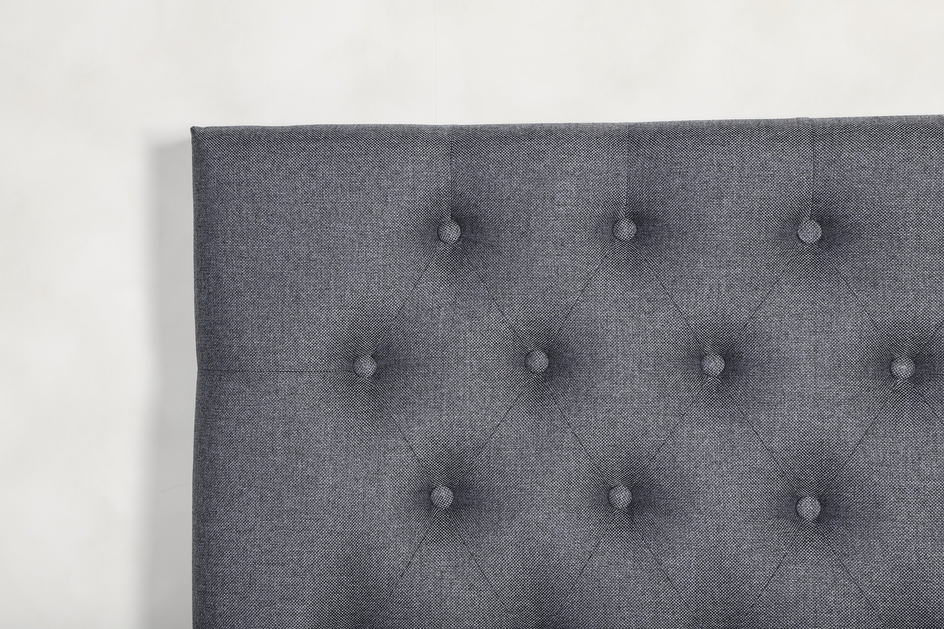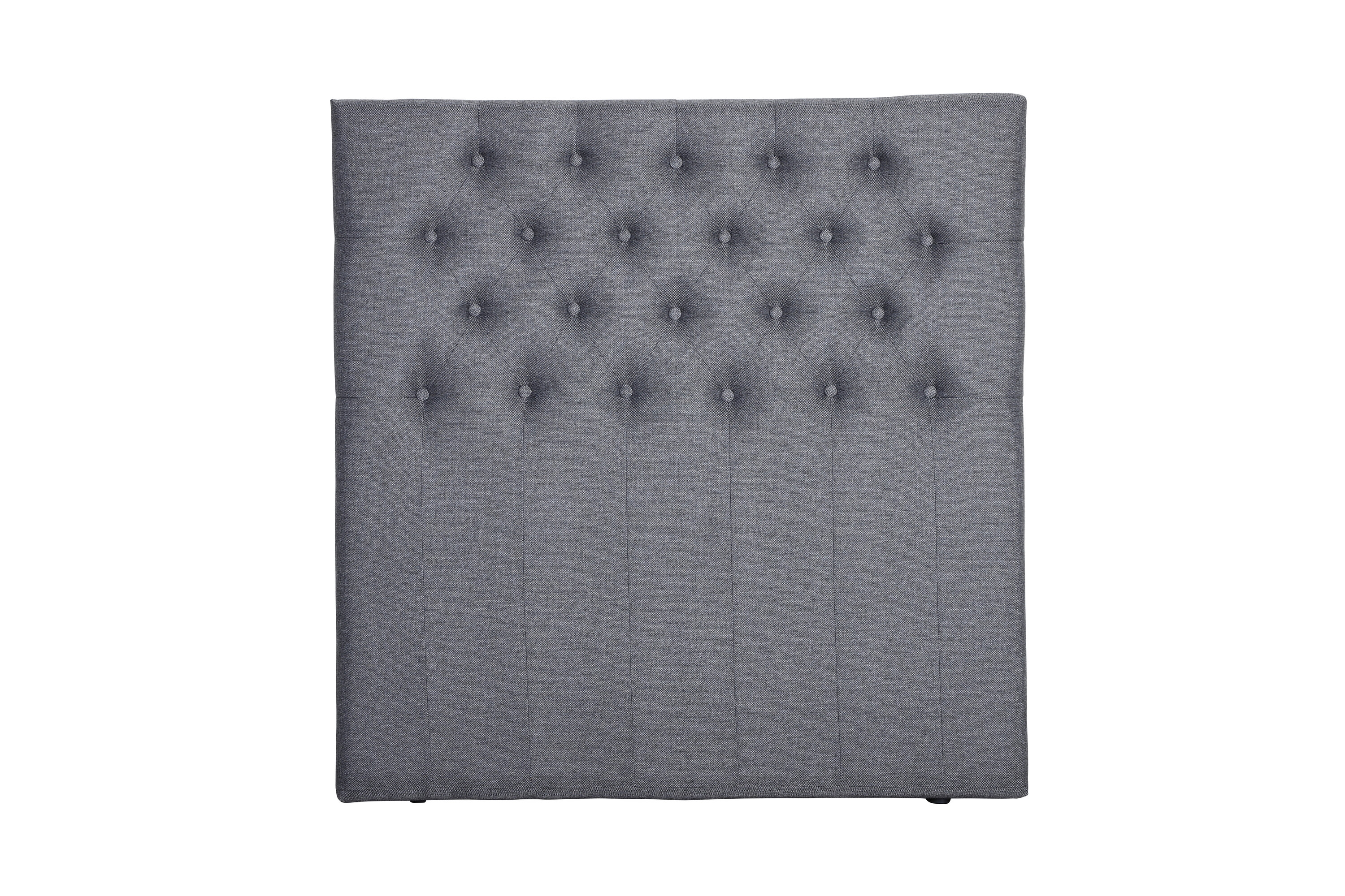 Furuvik, tête de lit de luxe en tissu polyester gris foncé entièrement vêtu avec des coutures décoratives et des boutons gris foncé habillés à adhérence profonde. Avec cette tête de lit, il est facile de créer une sensation de luxe pour votre chambre à coucher. Dimensions : Largeur : 120 cm, hauteur : 125 cm, profondeur : 10 cm. Matériau : Cadre en bois et mousse à froid, recouvert de tissu polyester. Astuce/conseil : Placez le pignon entre le mur et le lit, aucun ancrage n'est nécessaire. Profitez d'un bon sommeil - dans votre chambre pompeuse !
