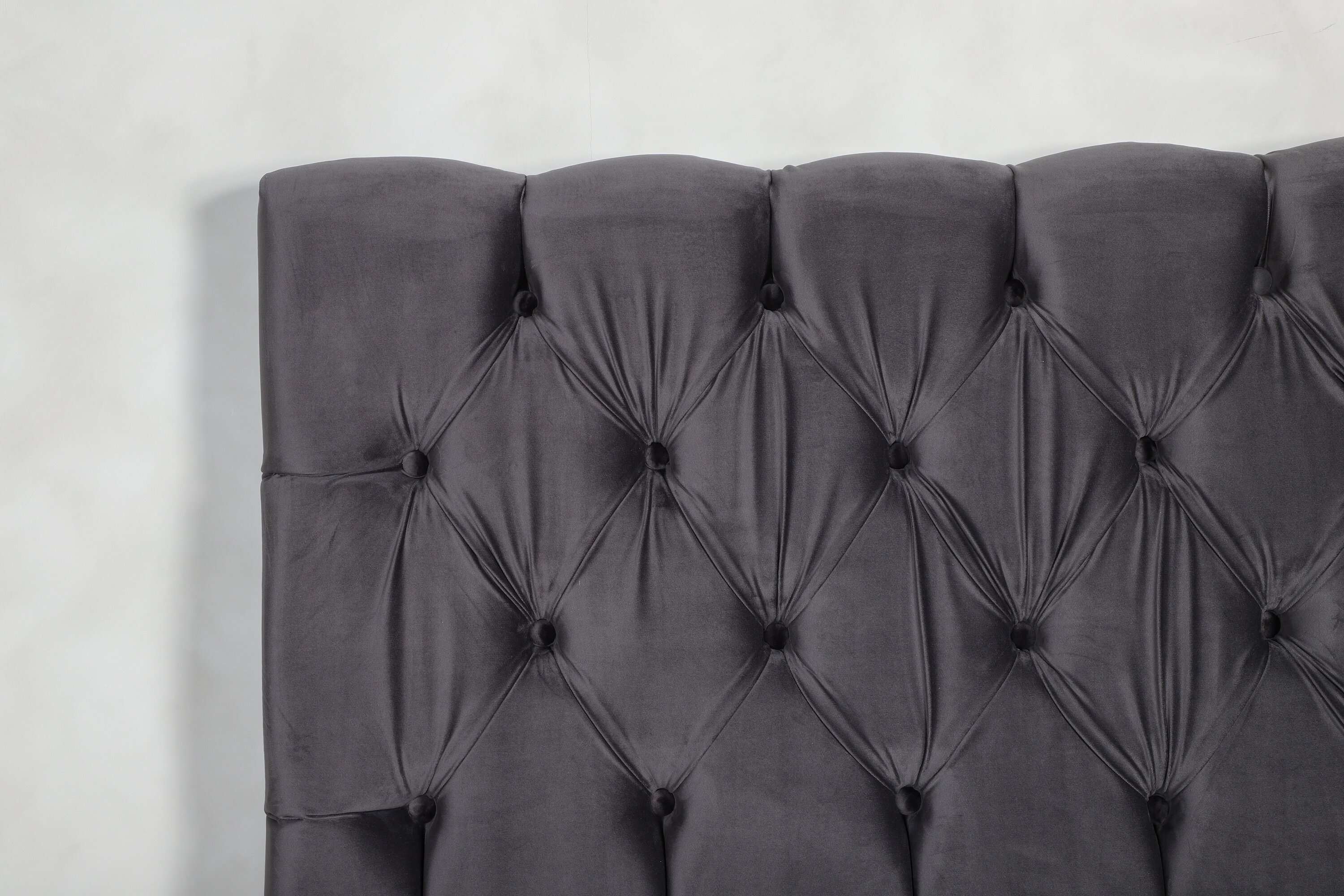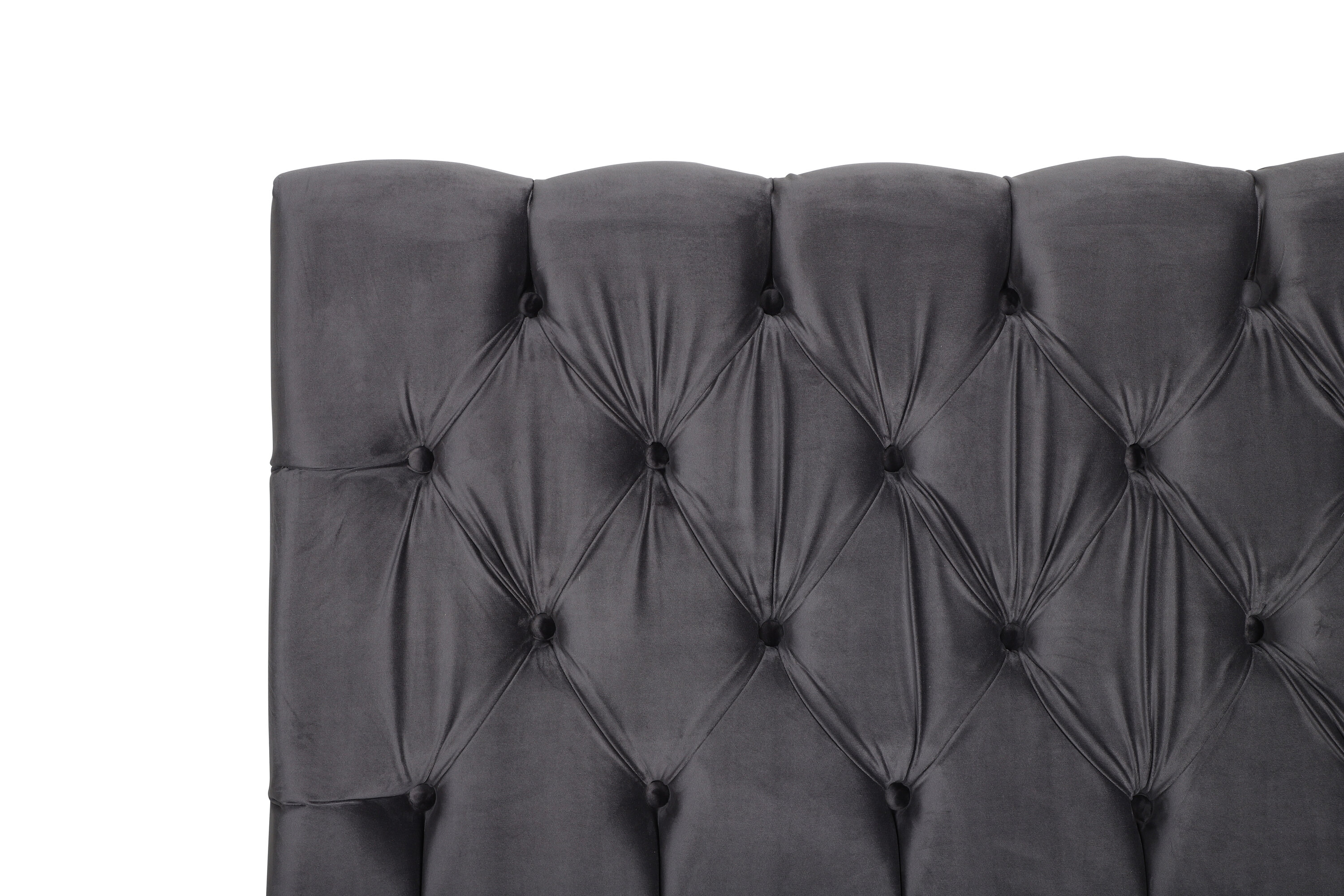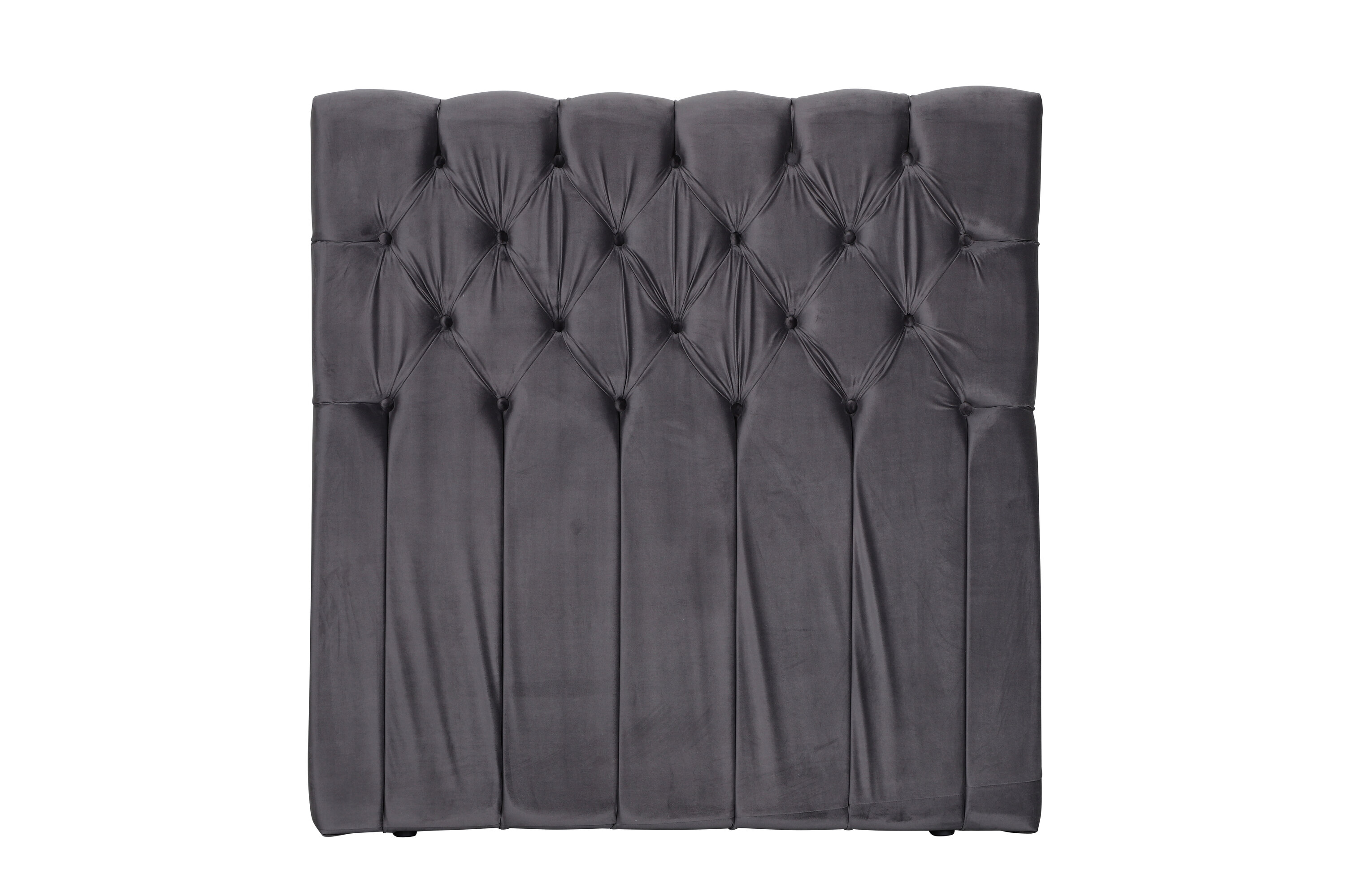 Särna, notre tête de lit autonome exclusive en velours gris avec des coutures décoratives et des boutons gris habillés en adhésif profond. Le bord supérieur du pignon donne à l'ensemble du lit une sensation luxueuse et élégante. Laissez la chambre devenir ce dont vous avez toujours rêvé ! Dimensions : Largeur : 120 cm, hauteur : 125 cm, profondeur : 10 cm. Matériau : Cadre en bois et mousse à froid, recouvert de tissu polyester. Astuce/conseil : Placez le pignon entre le mur et le lit, aucun ancrage n'est nécessaire. Profitez d'un bon sommeil - dans votre chambre pompeuse !