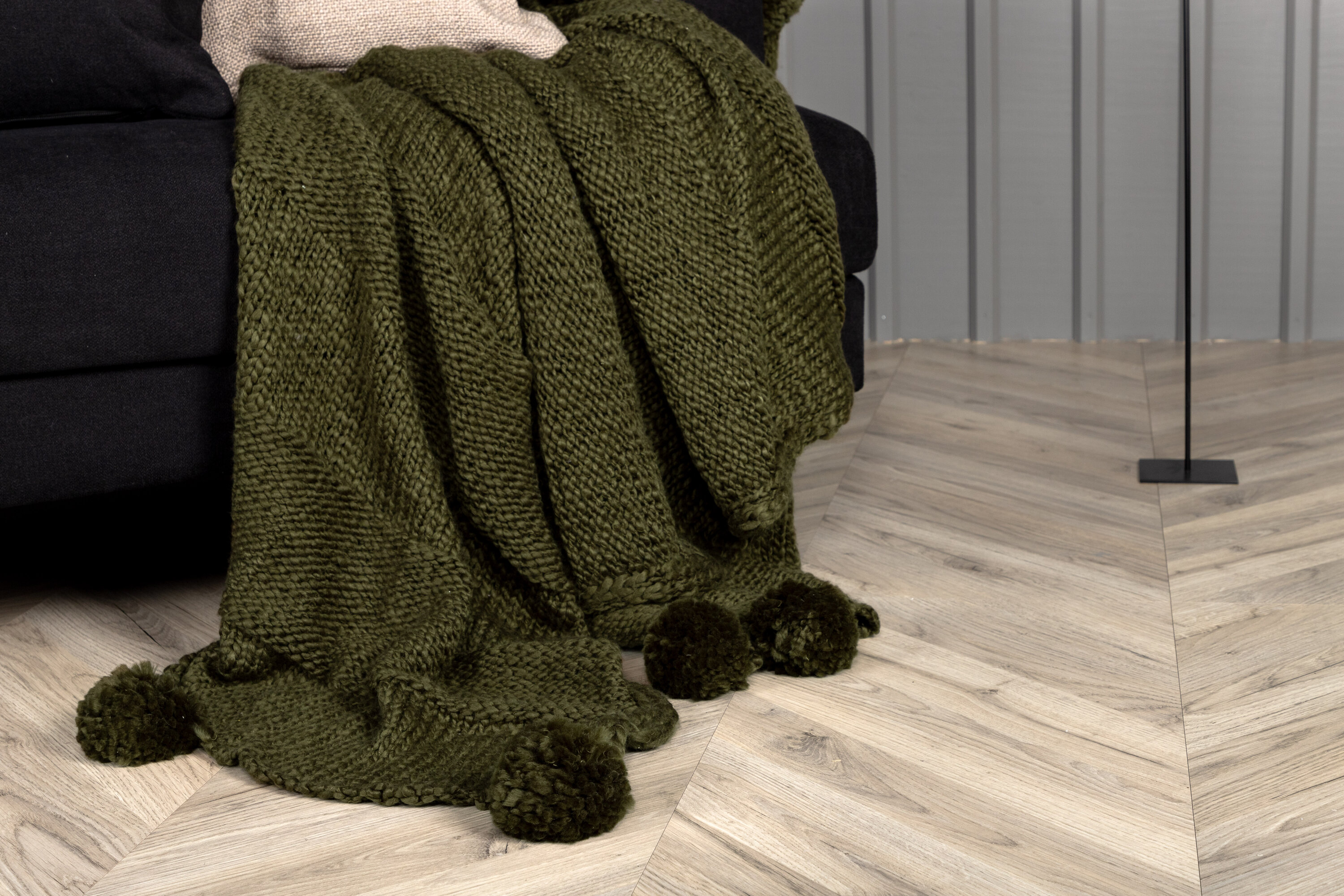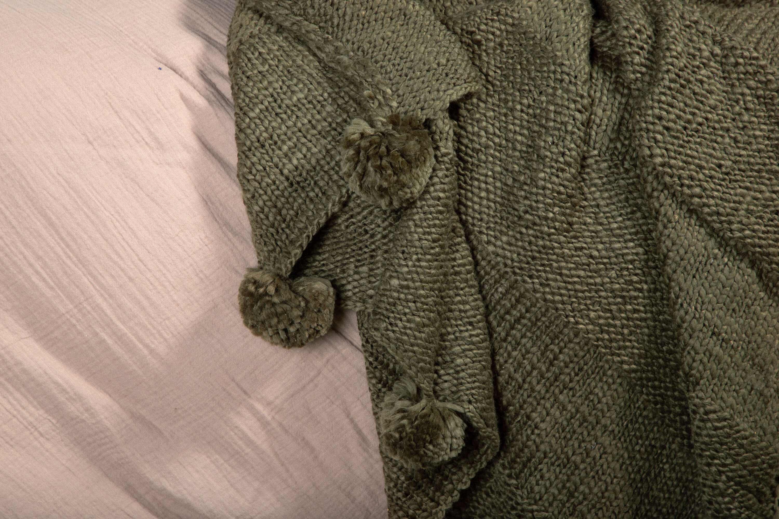 Anny est un joli plaid câlin en acrylique. Écusson vert uni avec pampilles aux extrémités taille 130x170. Conseils d'entretien : Lavage en machine à 30 degrés, pendant au sec.