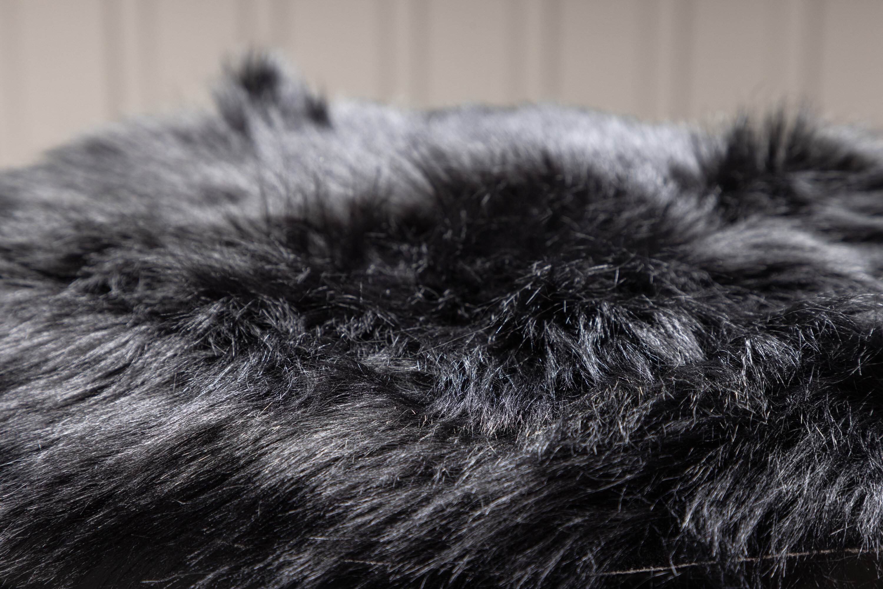 Donnez à votre chaise une touche d'élégance et de style avec le coussin de chaise Katy en fausse fourrure noire !
