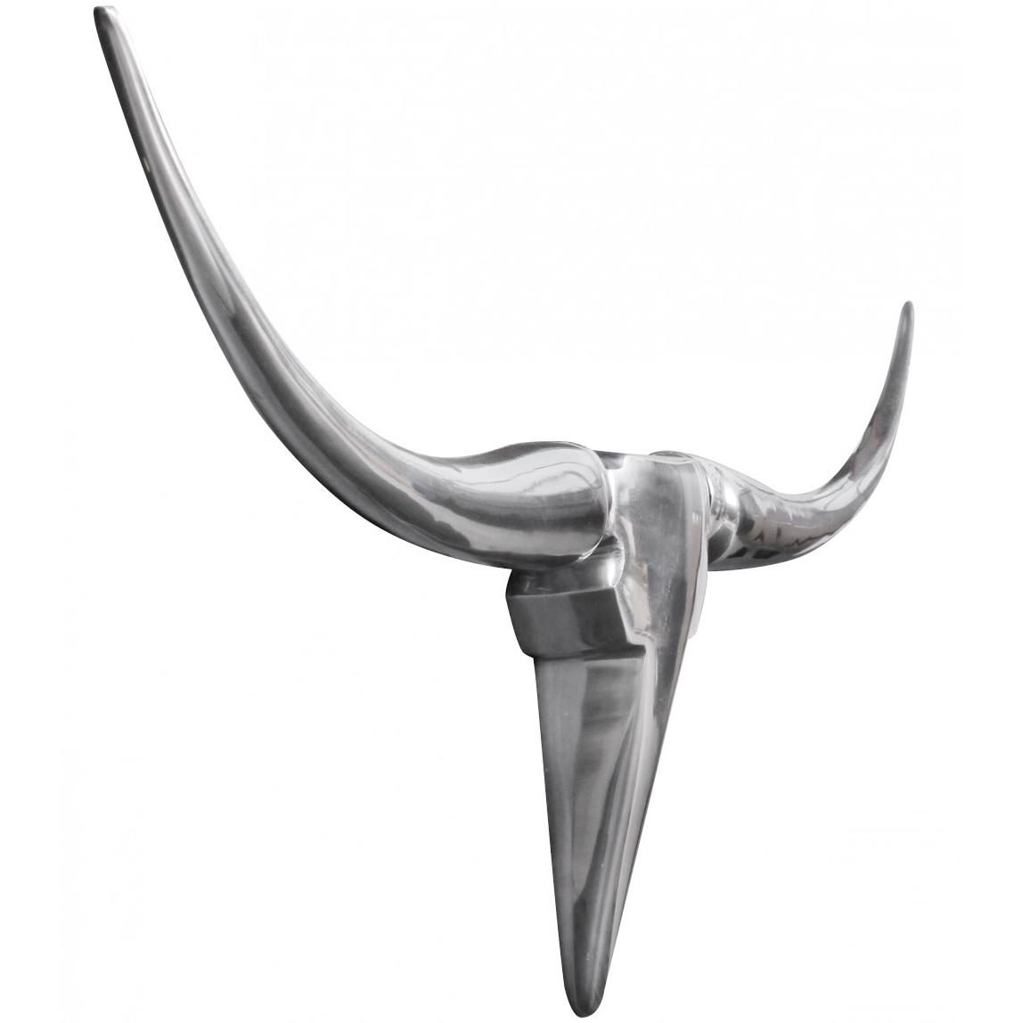 Deko Geweih Bull M Aluminium Argenté | 100x40x6 cm | Décoration Murale Moderne