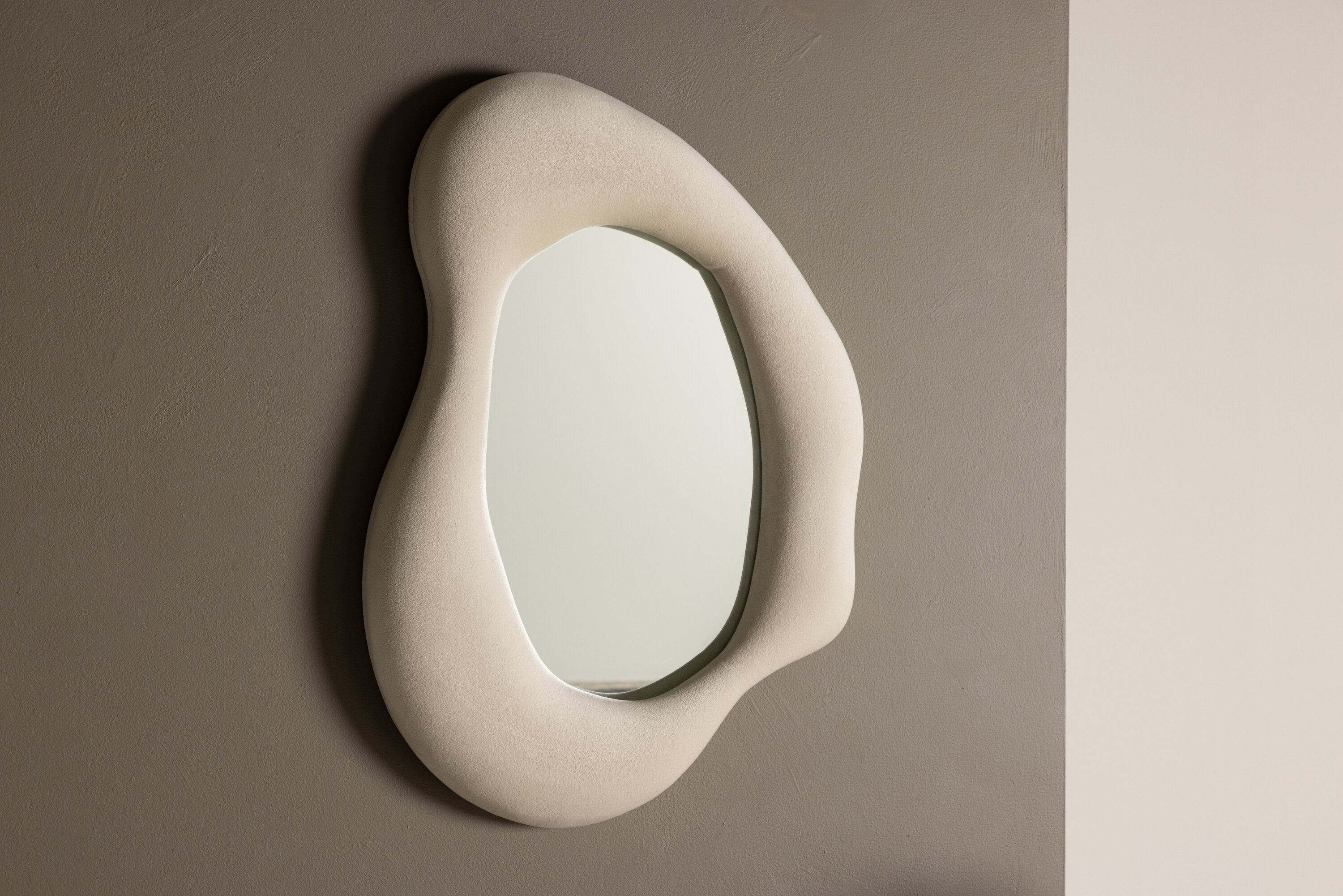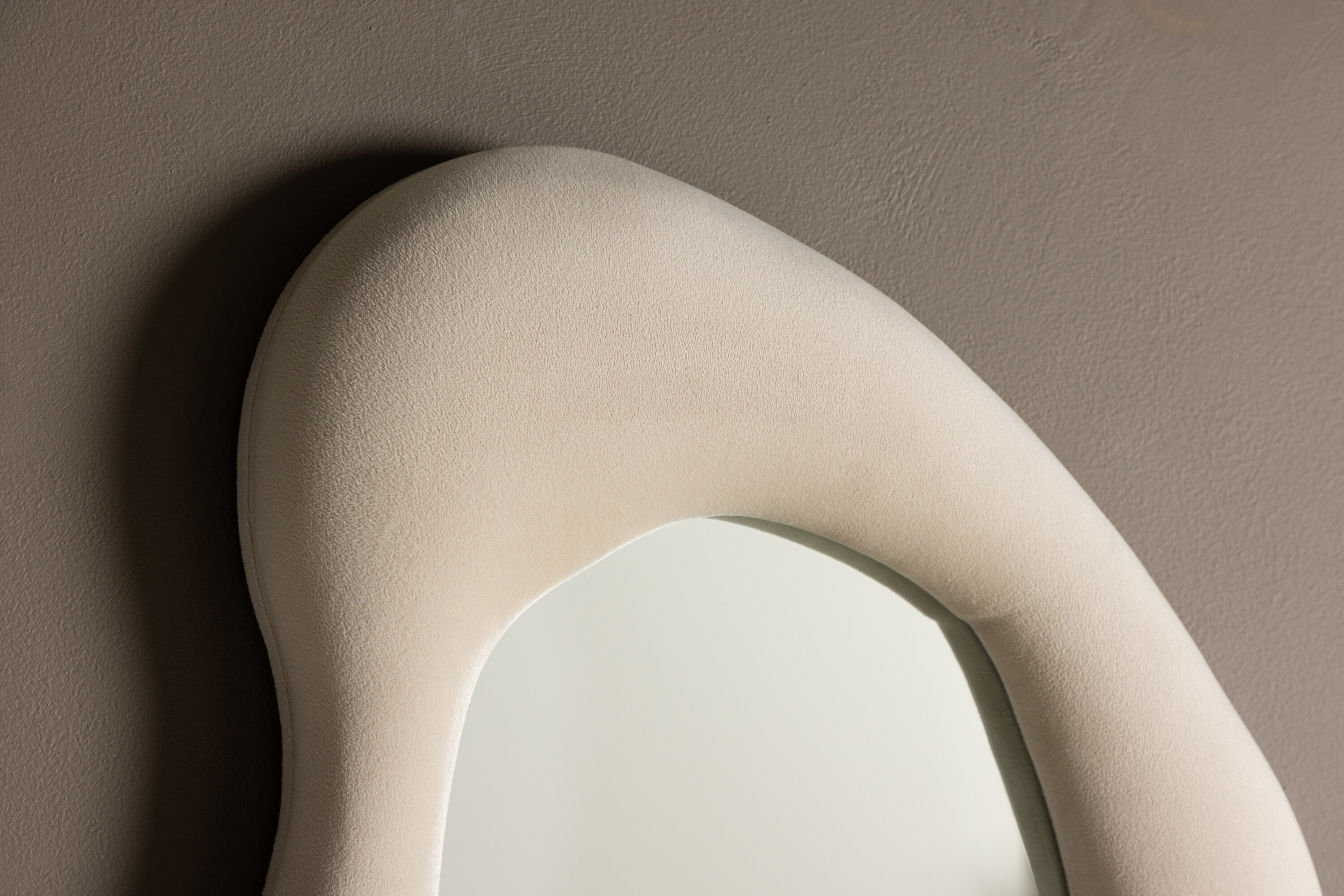 Louisville a une forme différente qui lui donne un caractère ludique et en fait un détail accrocheur dans votre maison. Le cadre doux est en velours de polyester, donnant au miroir une sensation douce et agréable. La surface du miroir est en verre, vous offrant un reflet clair et distinct.
