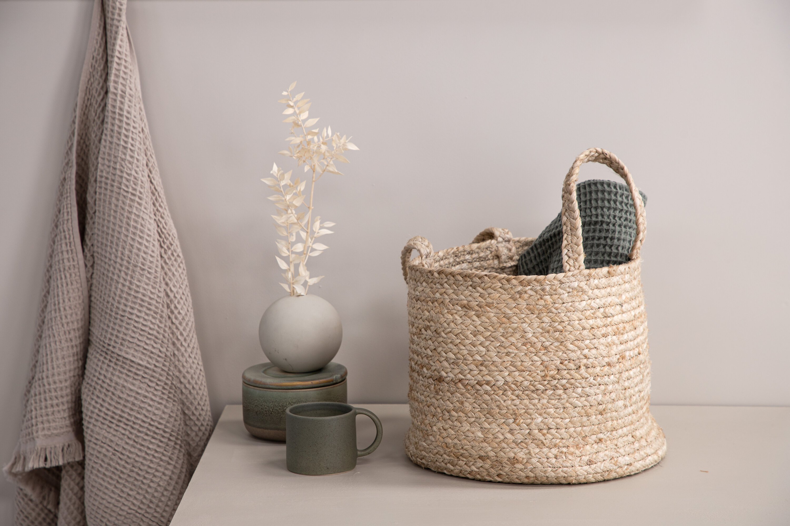 Ce panier intelligent grimpe les listes de tendances et est idéal à la fois pour le stockage et comme pot ! Le panier appartient à la série Bhopal et est en jute tressé durable. Le panier a deux anses dans la même matière et le look bohème est aussi intemporel que la mère. Placez dans la salle de bain des serviettes ou dans le salon qui fuit les détails intérieurs - seule l'imagination fixe des limites ! Diamètre : 35cm, hauteur : 28cm.