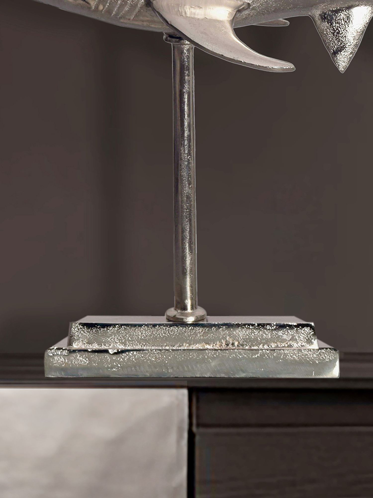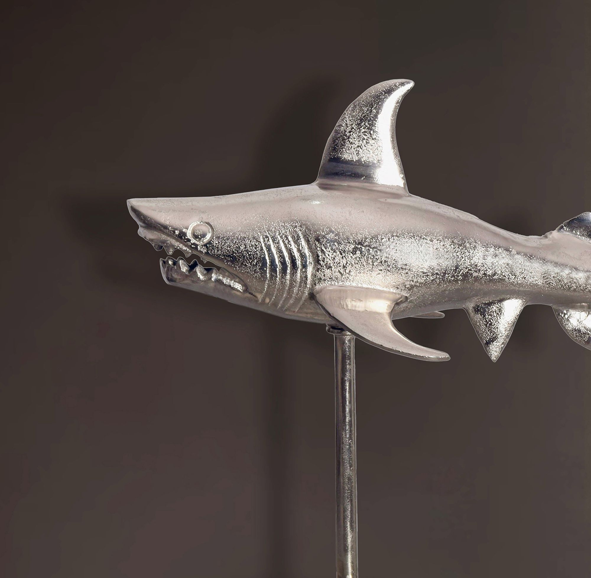 Informations sur le produit "Figurine décoration requin aluminium argenté | 70 cm | Design moderne"
