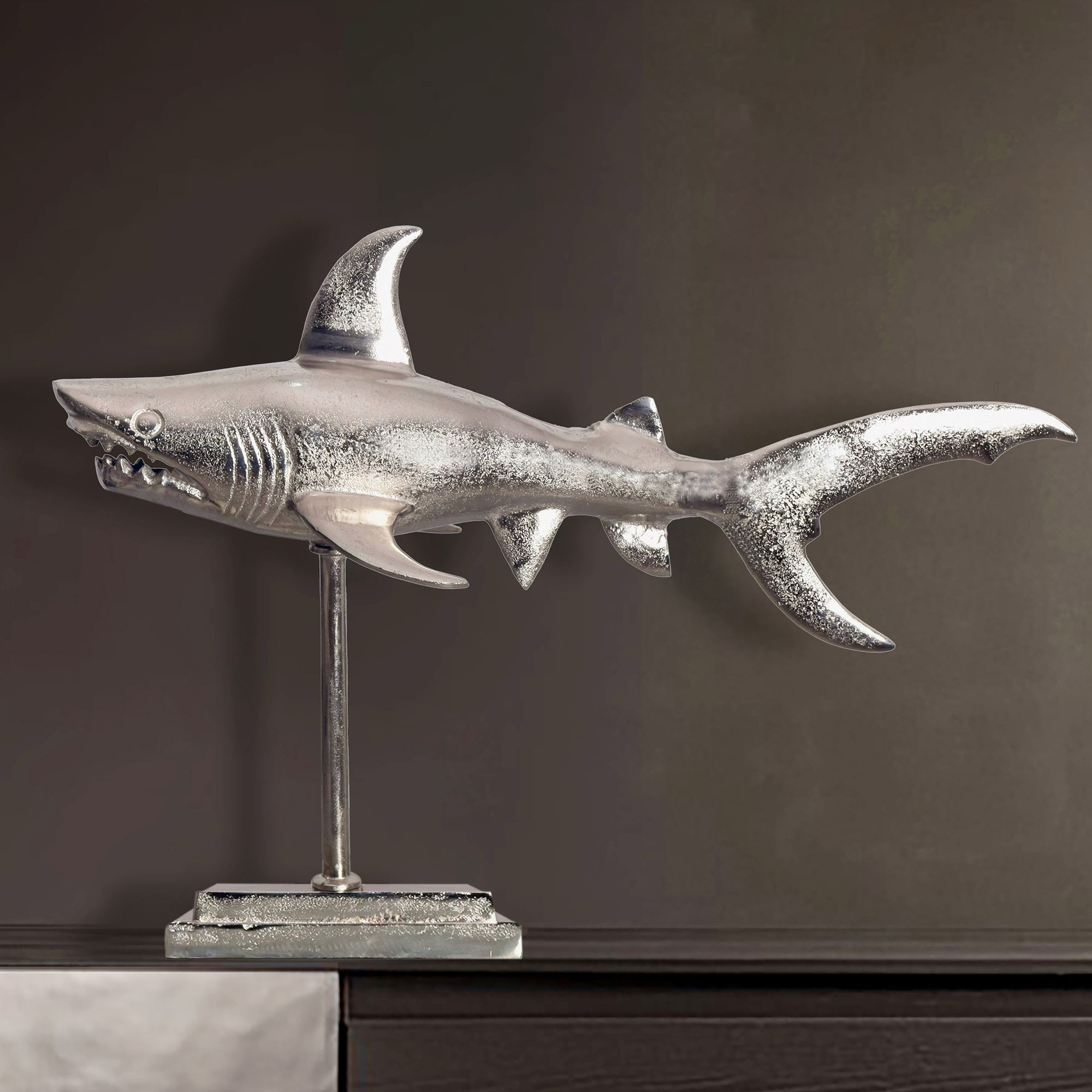 Figurine décoration requin aluminium argenté | 70 cm | Design moderne