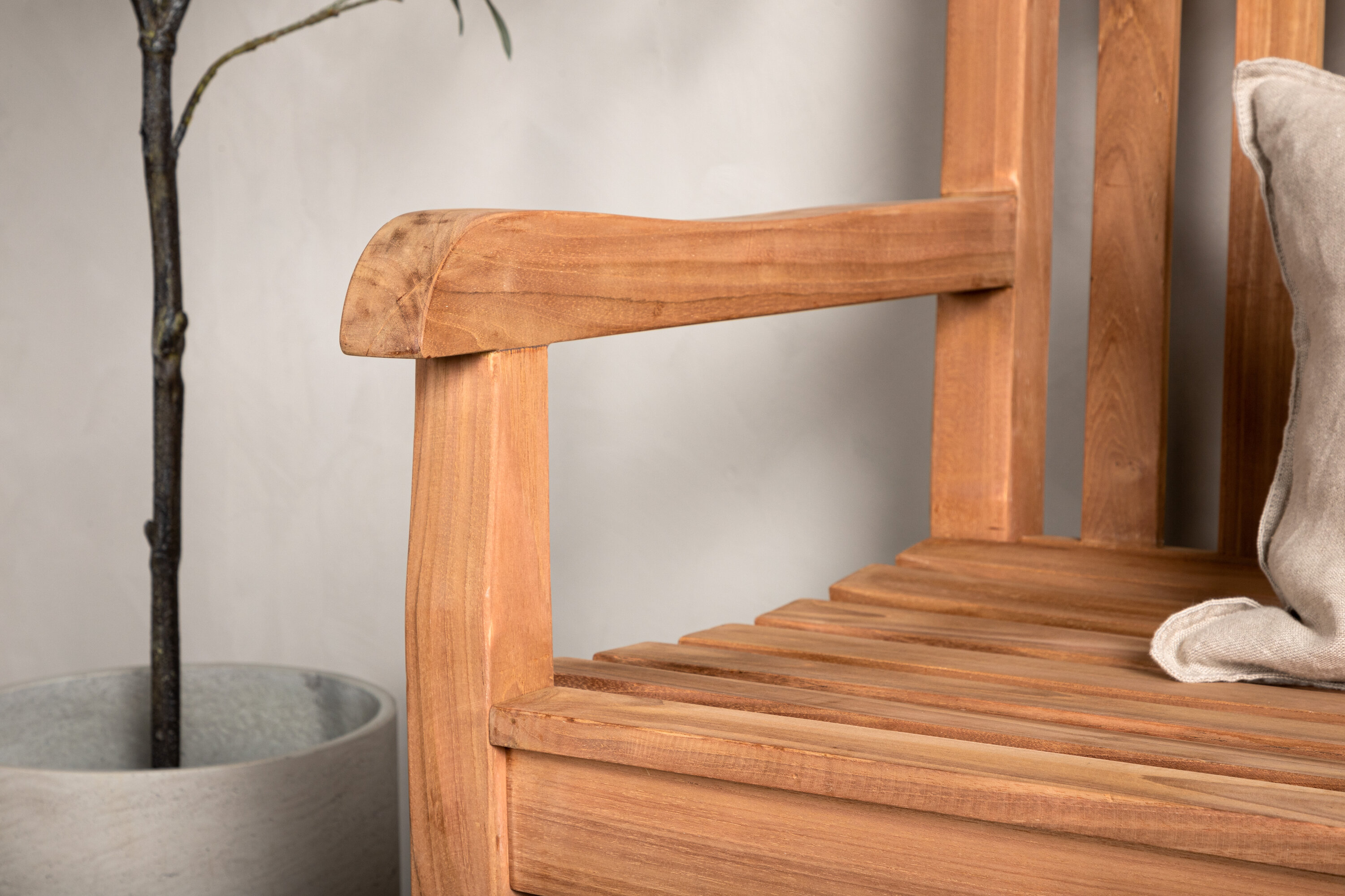 Nos meubles en teck sont produits par du teck certifié qui est cultivé à cette fin et qui n'est pas dévasté par la délicate forêt tropicale. Comme l'un des bois les plus durables, le teck contient beaucoup d'huile qui est habituellement nécessaire pour que le matériau ne se fissure pas. Parce que le type de bois en contient naturellement beaucoup, les meubles n'ont pas besoin d'être imprégnés aussi souvent.