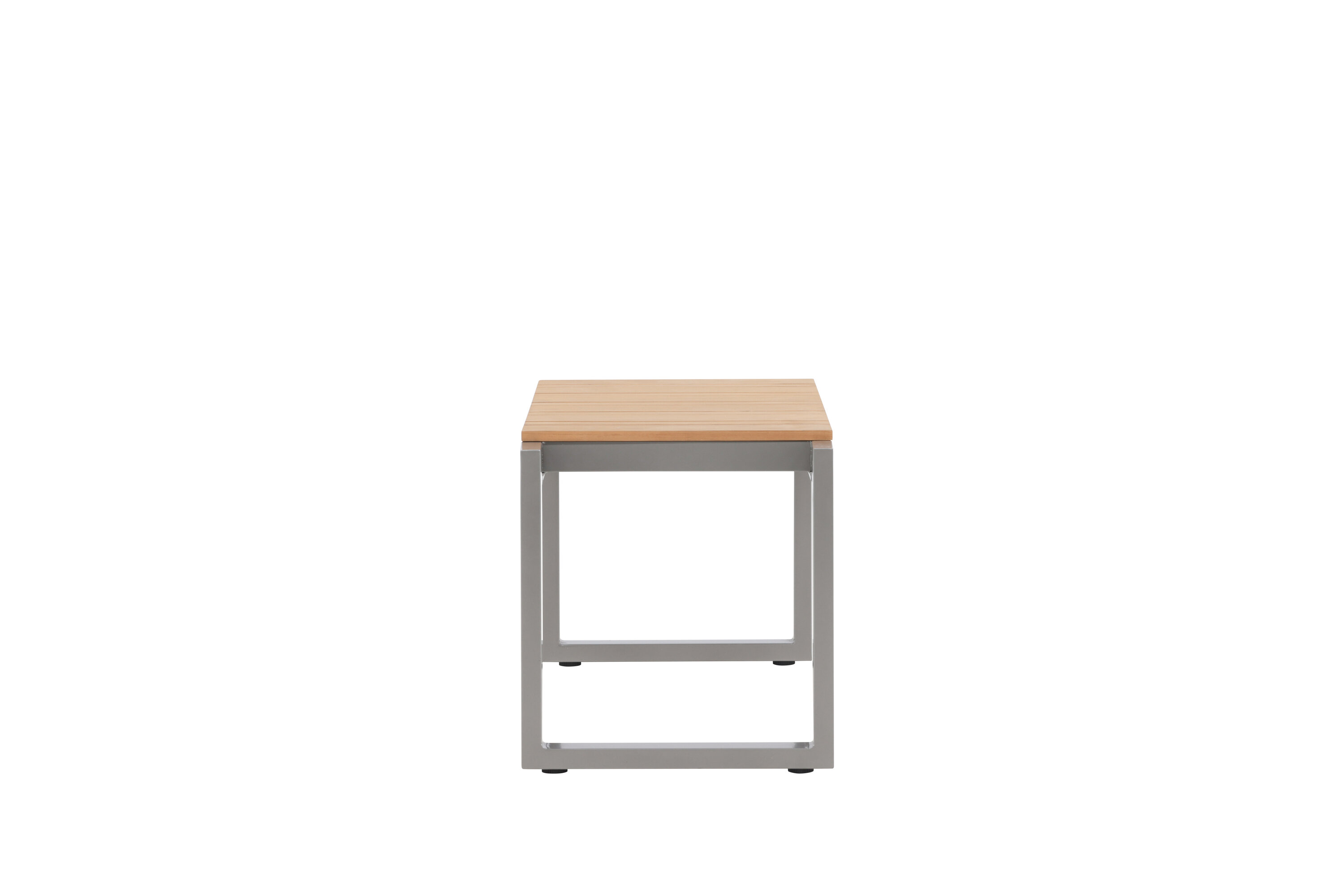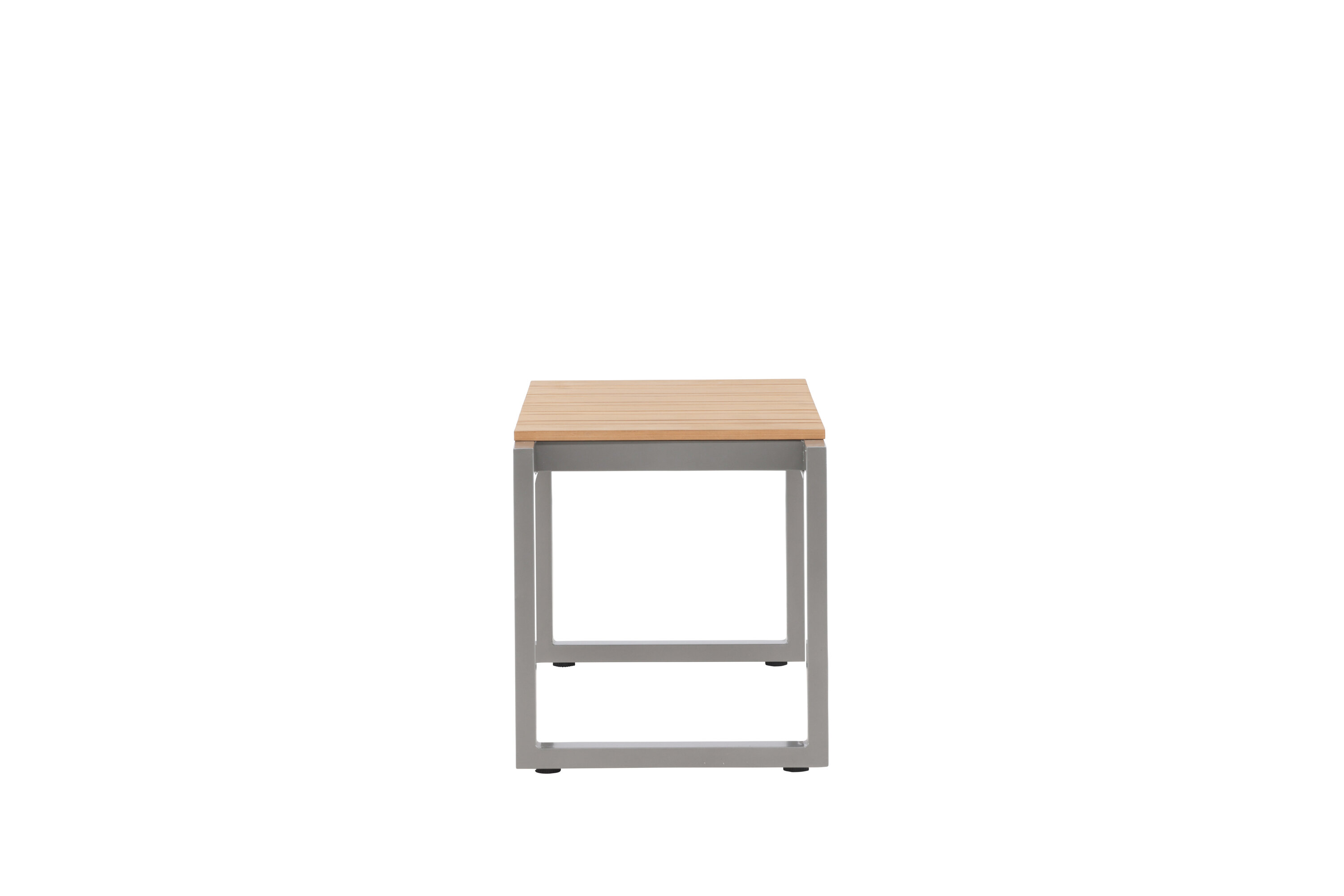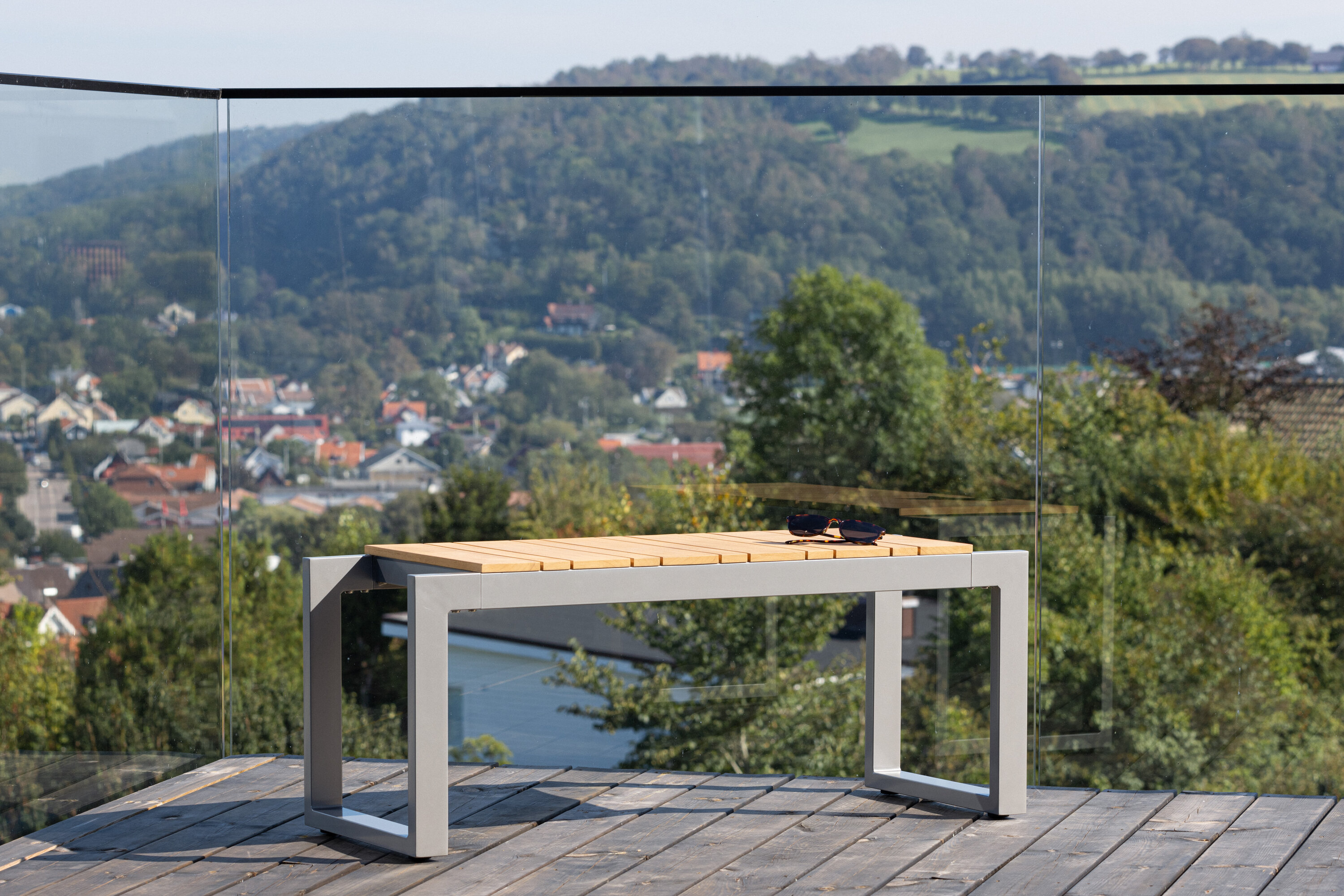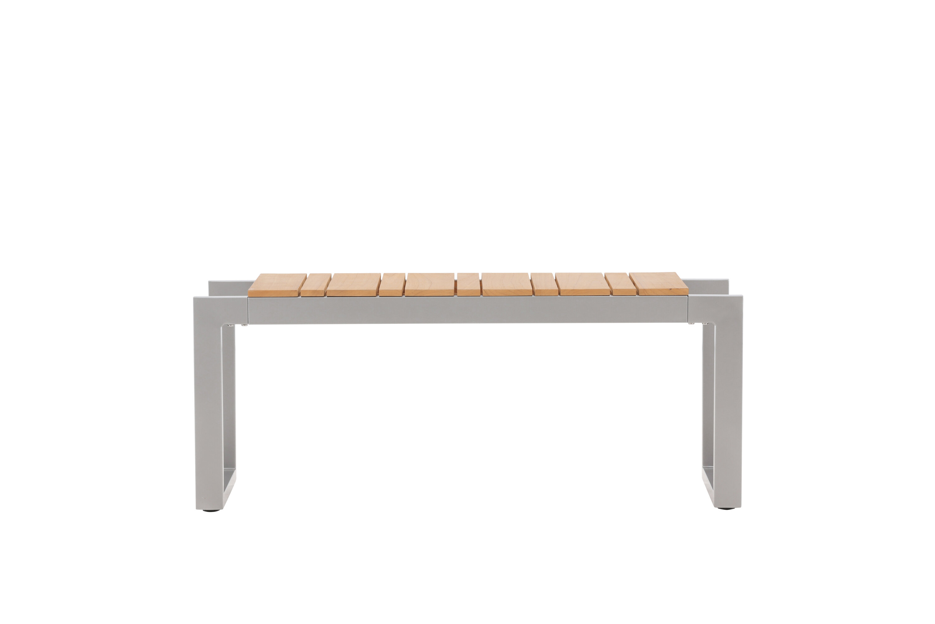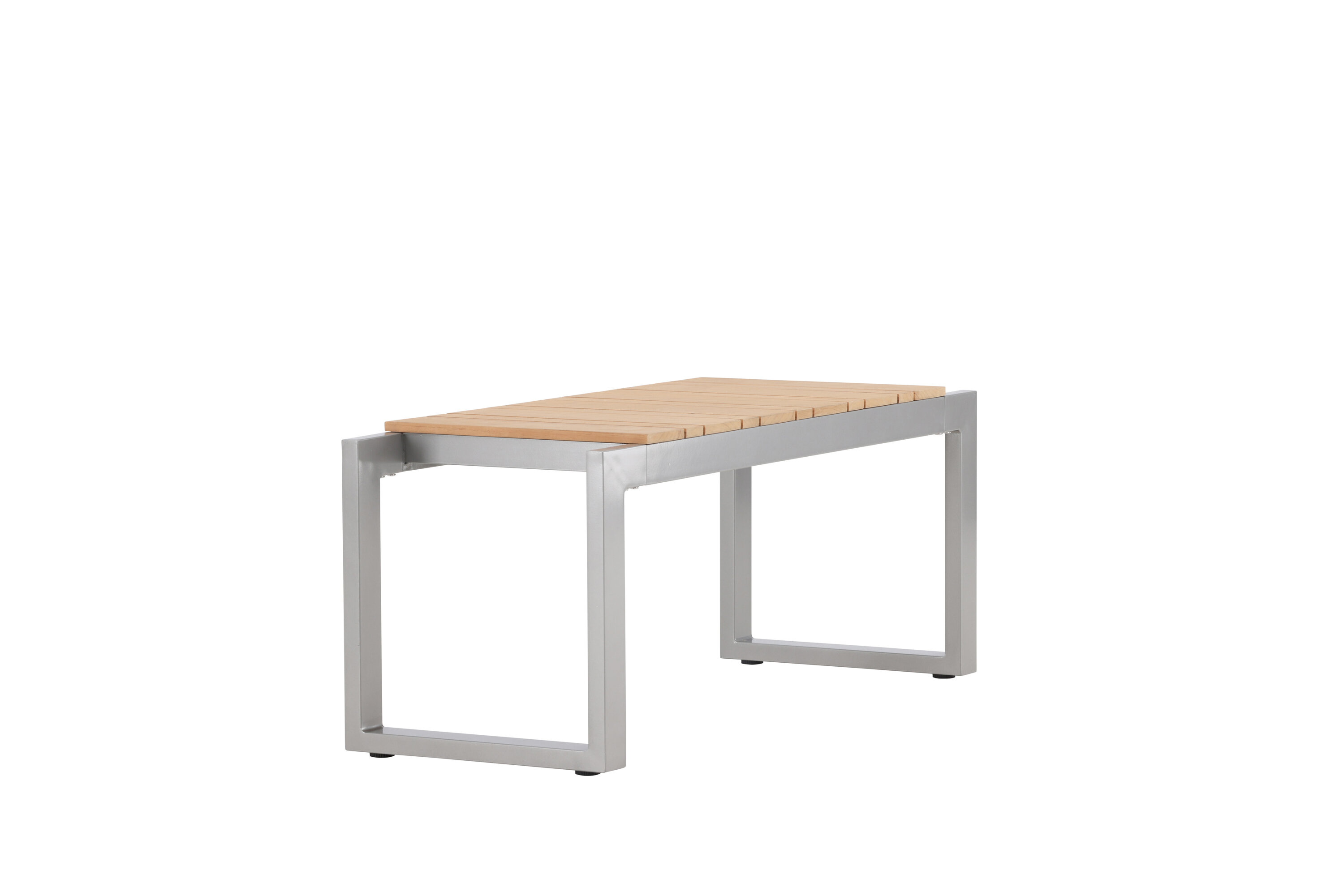 La surface d'assise est faite de bois de teck durable dans sa couleur naturelle. Le teck est connu pour sa belle résistance aux grains et aux intempéries, ce qui rend le banc Zenia aussi beau que pratique. La beauté naturelle du teck se marie harmonieusement avec le cadre en aluminium moderne, ce qui donne un banc qui s'adapte à divers styles d'intérieur.