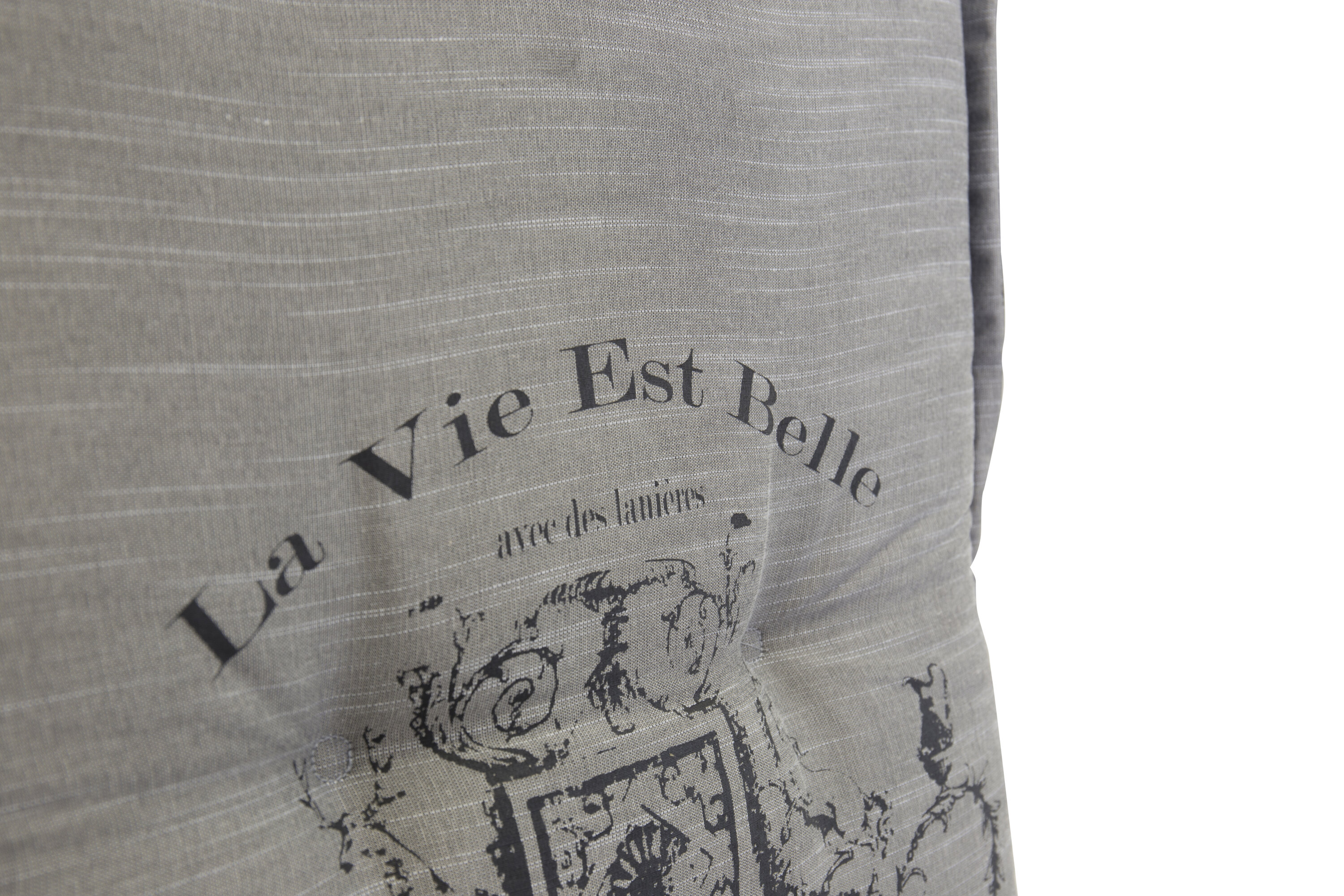 Super coussin de chaise gris clair avec imprimé noir. Fonctionne très bien dans nos chaises de position. À l'arrière, il y a des sangles pour maintenir le coussin en place.