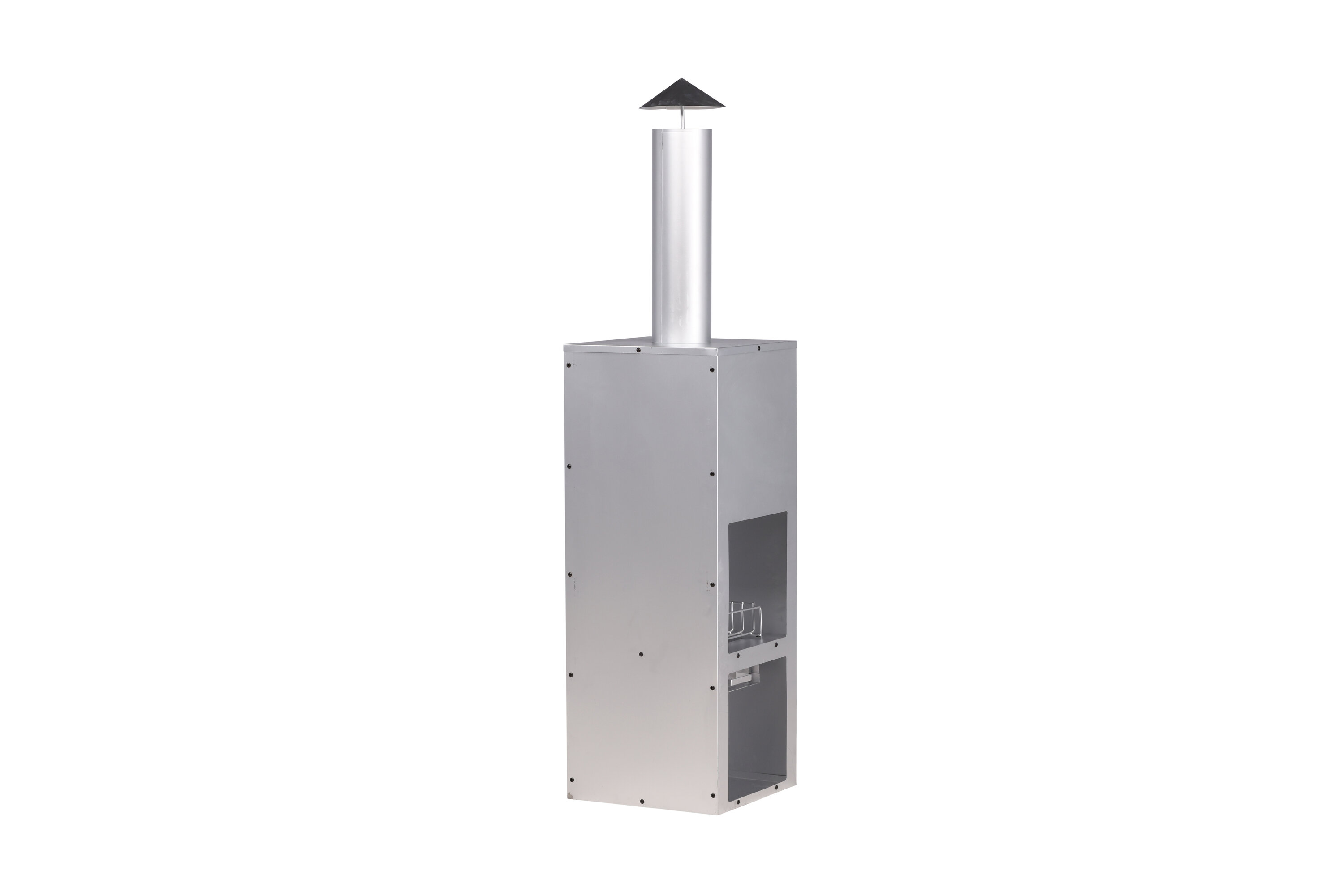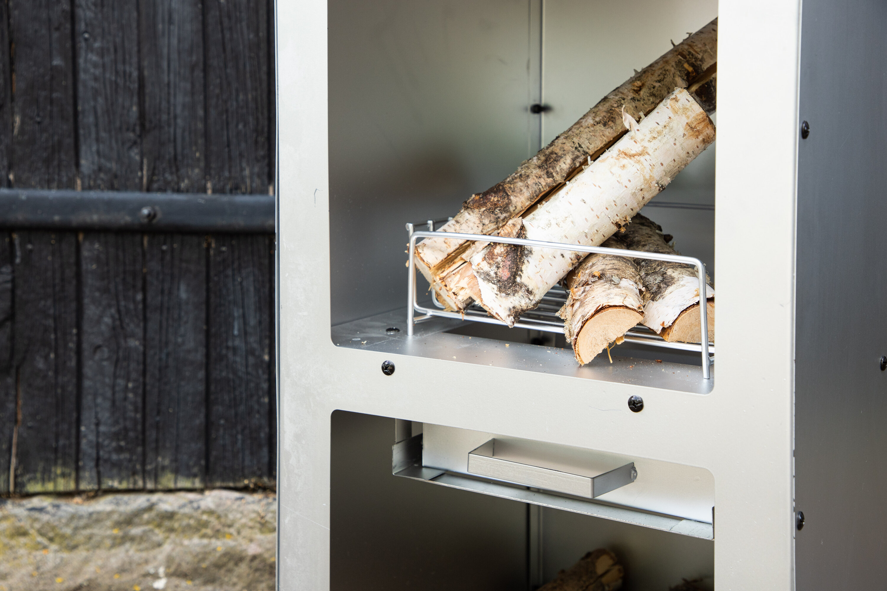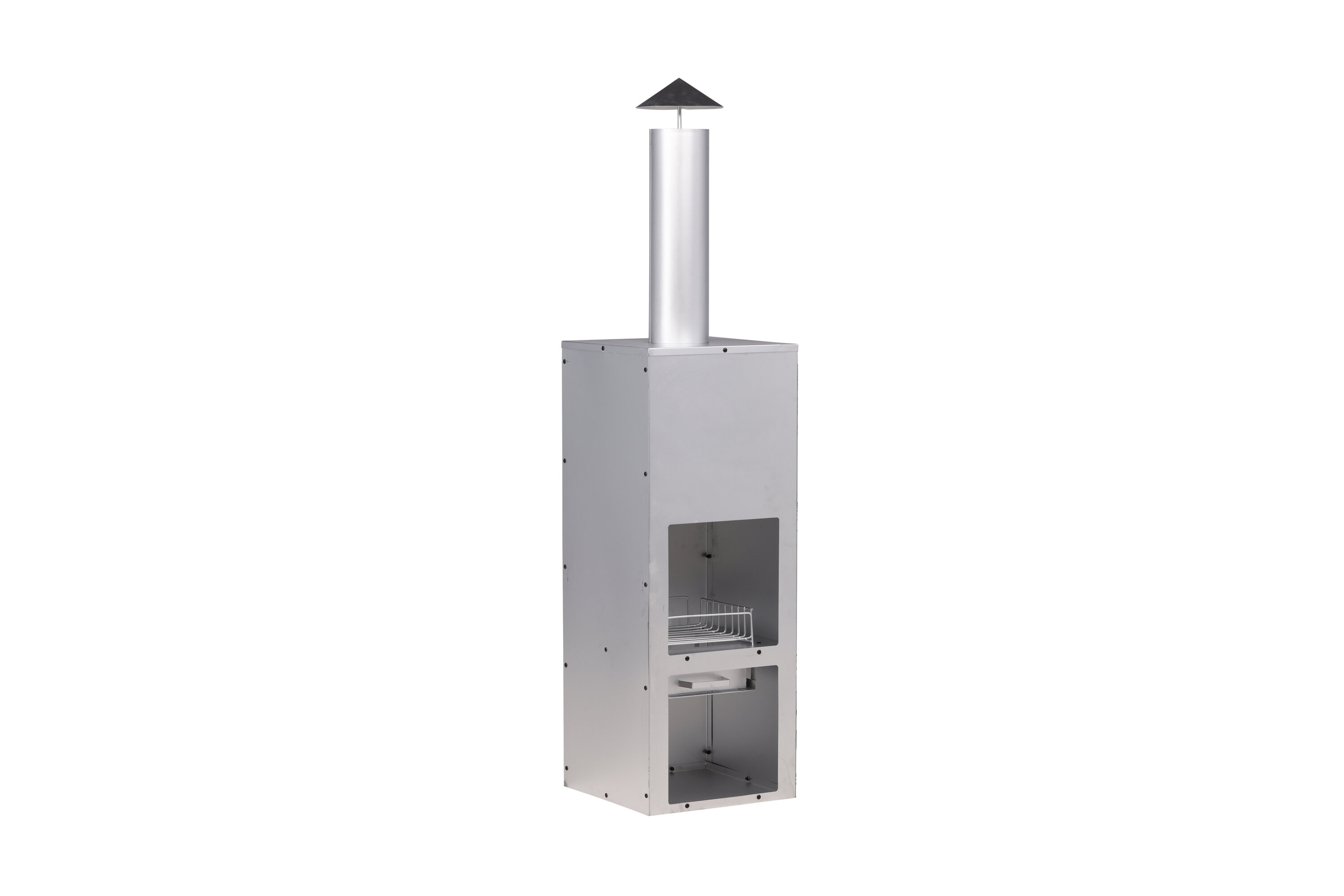 Makarima - notre cheminée de luxe qui crée rapidement une atmosphère chaleureuse sur le patio ! Le design est élégant avec des formes nordiques droites et dispose d'une cheminée cylindrique. La cheminée est en acier argenté avec une grande ouverture qui a également une grille intelligente en dessous. En bas, il y a aussi de l'espace pour stocker le bois de chauffage. Makarima devient à la fois un ami chaleureux et un détail élégant pour le patio. Ici, vous pouvez faire un petit feu confortable pour vous réchauffer, vous et les invités, devant au début et à la fin des soirées d'été !