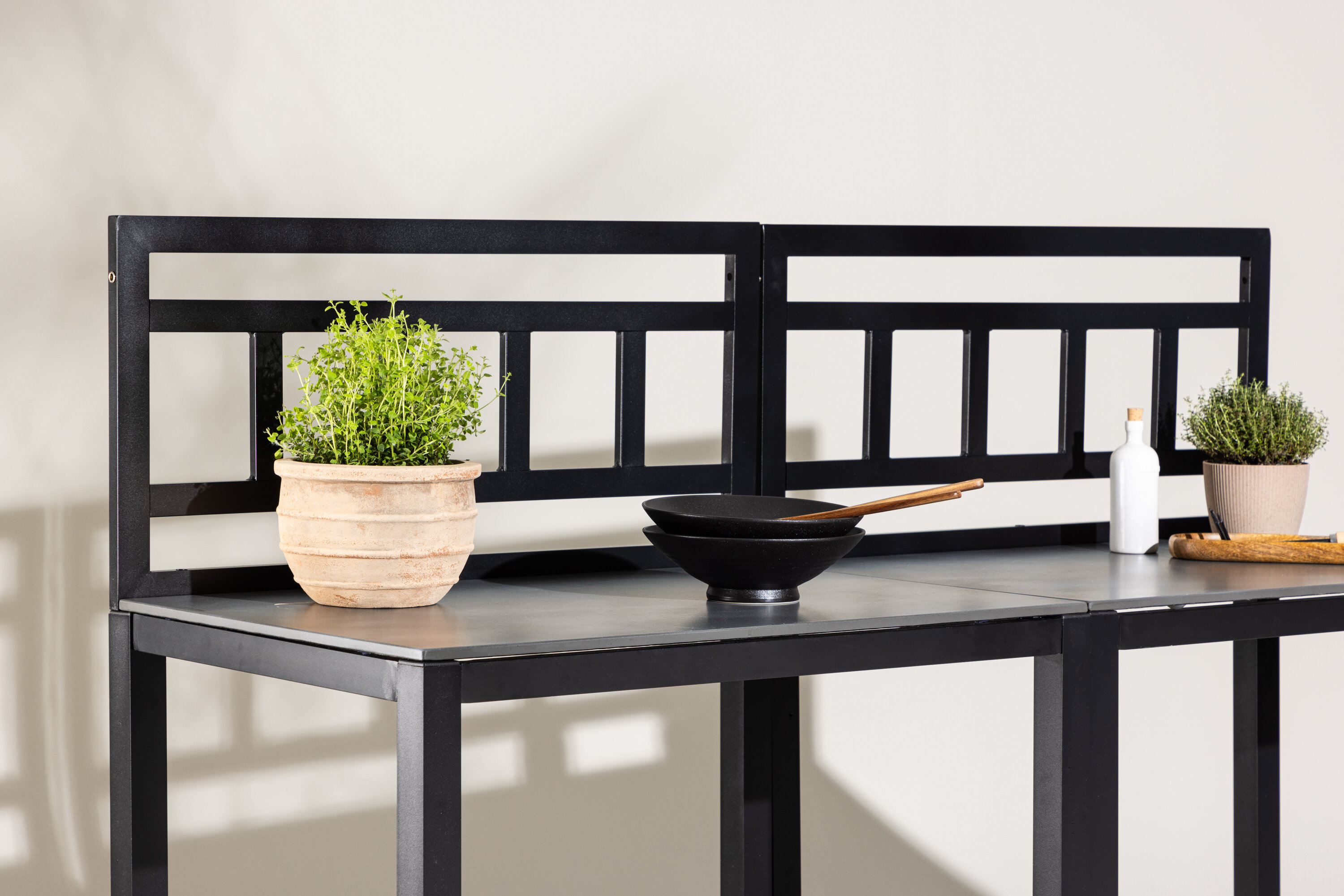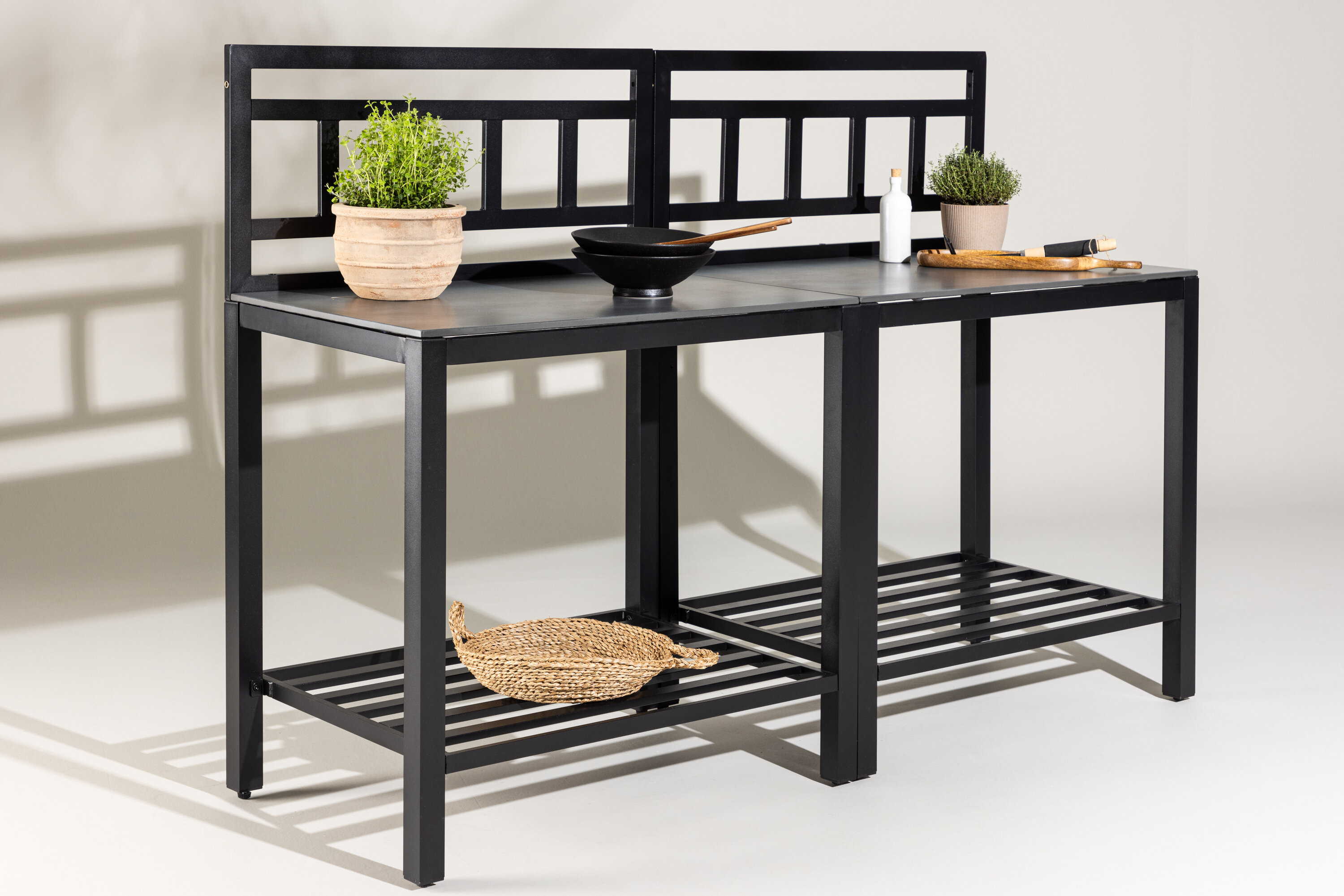 Découvrez Alicante, l'élégant comptoir de cuisine en plein air qui allie élégance et fonctionnalité de la meilleure façon. Avec un cadre noir robuste et une surface grise élégante, Alicante est à la fois élégante et facile à nettoyer, parfaite pour la cuisine et les réunions sociales en plein air. Vous pouvez utiliser Alicante comme unité autonome, idéale pour les petits espaces et les besoins plus simples, ou l'agrandir en ajoutant plus de pièces de la série Alicante pour créer une grande cuisine extérieure spacieuse adaptée à vos besoins spécifiques. Le comptoir de cuisine est équipé d'une étagère pratique pour le rangement supplémentaire des ustensiles de cuisine, des accessoires de gril ou d'autres nécessités, ce qui rend la cuisson à la fois plus facile et plus organisée. Avec son design élégant et ses caractéristiques pratiques, Alicante devient un ajout indispensable à votre jardin ou patio, parfait pour tout, d'un simple dîner en plein air à un grand barbecue.