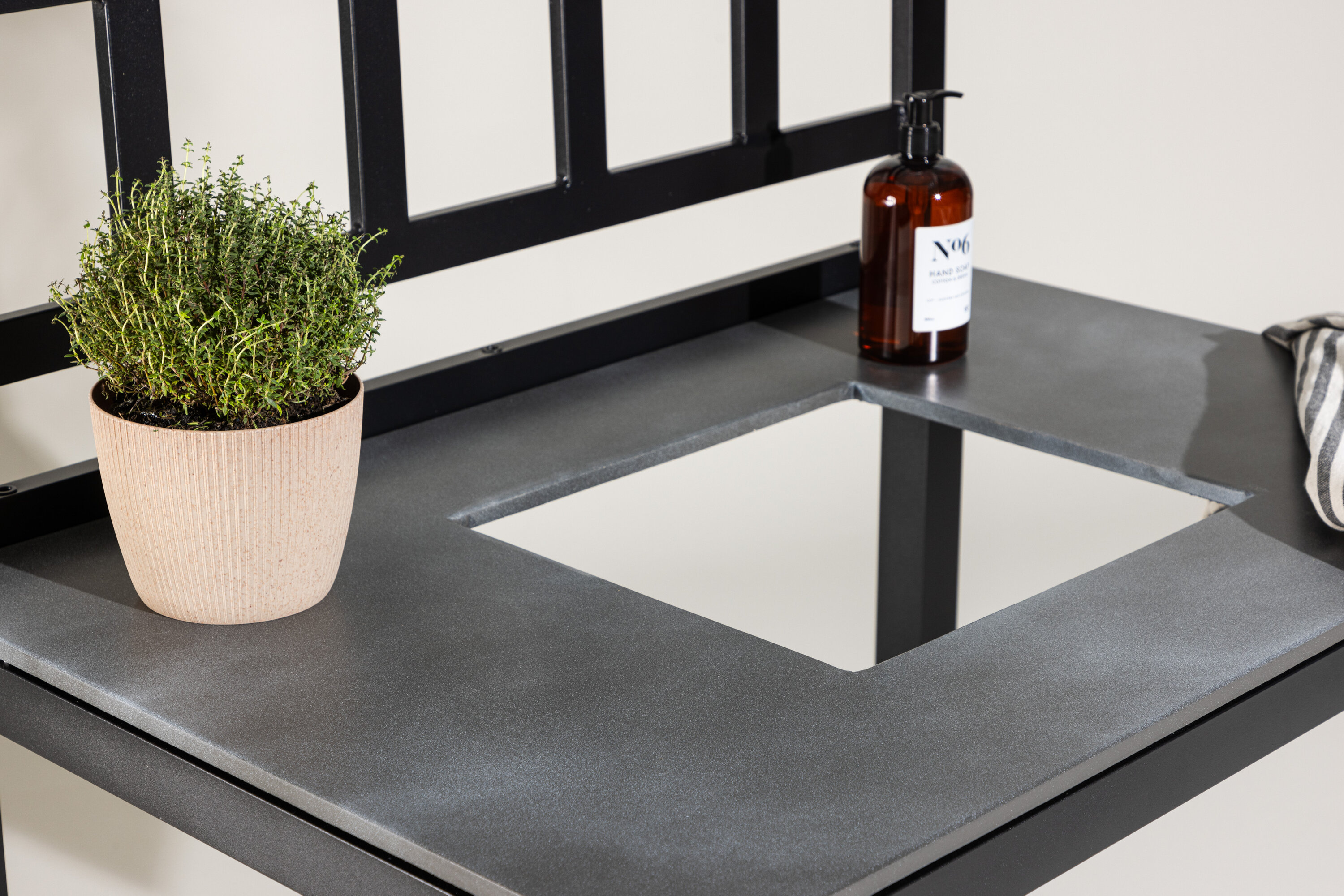Découvrez Alicante, l'élégant comptoir de cuisine en plein air qui allie élégance et fonctionnalité de la meilleure façon. Avec un cadre noir robuste et une surface grise élégante, Alicante est à la fois élégante et facile à nettoyer, parfaite pour la cuisine et les réunions sociales en plein air. Vous pouvez utiliser Alicante comme unité autonome, idéale pour les petits espaces et les besoins plus simples, ou l'agrandir en ajoutant plus de pièces de la série Alicante pour créer une grande cuisine extérieure spacieuse adaptée à vos besoins spécifiques. Le comptoir de cuisine est équipé d'une étagère pratique pour le rangement supplémentaire des ustensiles de cuisine, des accessoires de gril ou d'autres nécessités, ce qui rend la cuisson à la fois plus facile et plus organisée. Le comptoir a un trou au milieu, parfait pour compléter avec un évier. Avec son design élégant et ses caractéristiques pratiques, Alicante devient un ajout indispensable à votre jardin ou patio, parfait pour tout, d'un simple dîner en plein air à un grand barbecue.