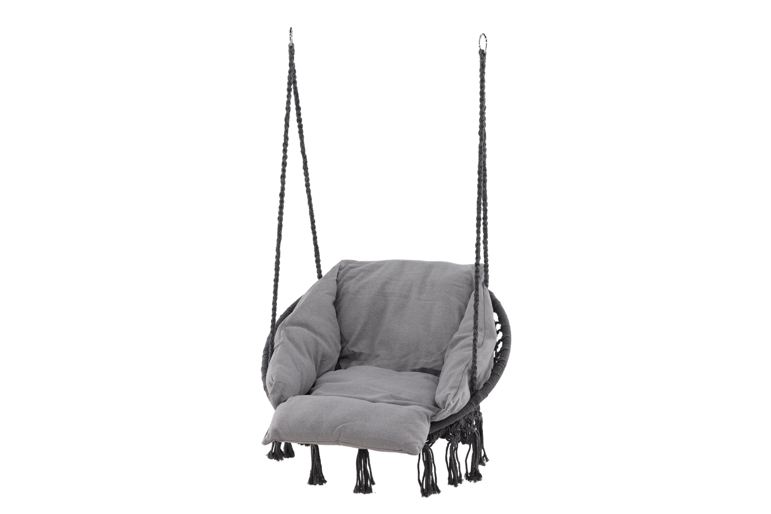 Faites de ce lieu de rencontre estival quelque chose d'encore plus spécial dans cette délicieuse chaise suspendue de la série Hamtic. Le design est bien pensé et a la forme d'un panier qui est soutenu par des cordes durables dans une couleur grise agréable. Des coussins gris duveteux sont inclus, ce qui contribue à un confort supplémentaire. Accrochez-le sur la terrasse ou dans le jardin et profitez d'une icône de design confortable qui attirera non seulement les regards cet été, mais deviendra également votre nouvel endroit préféré pour vous détendre !