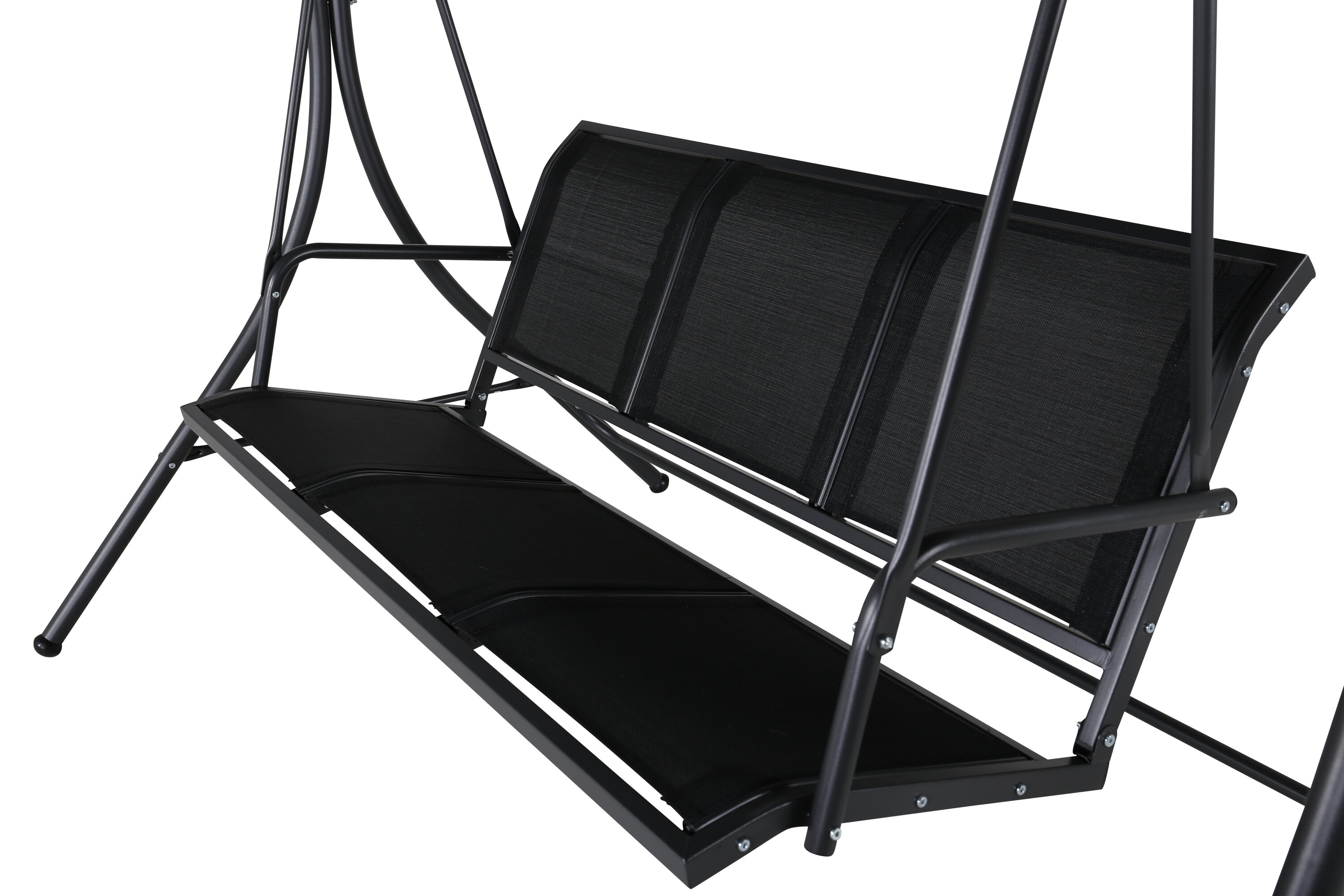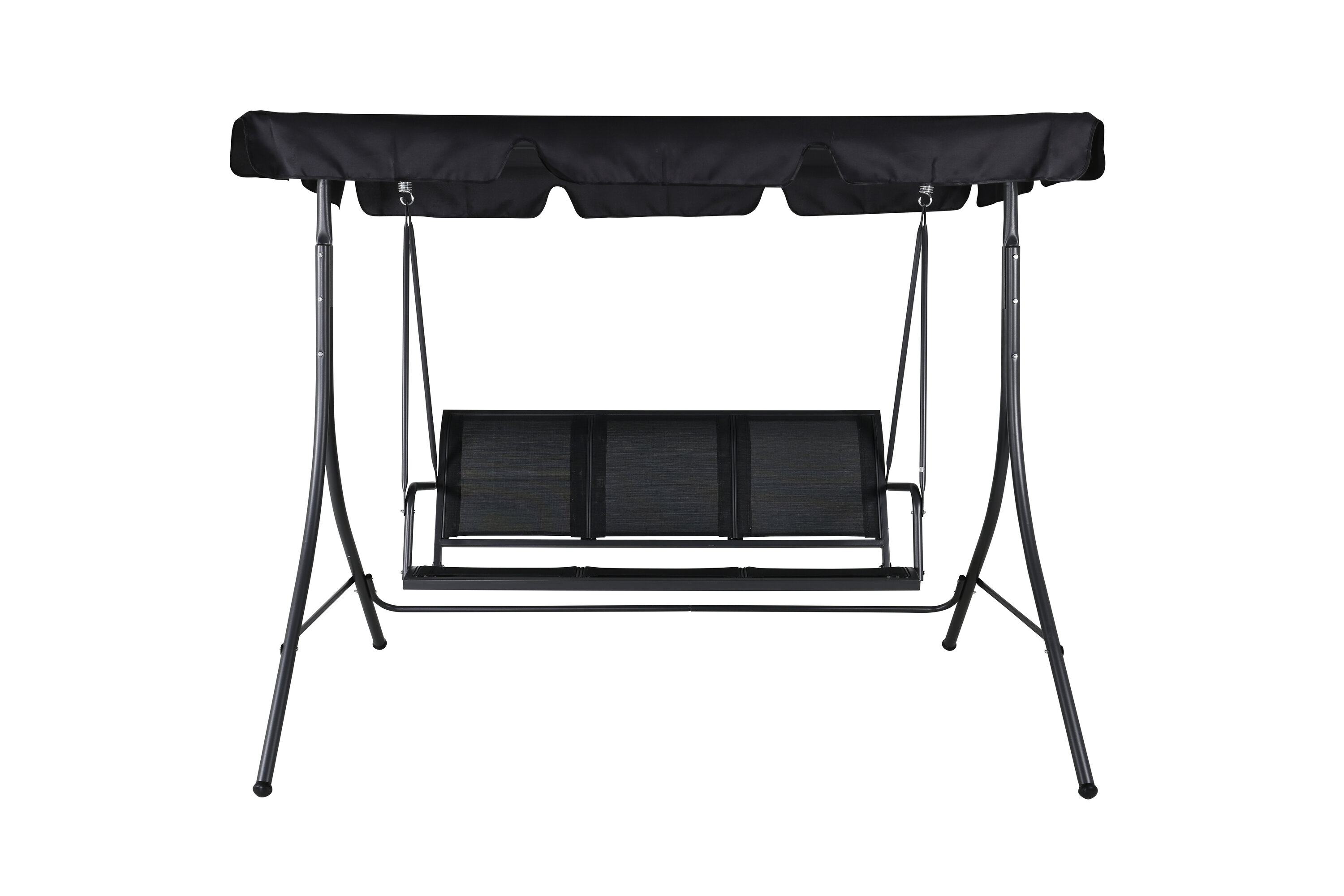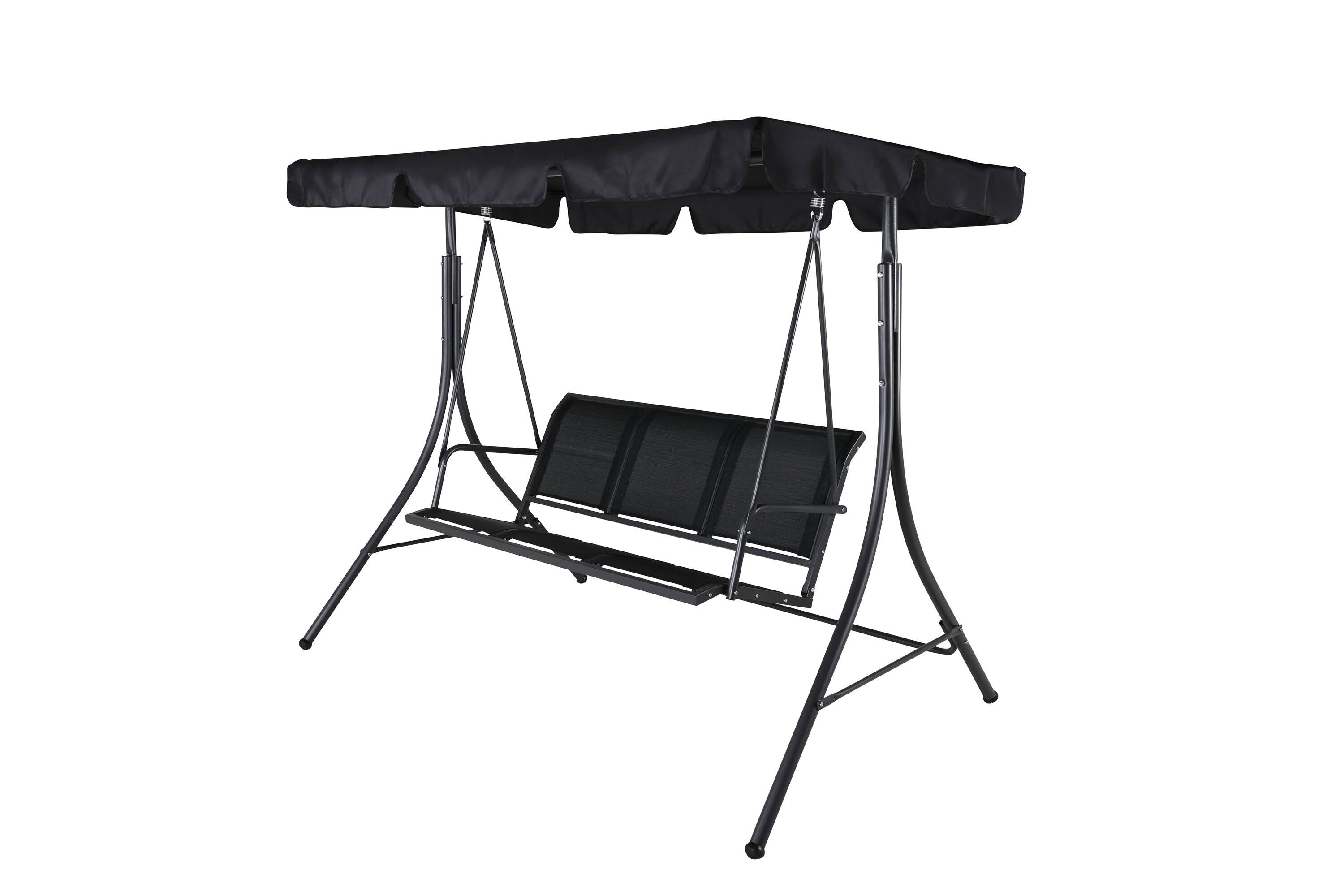 Monteral, le hamac trois places parfaitement charmant qui vous fera bien vous détendre ce printemps et cet été. Le hamac est disponible dans une couleur noire intemporelle avec un cadre en aluminium et un tissage en polyester traité au PVC. Le design est élégant et joli avec un toit réglable afin que vous puissiez toujours décider par vous-même si vous voulez vous asseoir à l'ombre ou vous réchauffer au soleil. Étirez un bon livre et profitez de votre sortie dans le jardin ! Aucun coussin n'est inclus.