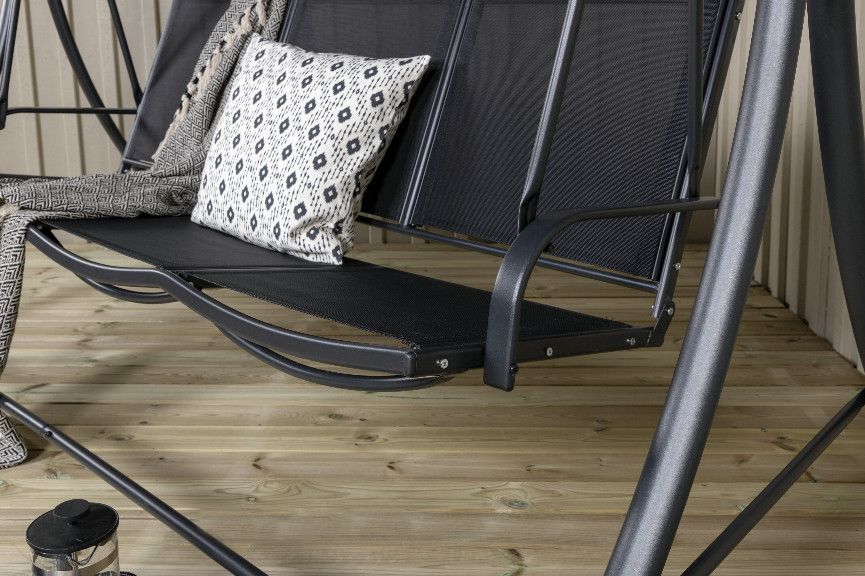 Profitez de l'été de la meilleure façon possible - avec notre hamac Madras. Le hamac a trois sièges et un toit en PVC et polyester, le cadre est en acier. Placez-le sur le patio et passez de longues journées et soirées en famille et entre amis, ou pourquoi ne pas vous asseoir avec votre livre préféré.