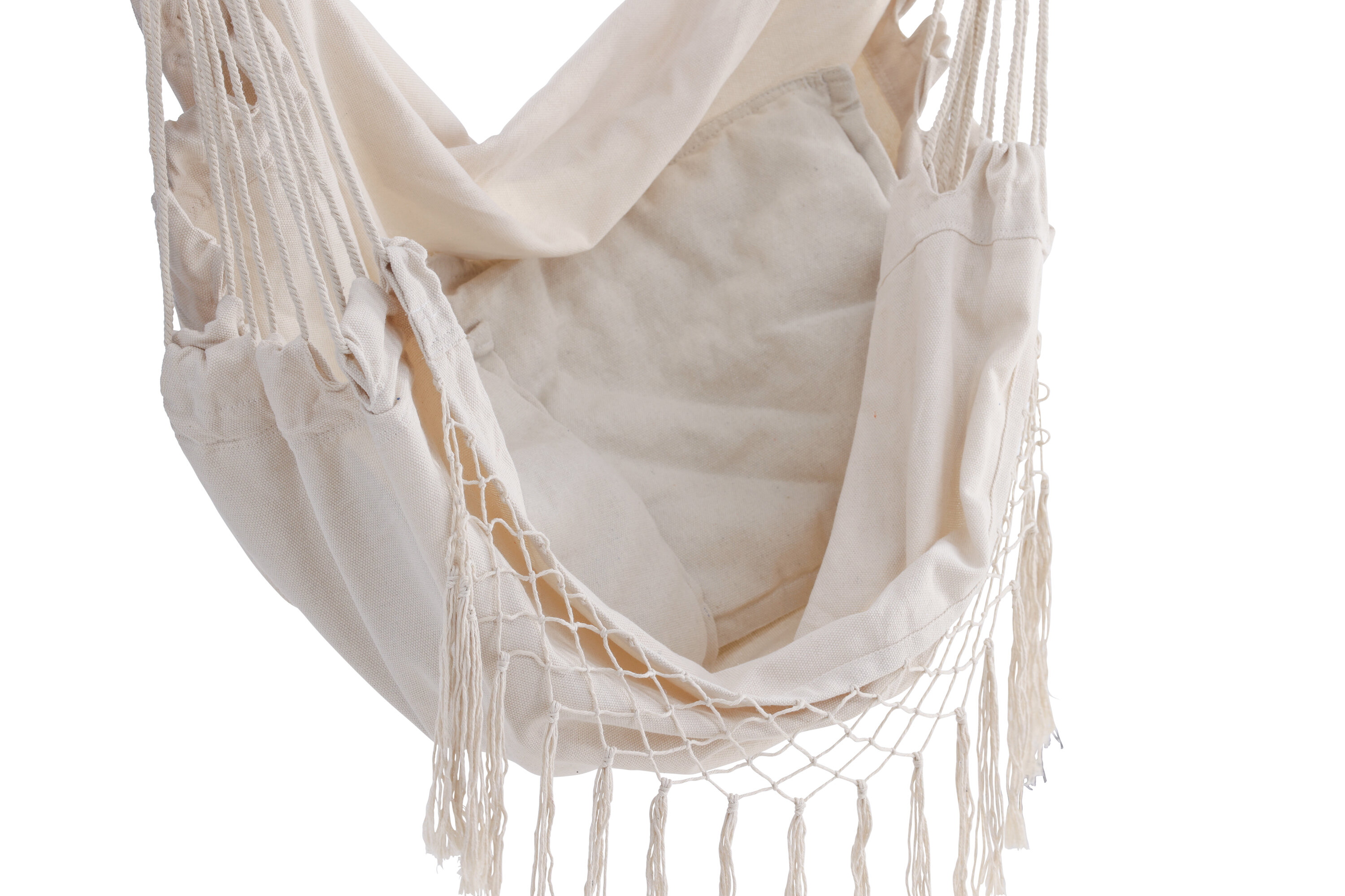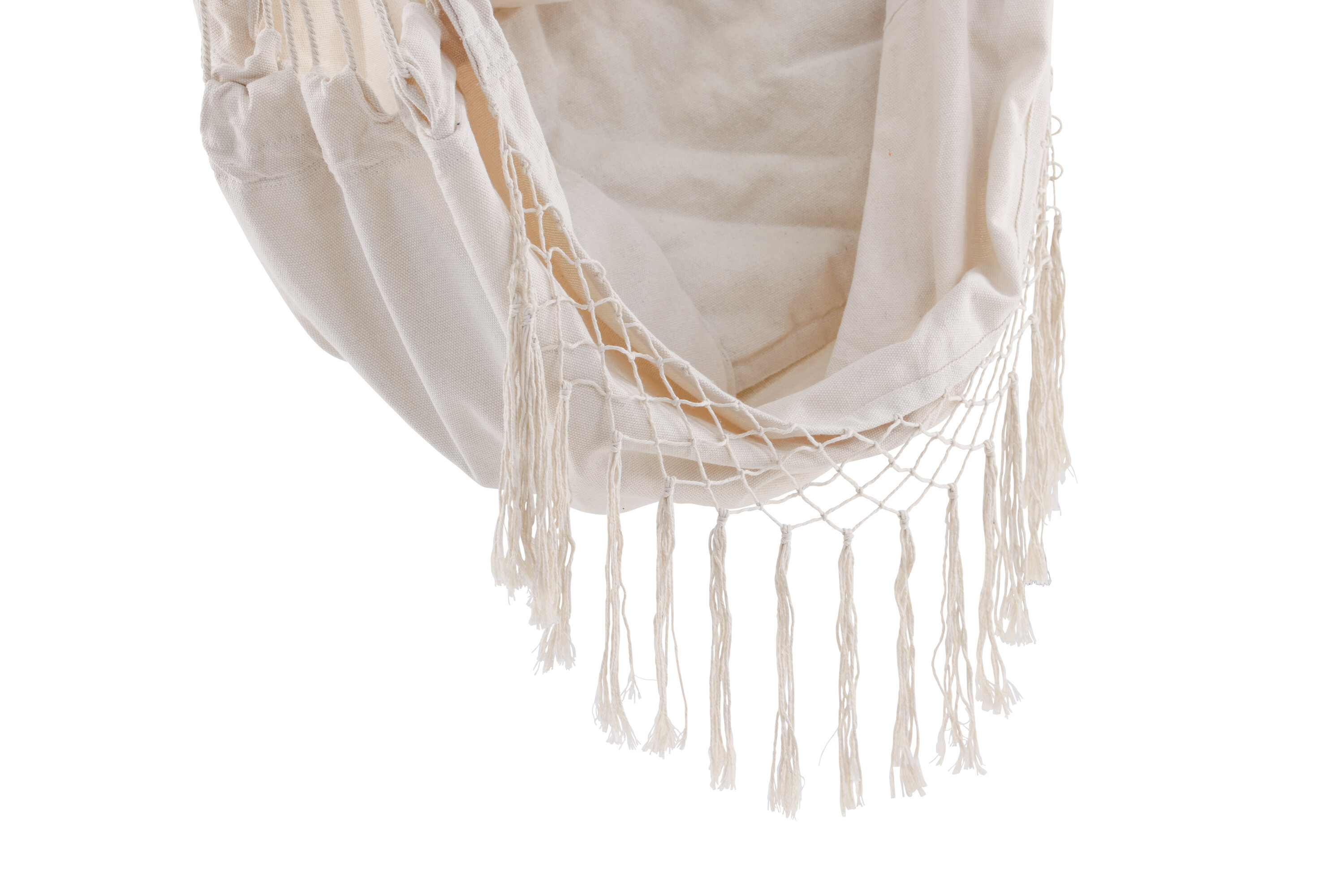 Cette charmante chaise suspendue vous offre un endroit paisible et confortable pour profiter du jardin. Culasi a un design accueillant et un design tendance avec un siège en polyester blanc et tissu de coton. Les cordes durables de la même couleur sont maintenues par un bâton en bois décoratif, qui devient un détail élégant dans l'accroche-regard. Ici, vous pouvez vous balancer et profiter d'un moment tranquille seul !