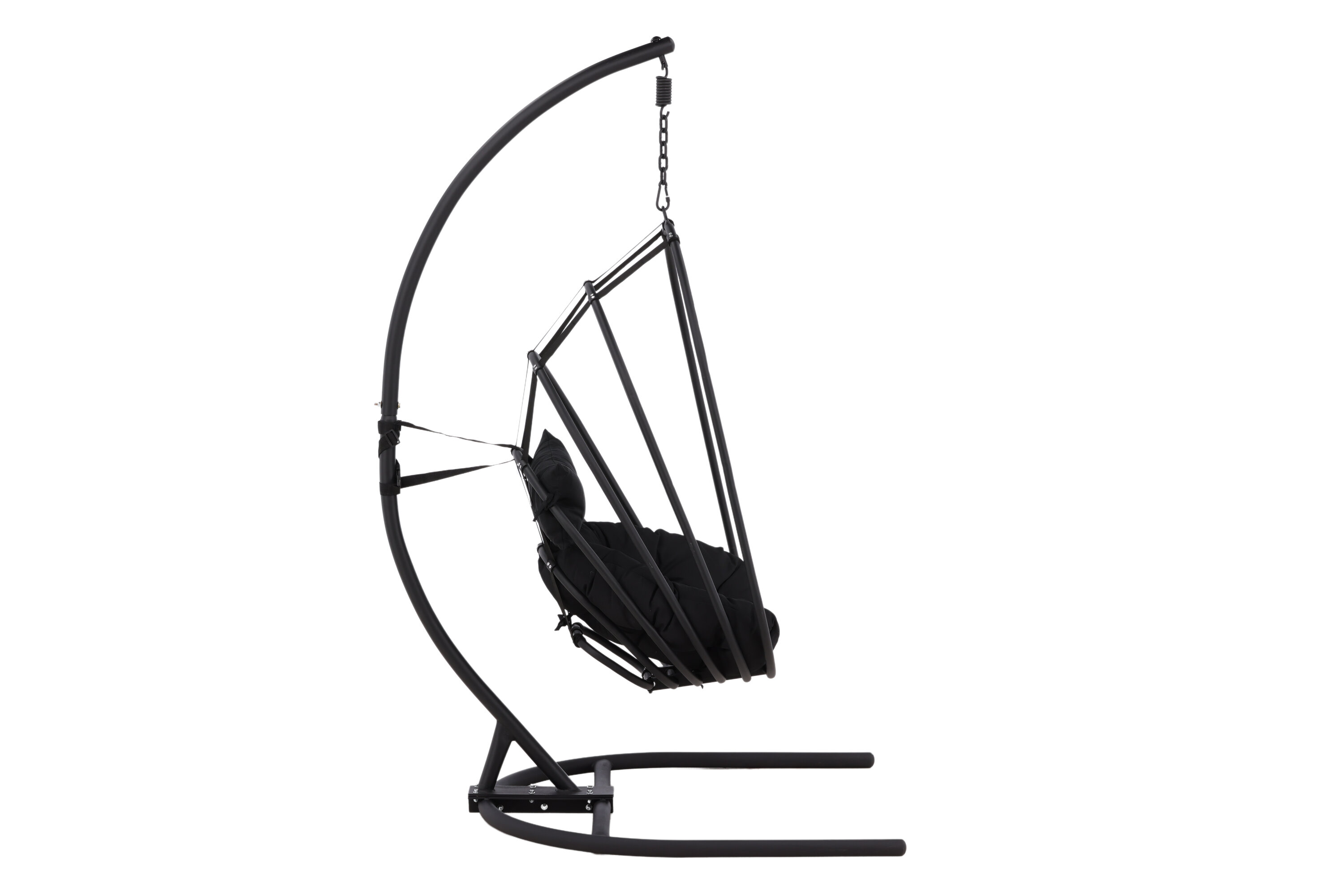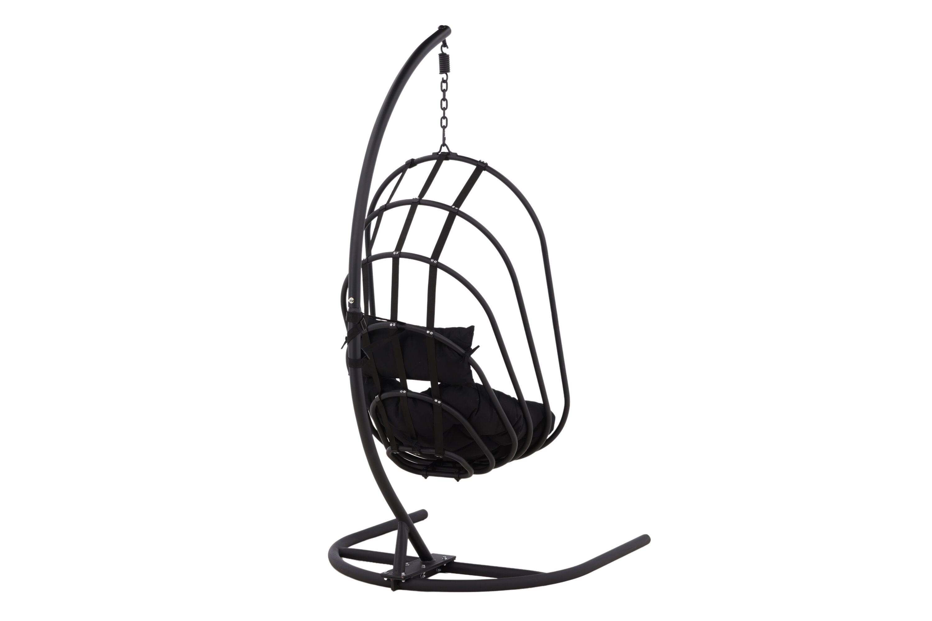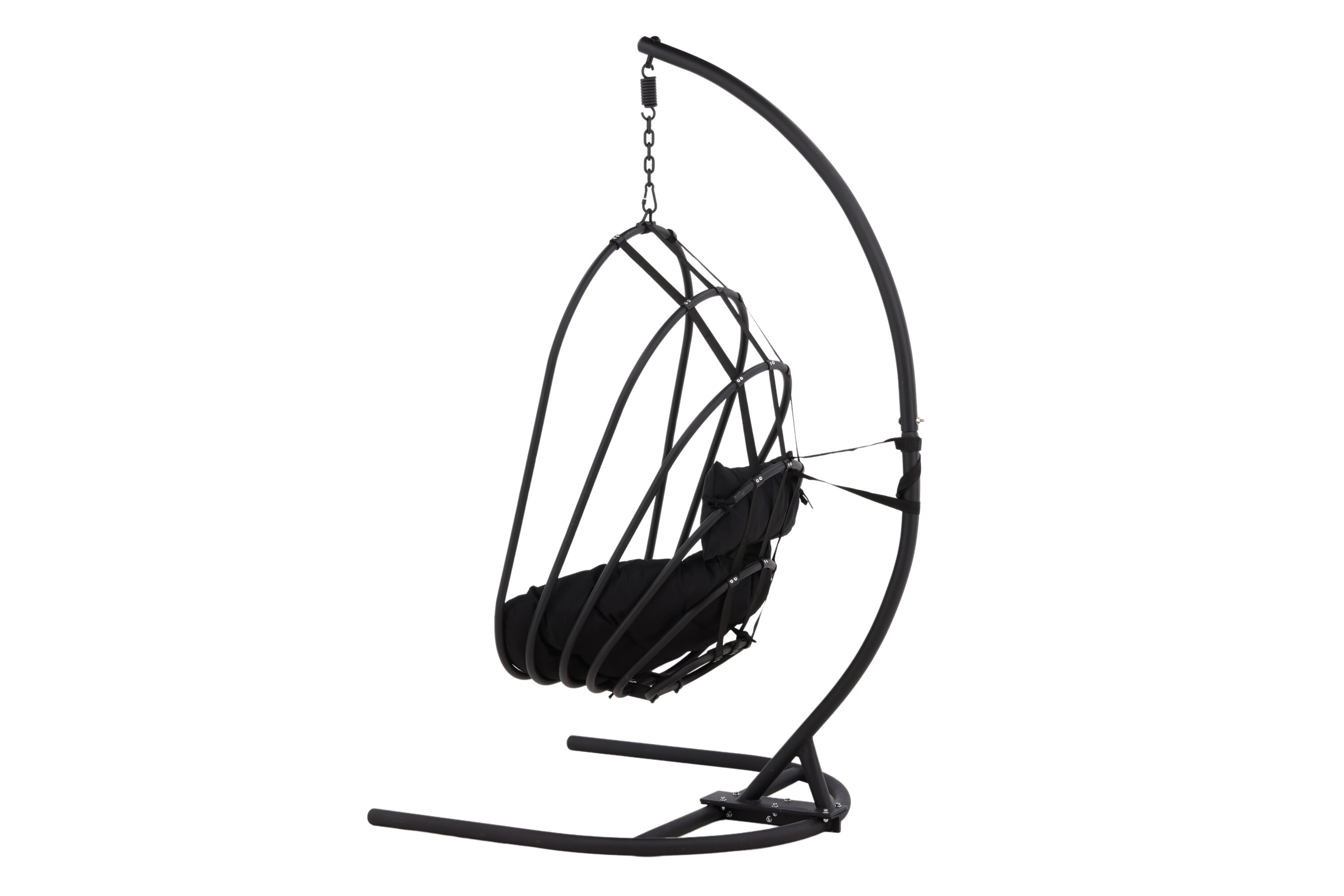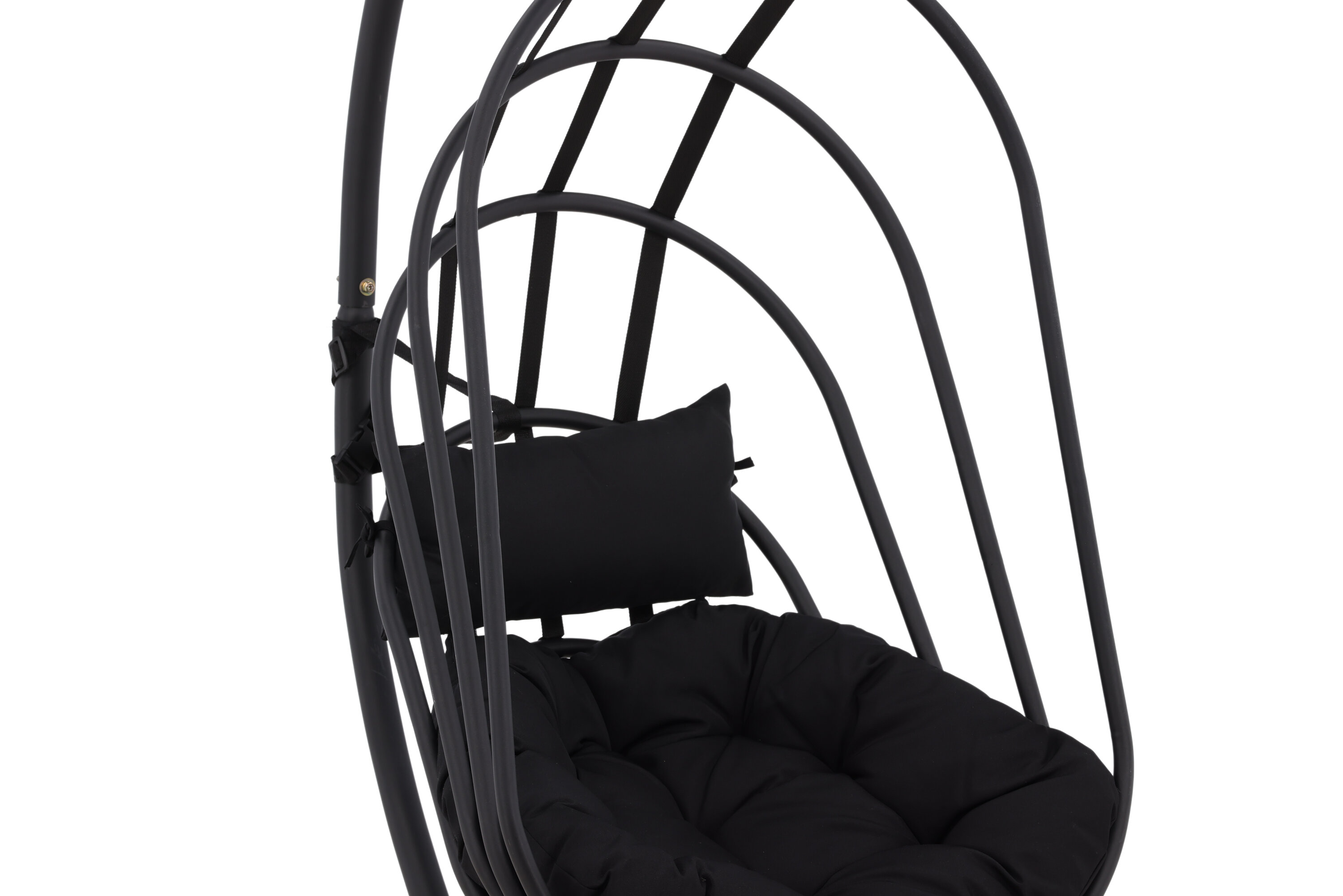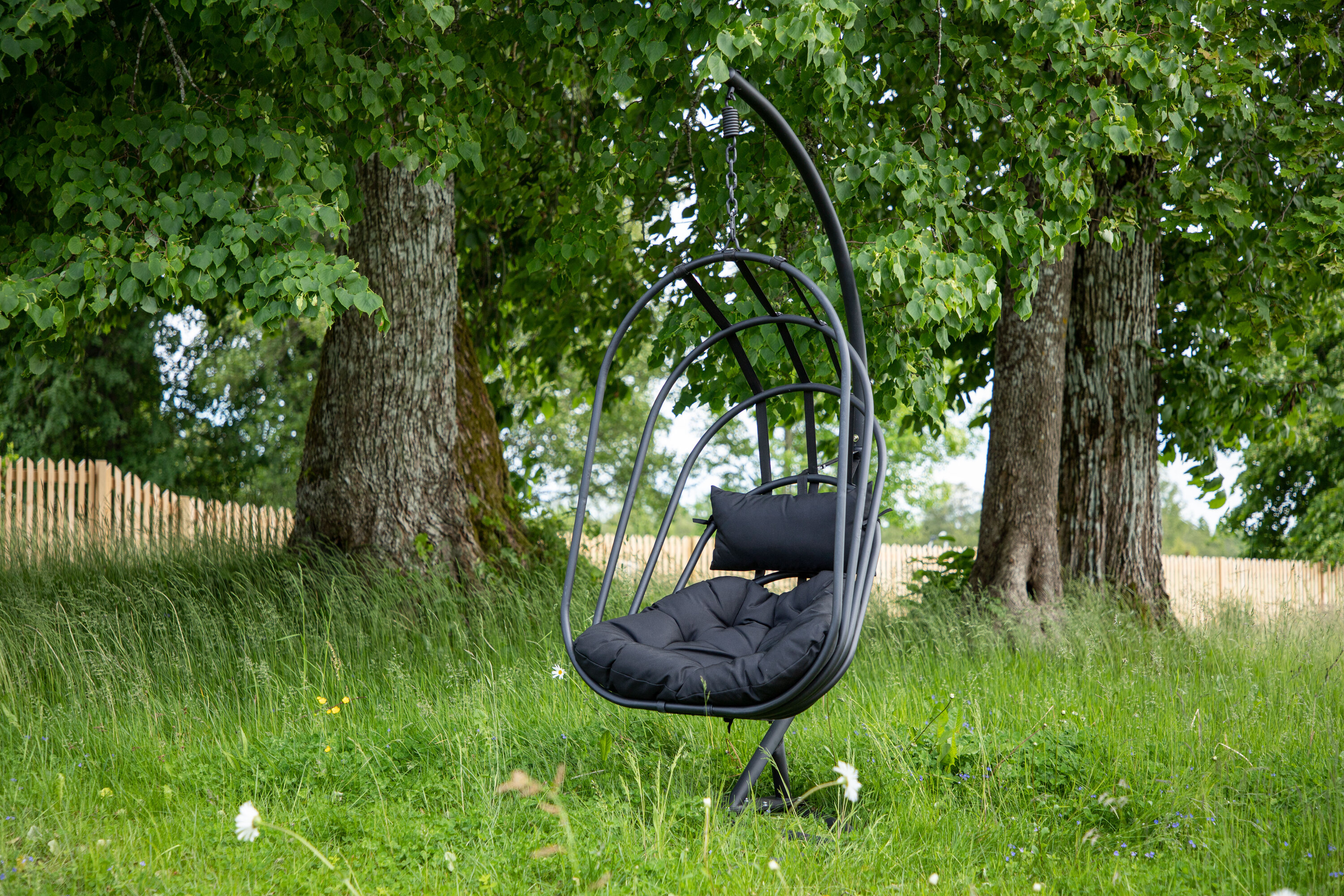 Cette chaise suspendue est livrée avec un siège et un coussin de dossier en polyester confortables, tous deux dans une couleur noire assortie. Vous pouvez vous enfoncer dans Panay et vous détendre tout en profitant de la nature environnante ou d'un bon livre.