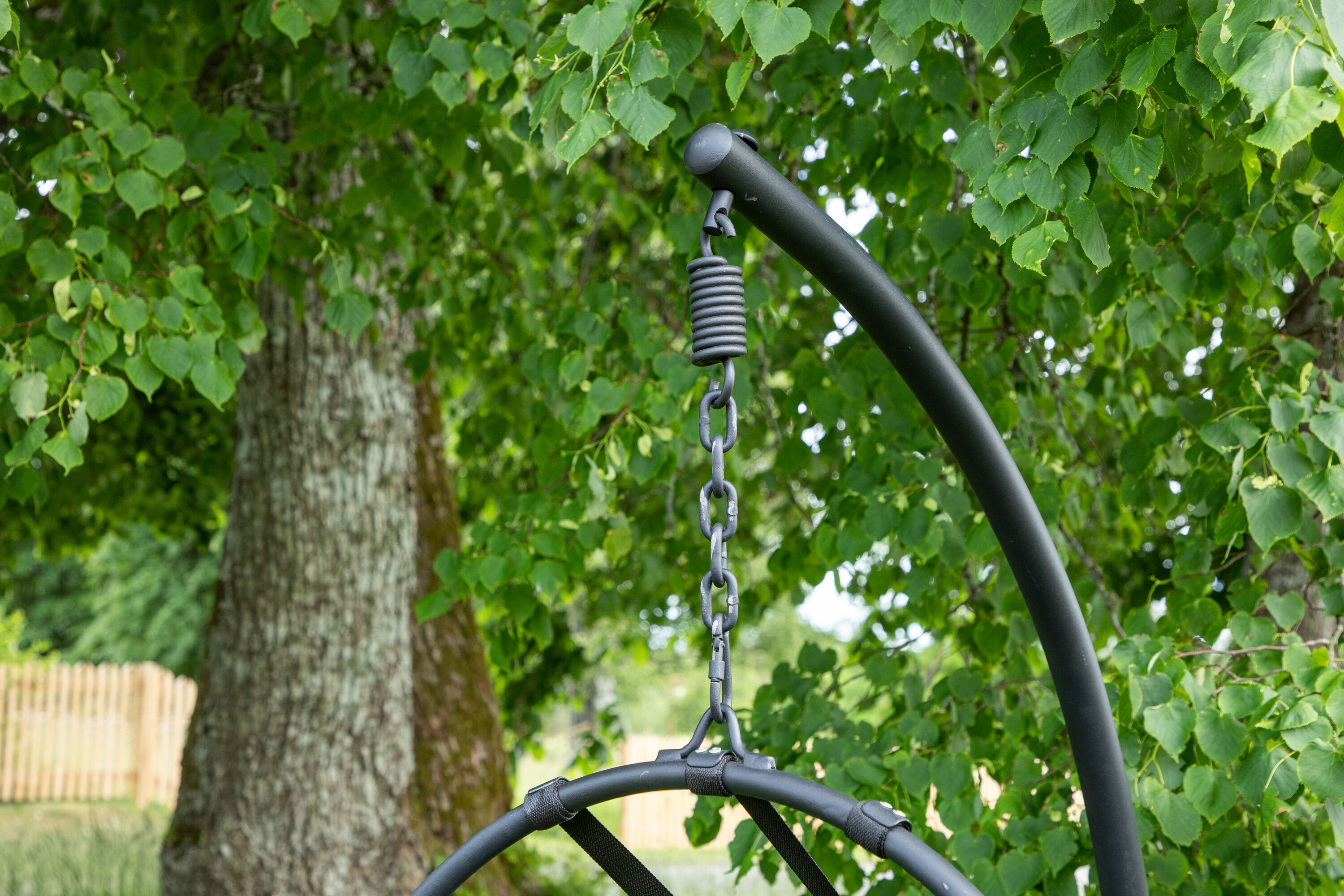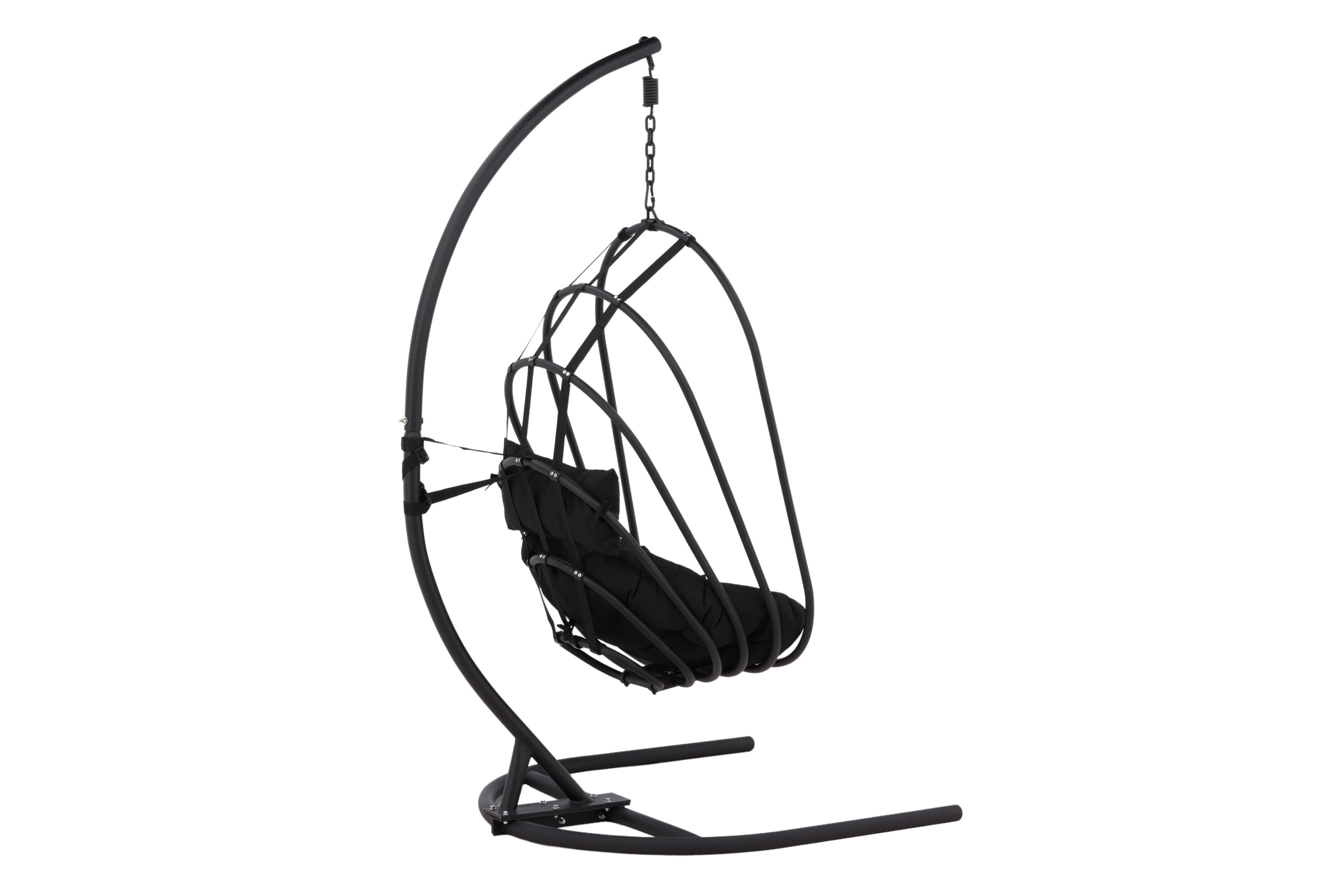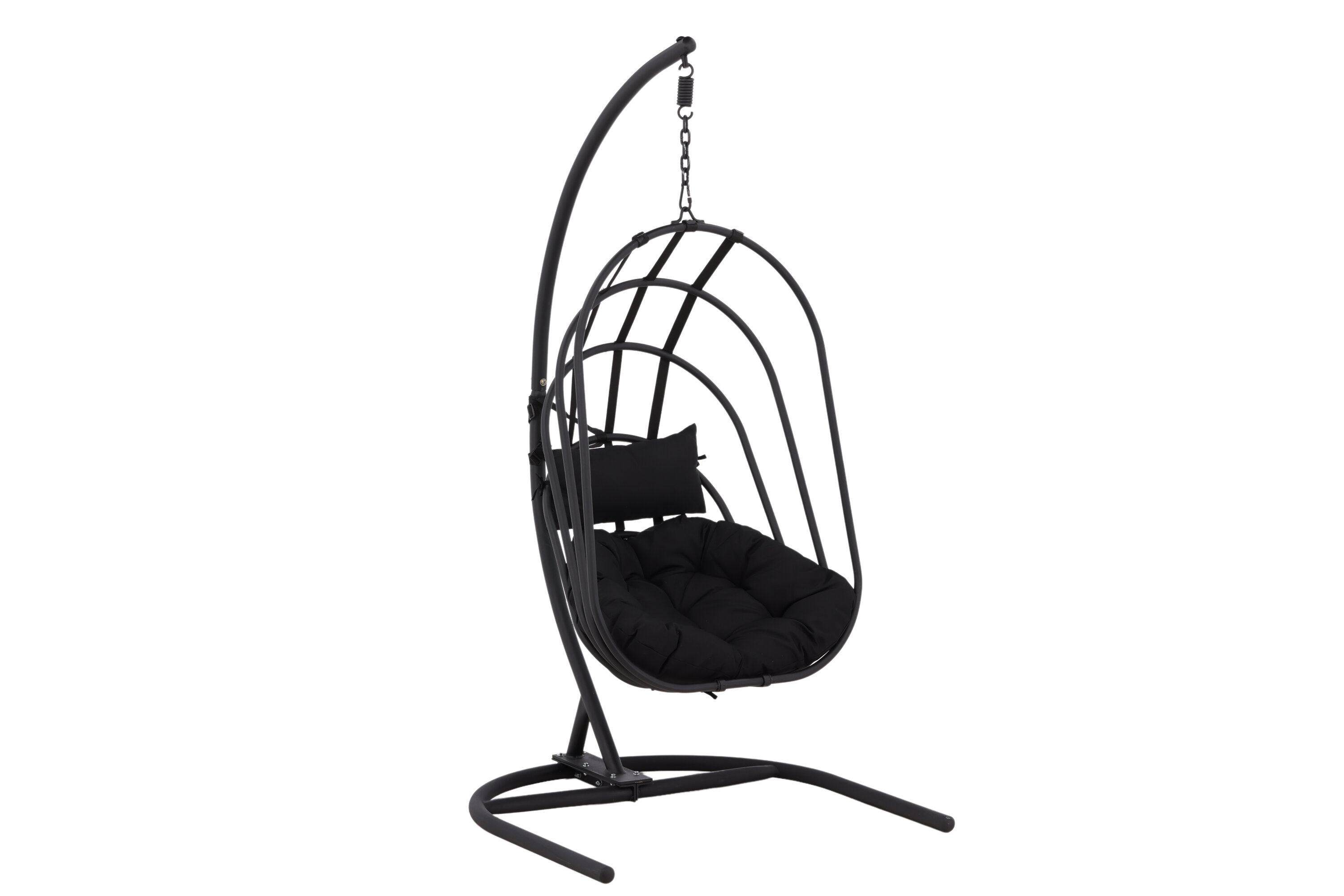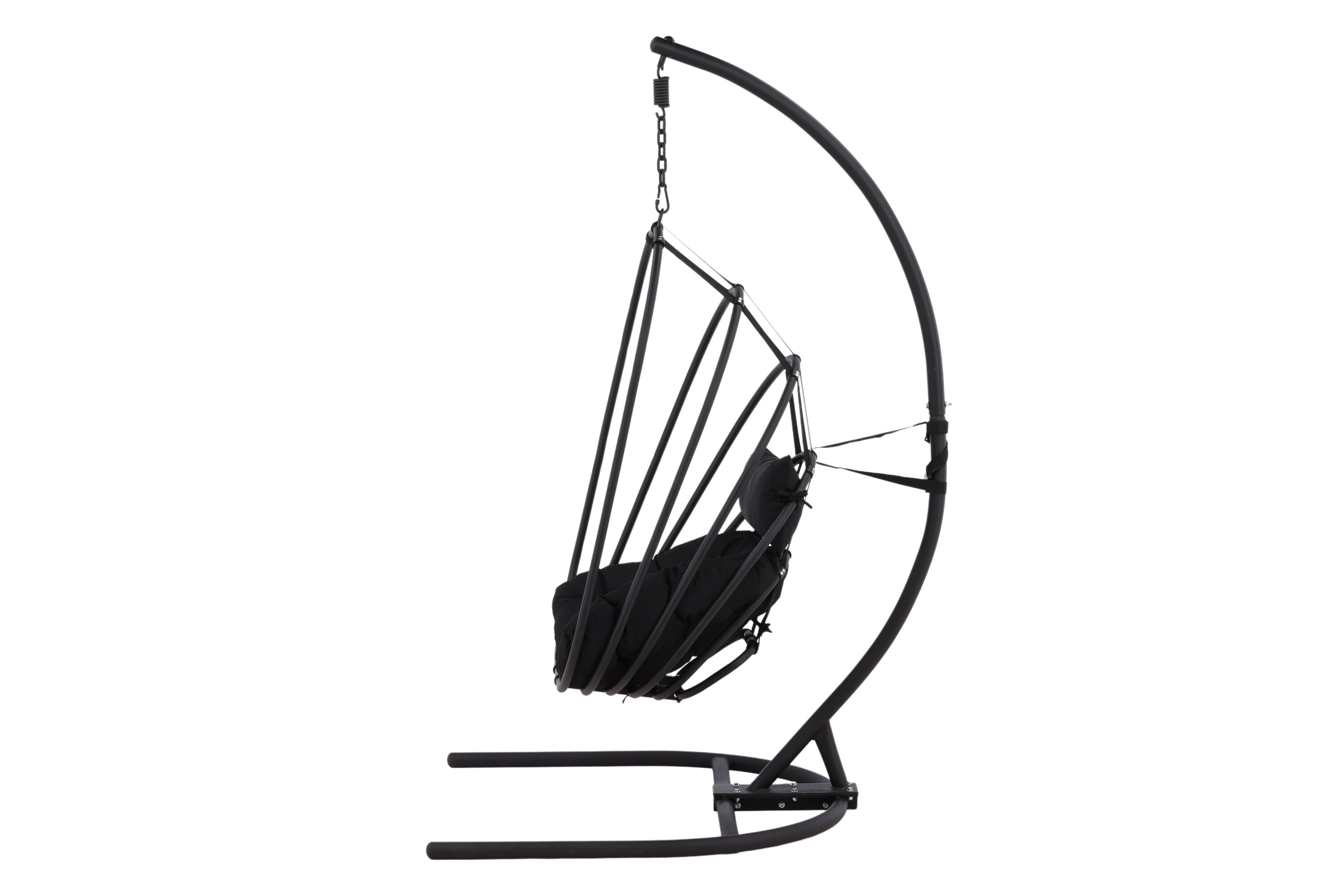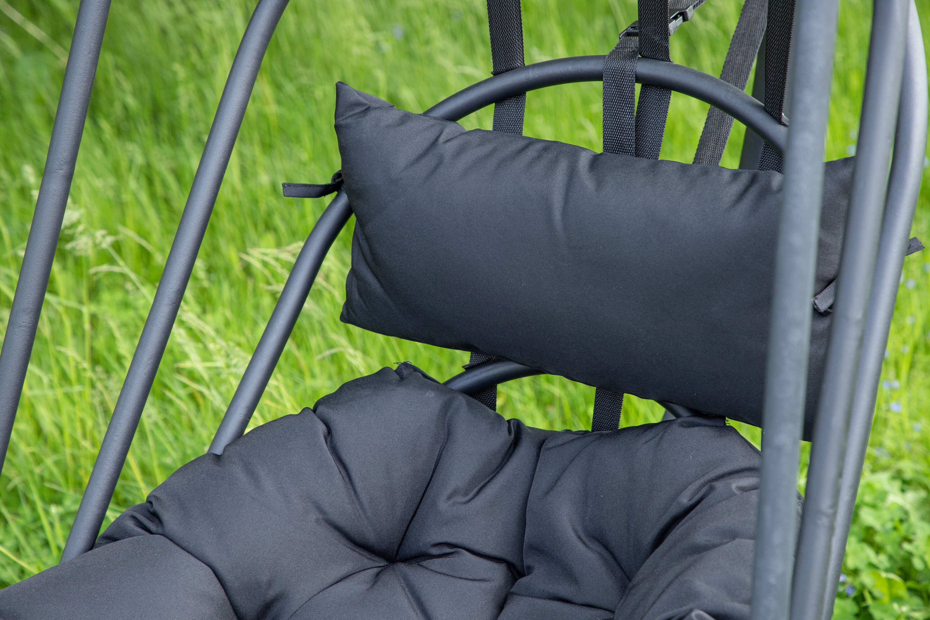 Cette chaise suspendue est livrée avec un siège et un coussin de dossier en polyester confortables, tous deux dans une couleur noire assortie. Vous pouvez vous enfoncer dans Panay et vous détendre tout en profitant de la nature environnante ou d'un bon livre.