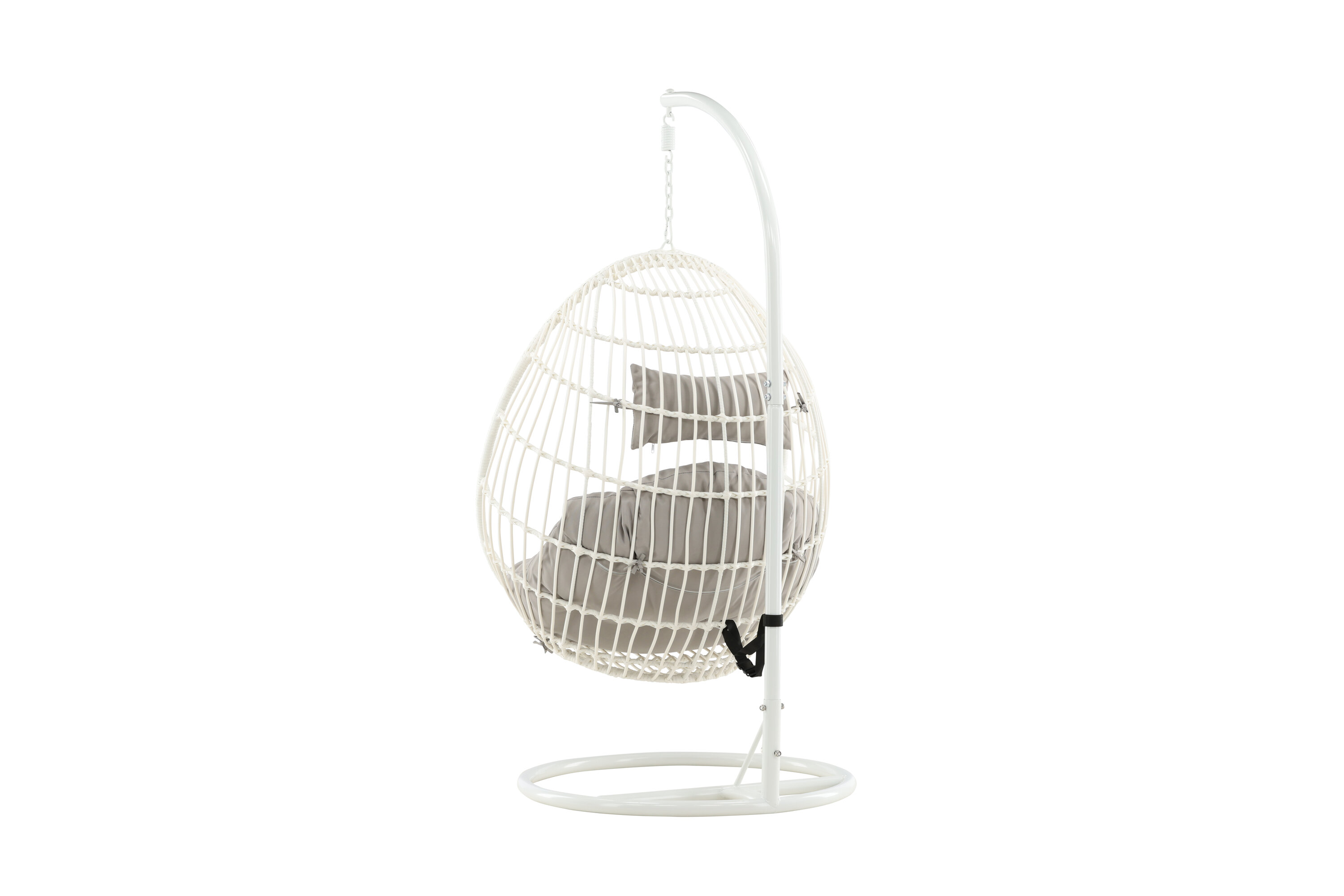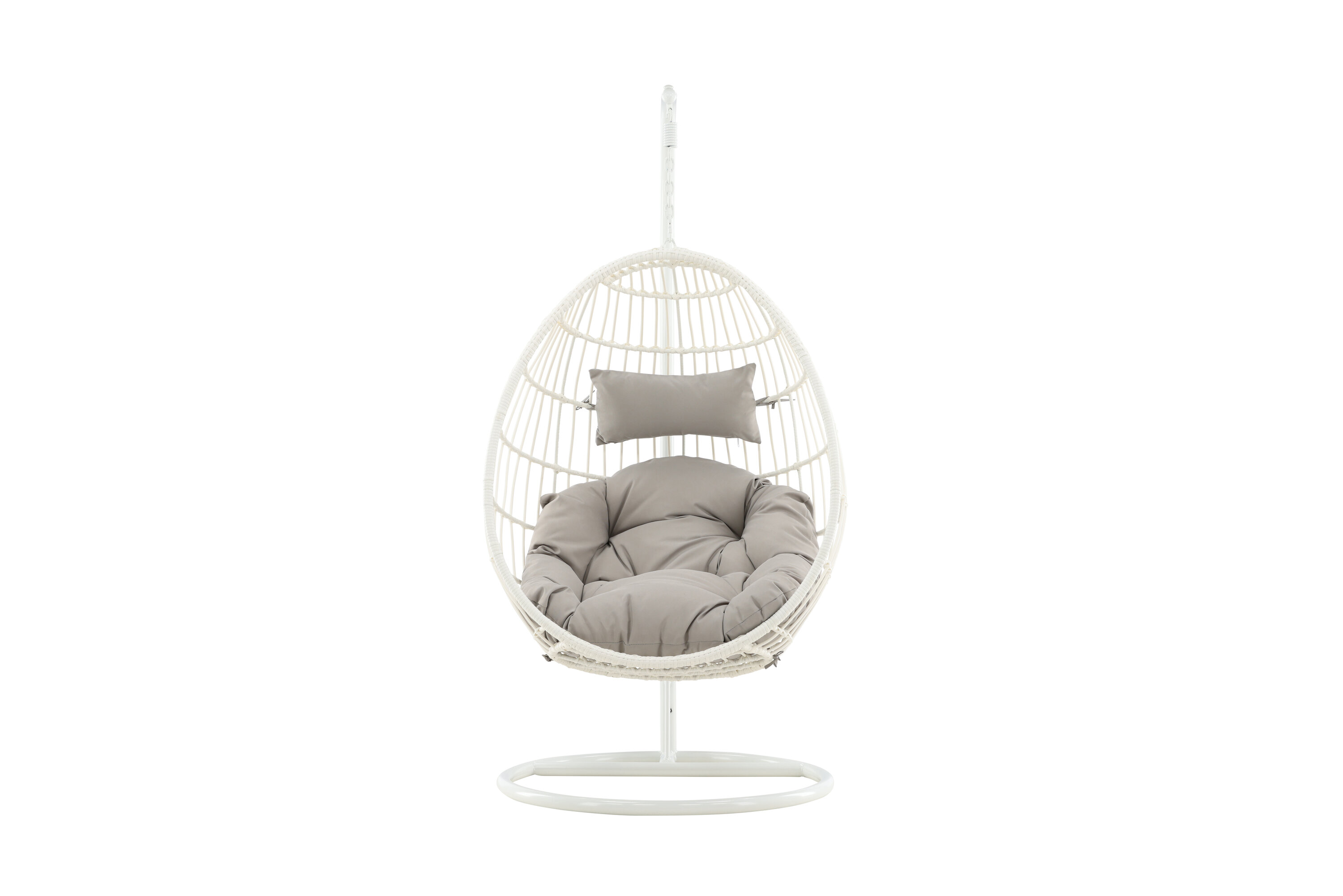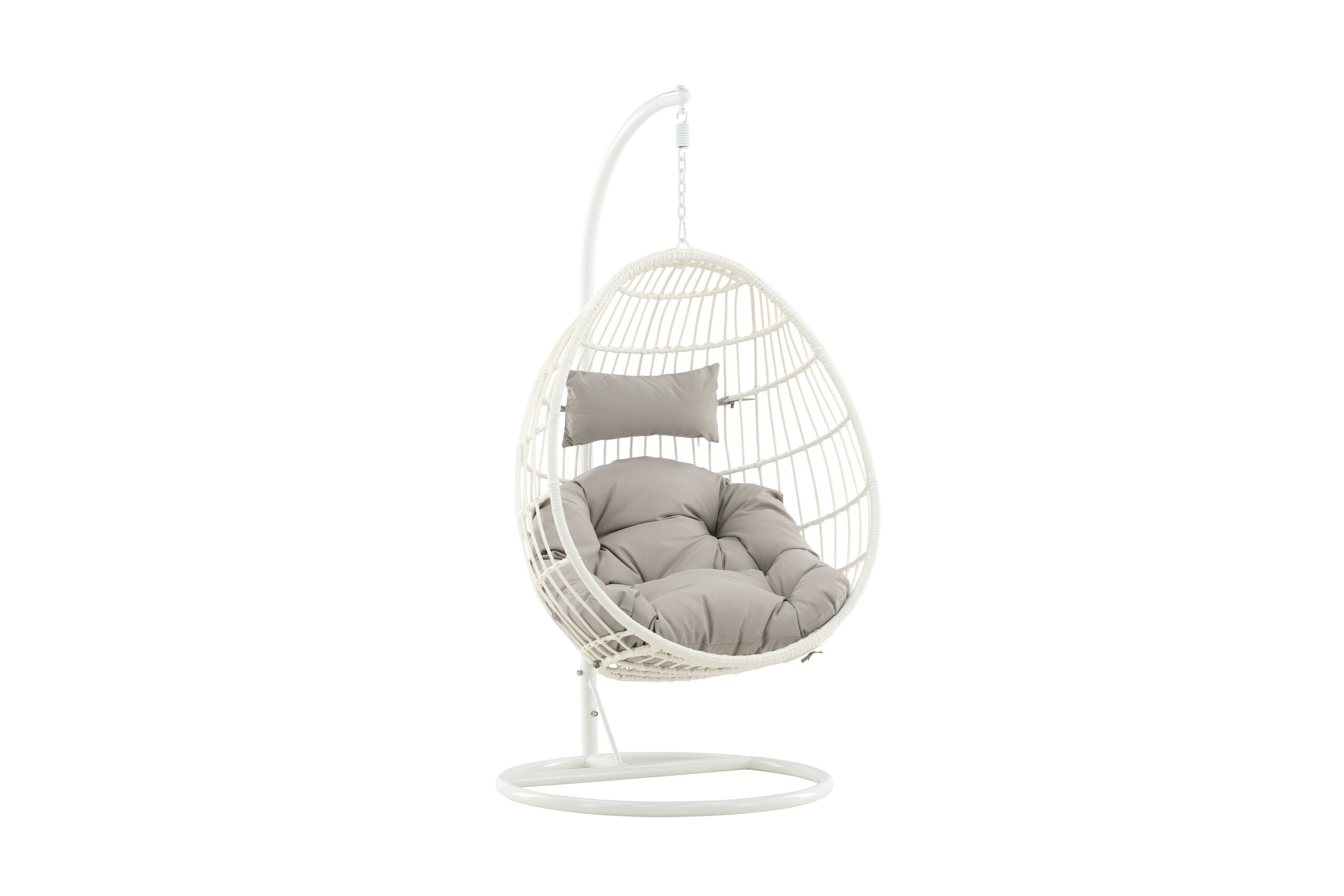 Faites de l'été suspendu quelque chose de vraiment supplémentaire dans cette délicieuse chaise suspendue à la perruque ! Le design est bien pensé et conçu avec un support en acier blanc et un rotin artificiel qui comprend des oreillers gris duveteux. Aménagez le patio avec une véritable icône de design qui attirera non seulement les regards cet été, mais aussi votre nouvel endroit préféré.