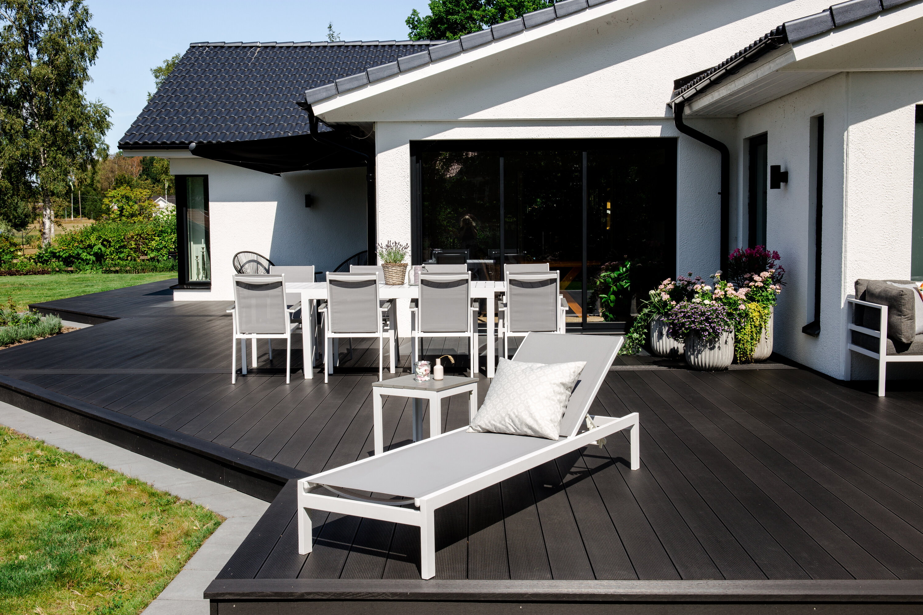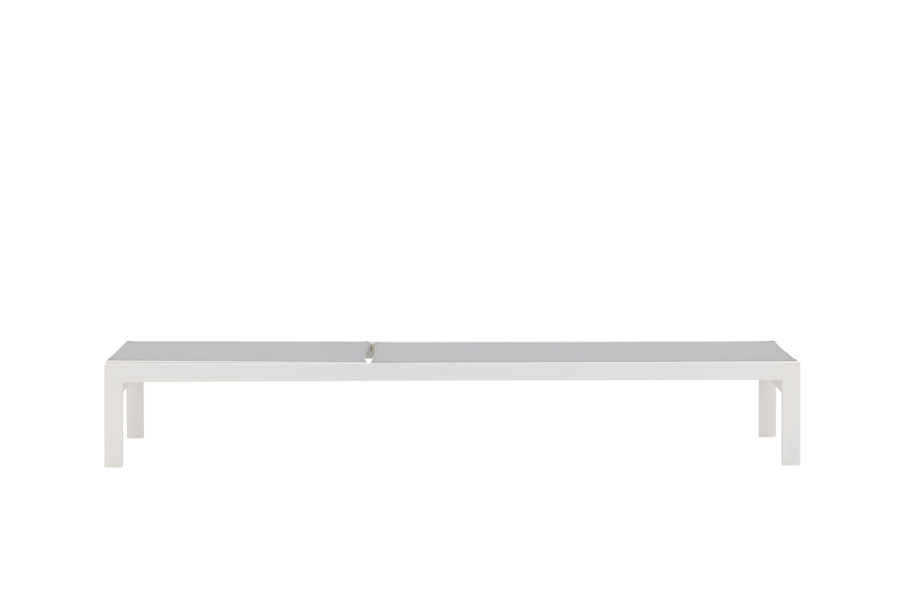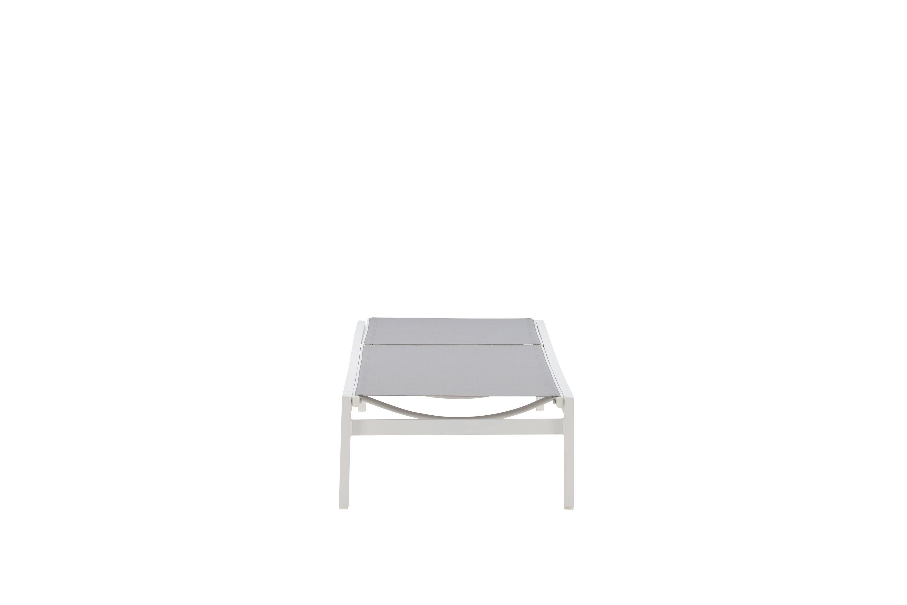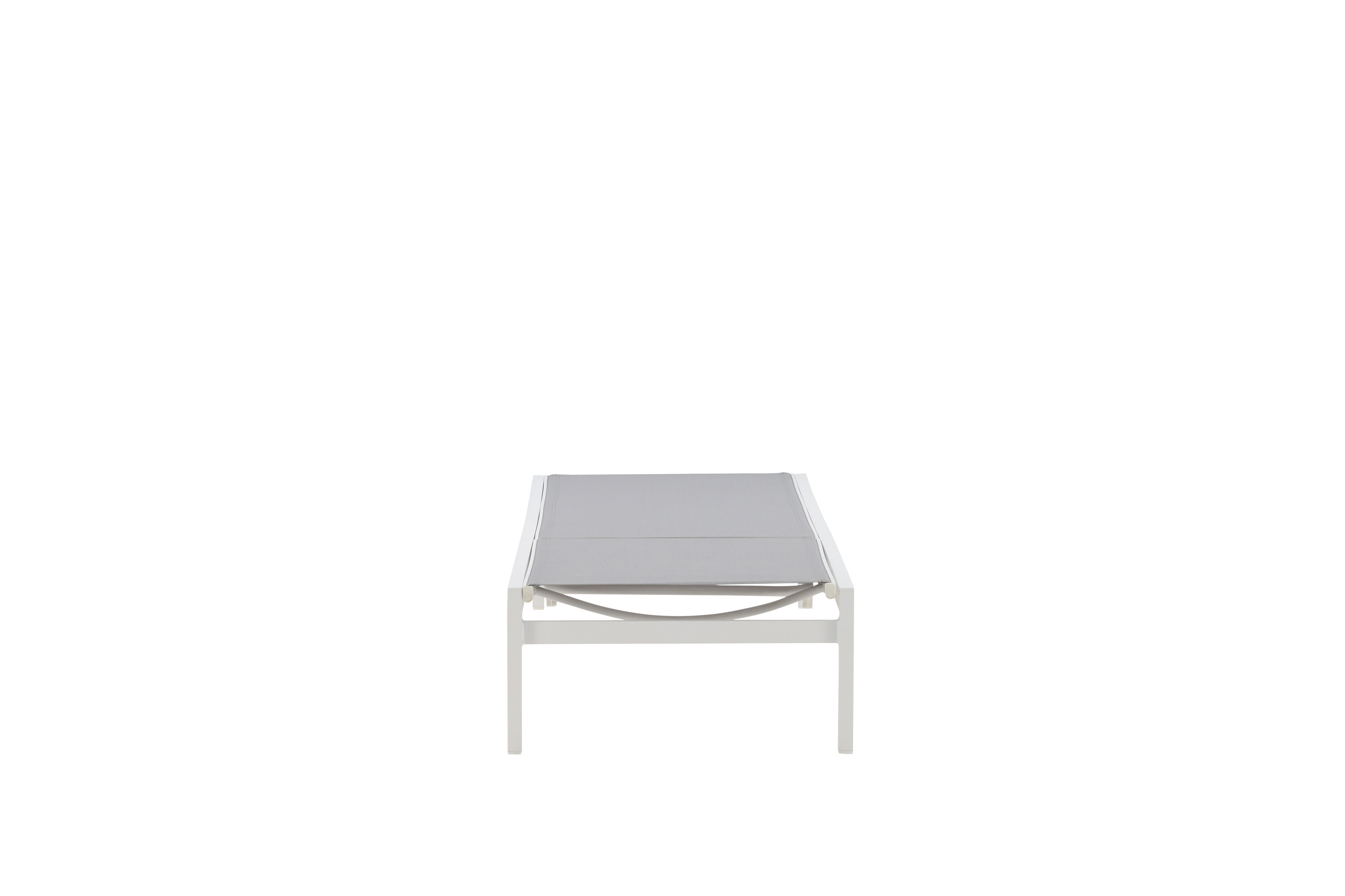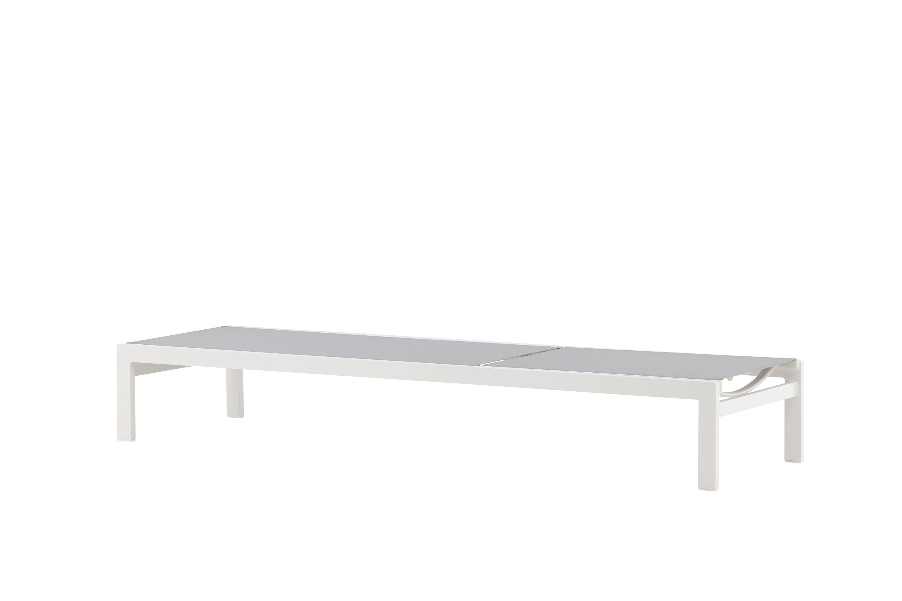 Lit de bronzage classique en aluminium blanc et textile gris. Le dossier du transat peut être ajusté - profitez d'une belle sieste ou pratique et lisez un bon livre !