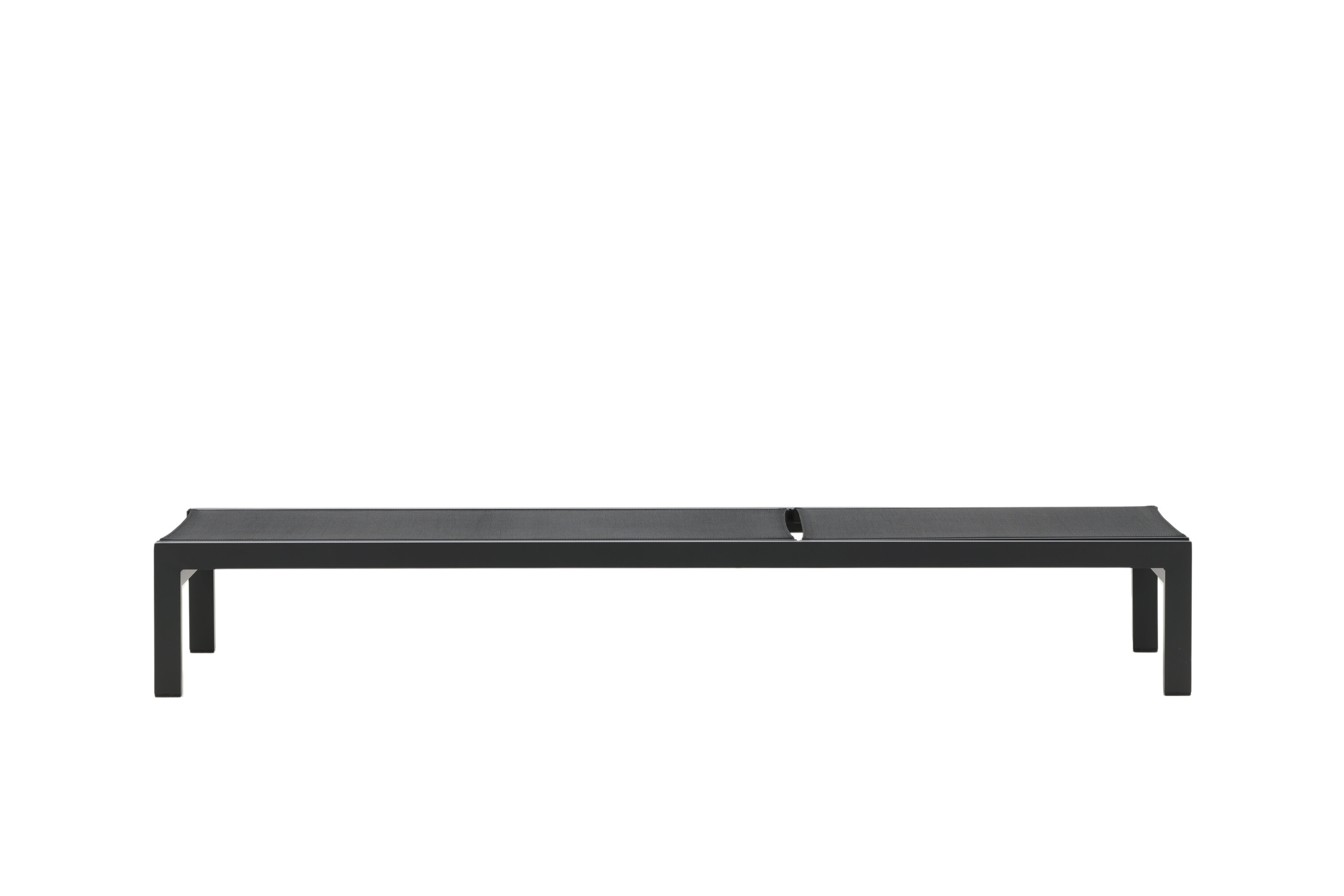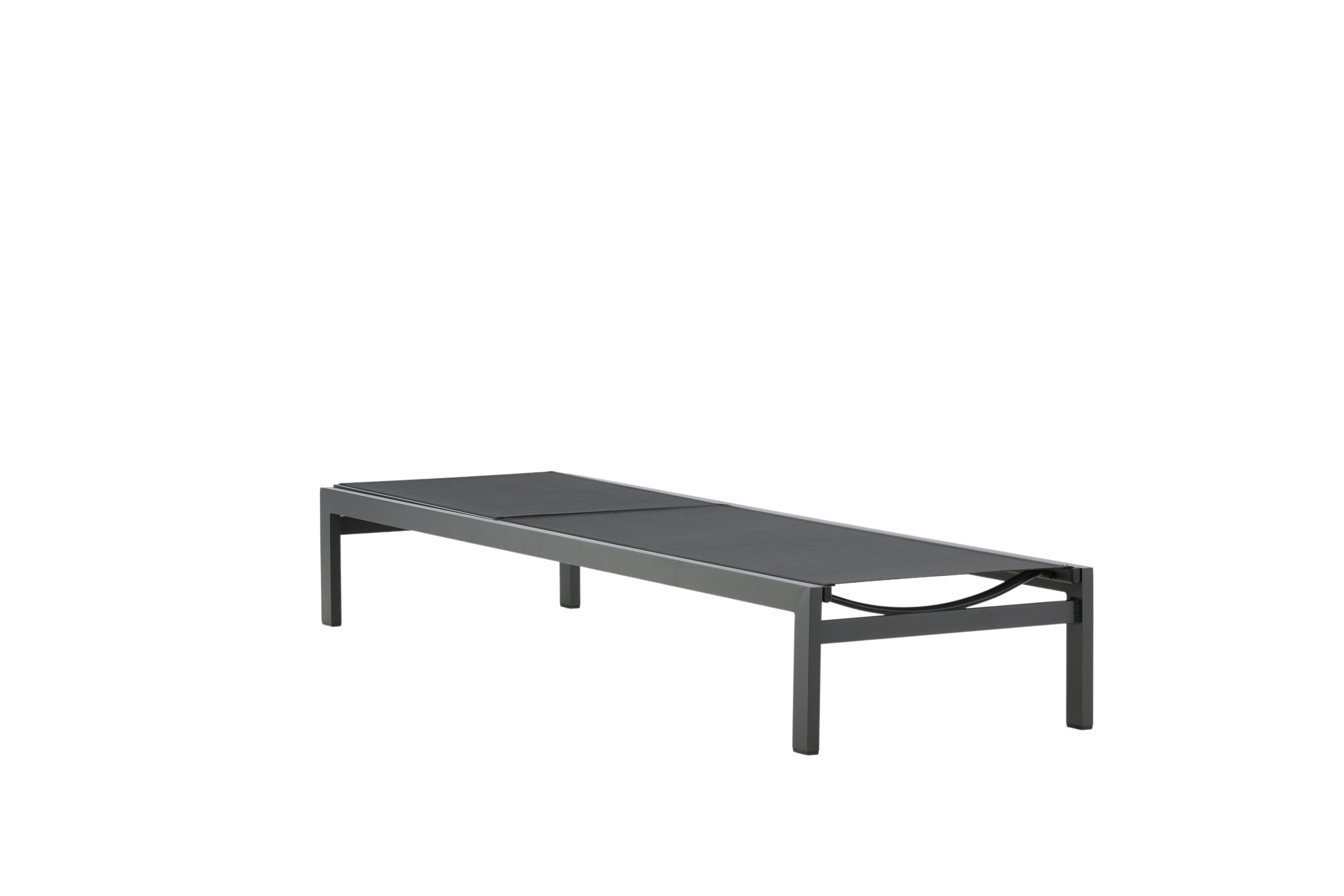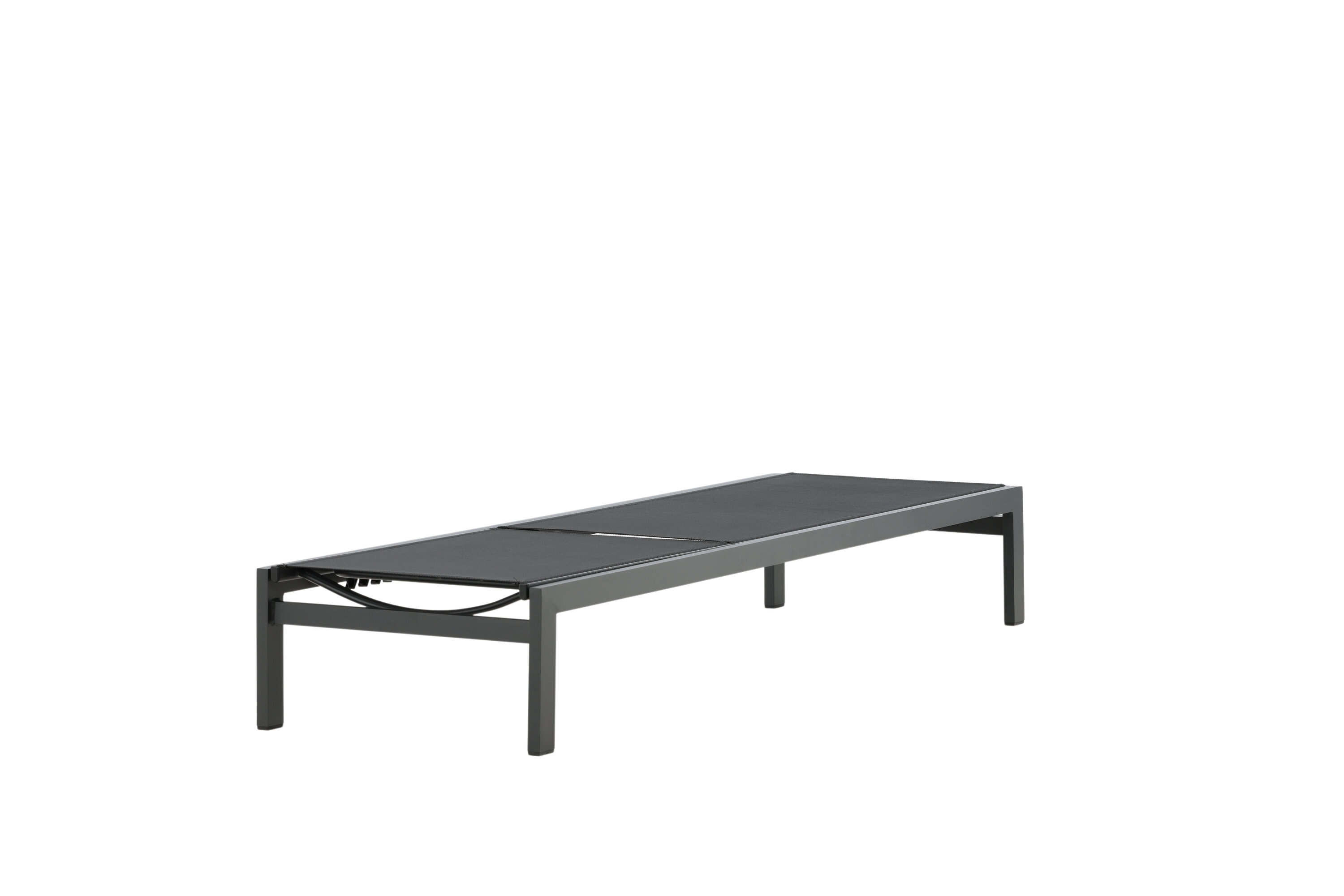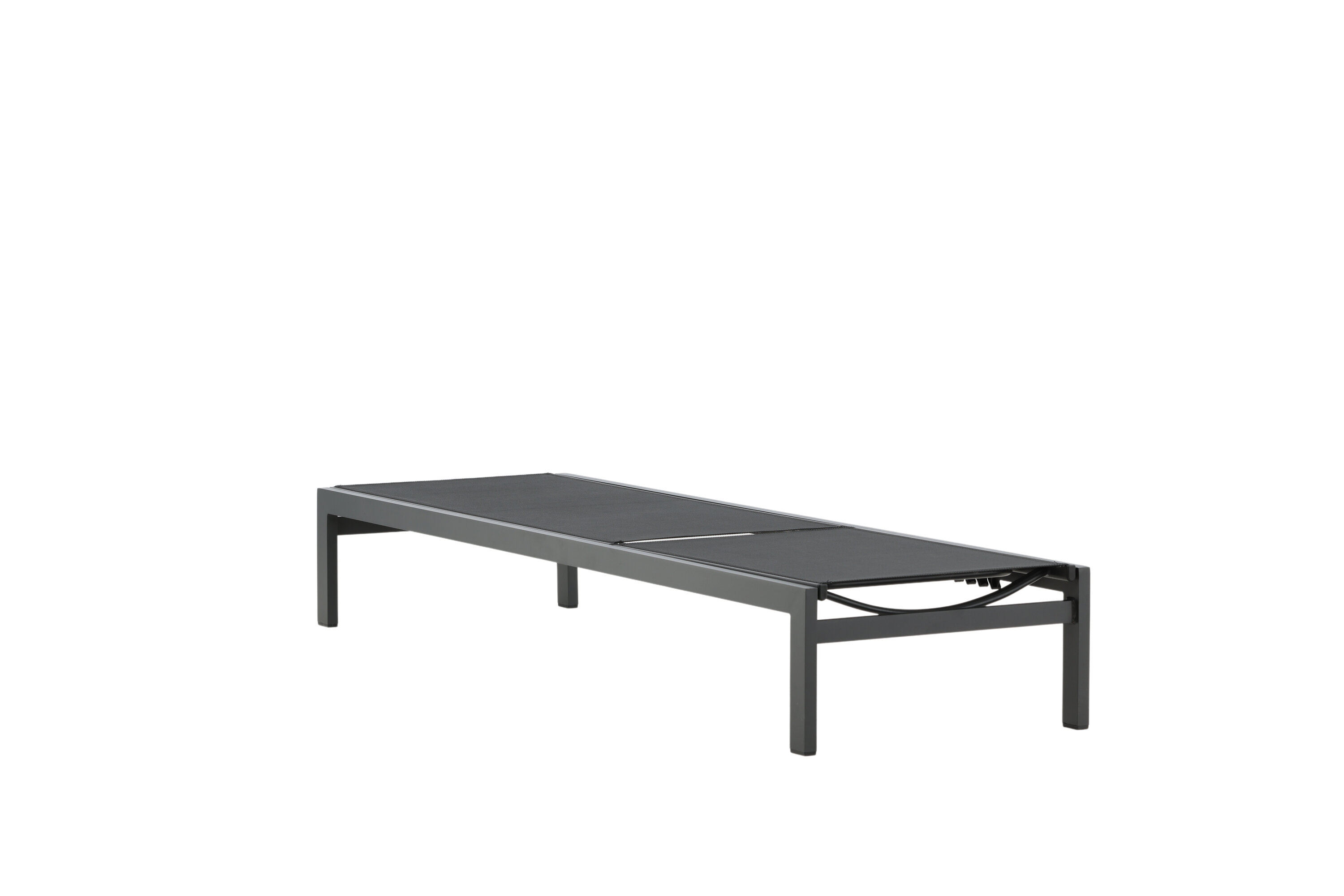 Lit de bronzage classique en aluminium noir et textile. Le dossier du transat peut être ajusté - profitez d'une belle sieste ou pratique et lisez un bon livre !