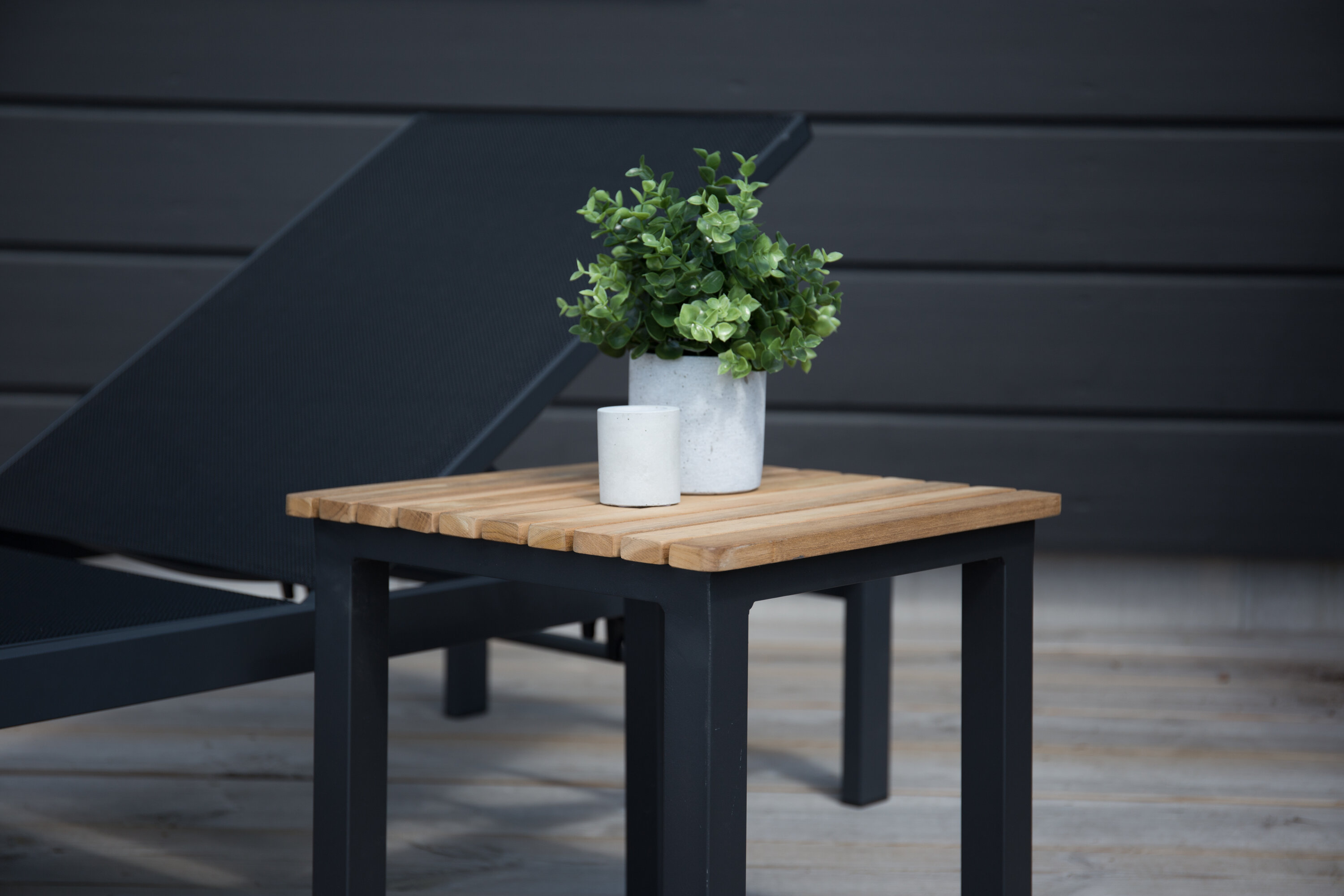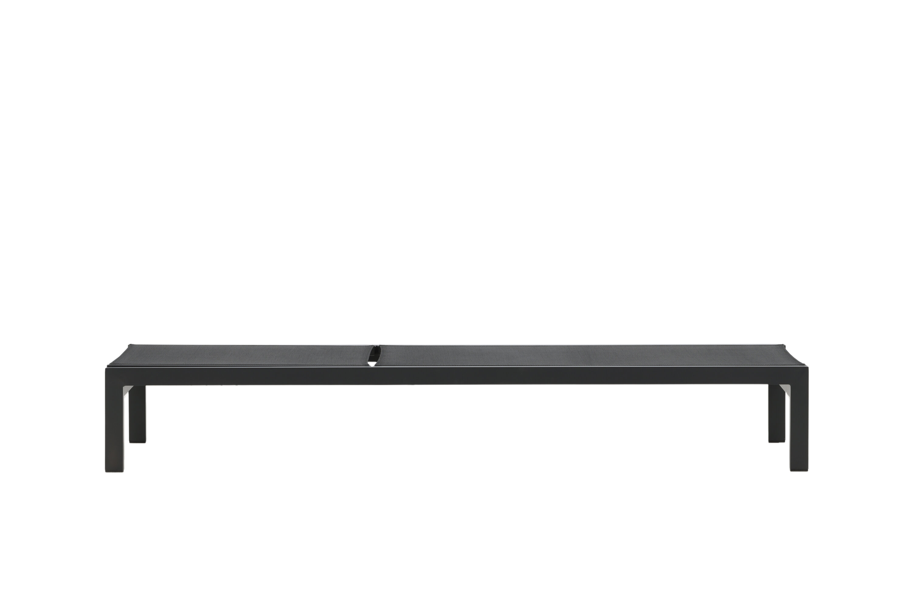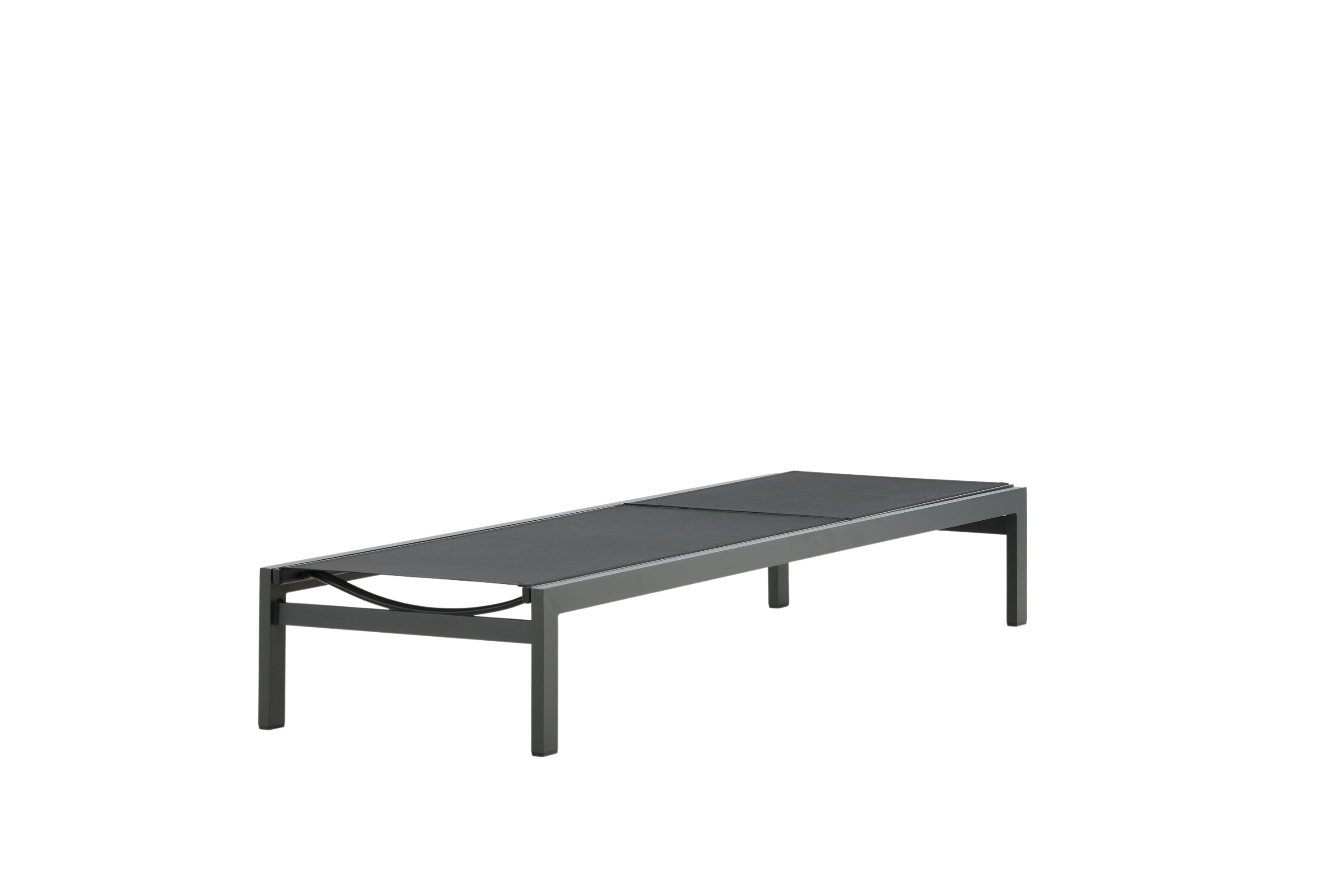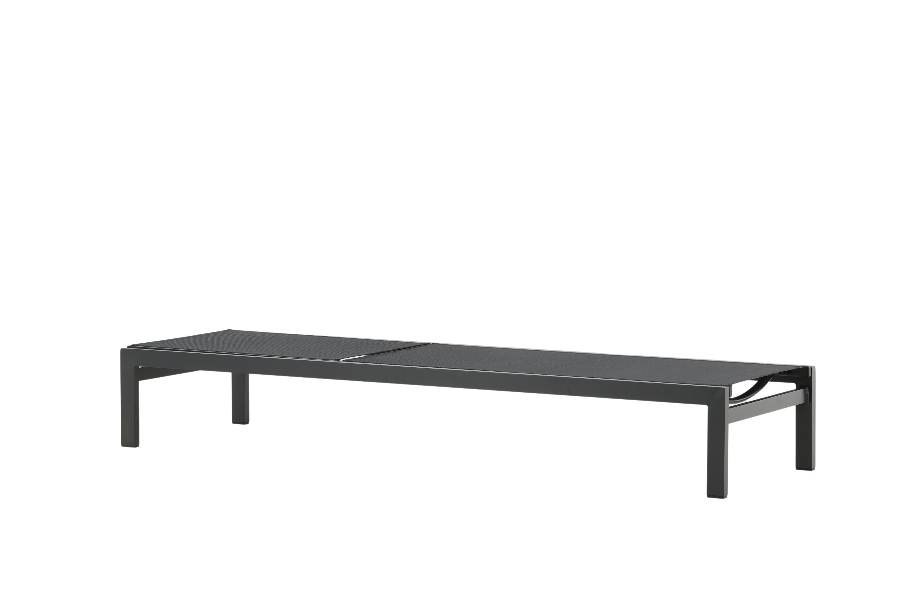 Lit de bronzage classique en aluminium noir et textile. Le dossier du transat peut être ajusté - profitez d'une belle sieste ou pratique et lisez un bon livre !