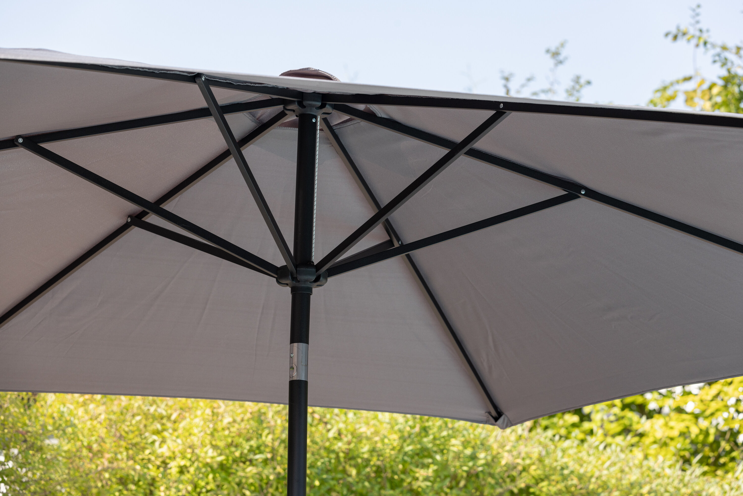 Parasol gris élégant qui vous protège des rayons forts du soleil d'été.
