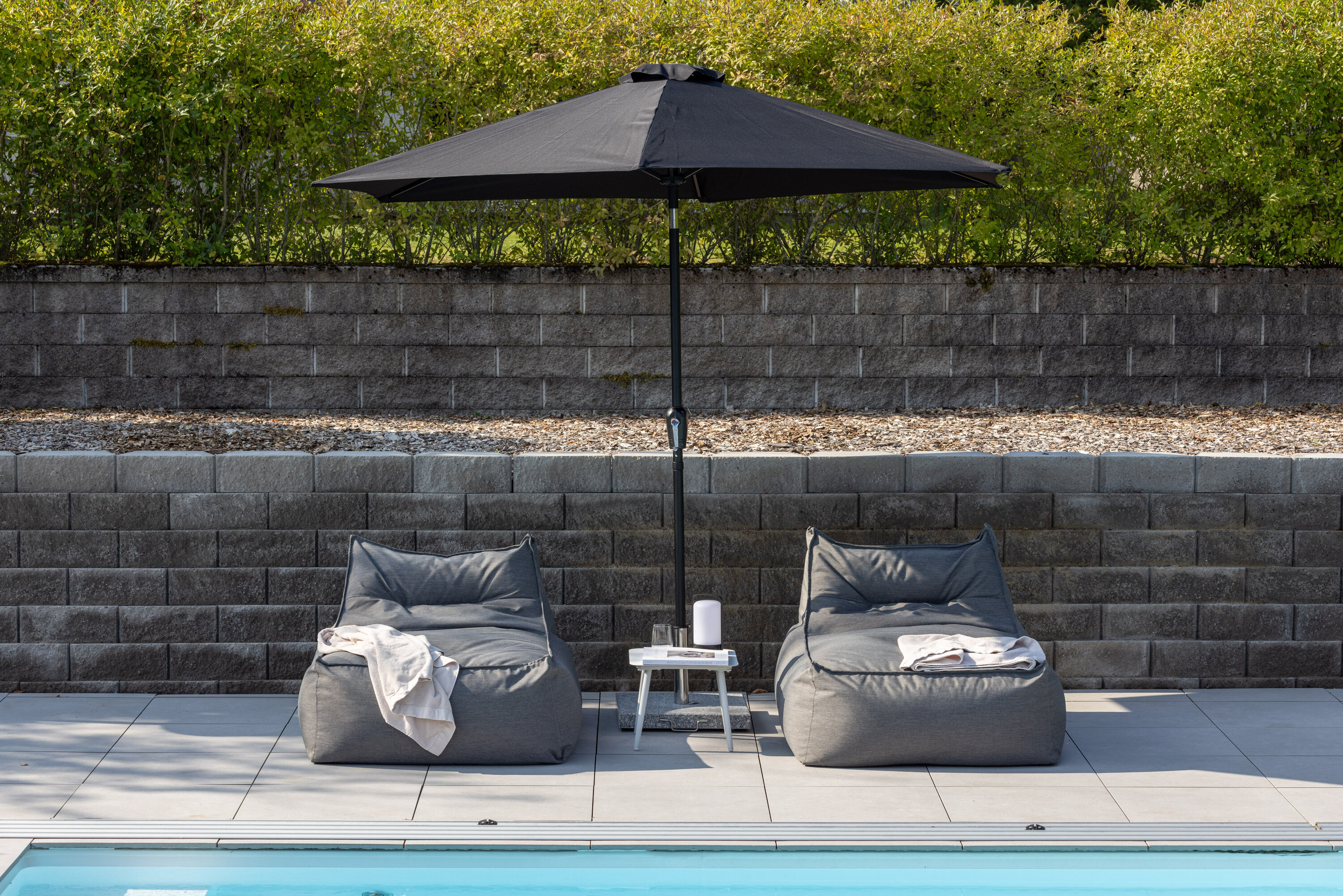 Parapluie noir élégant qui vous protège des rayons forts du soleil d'été.