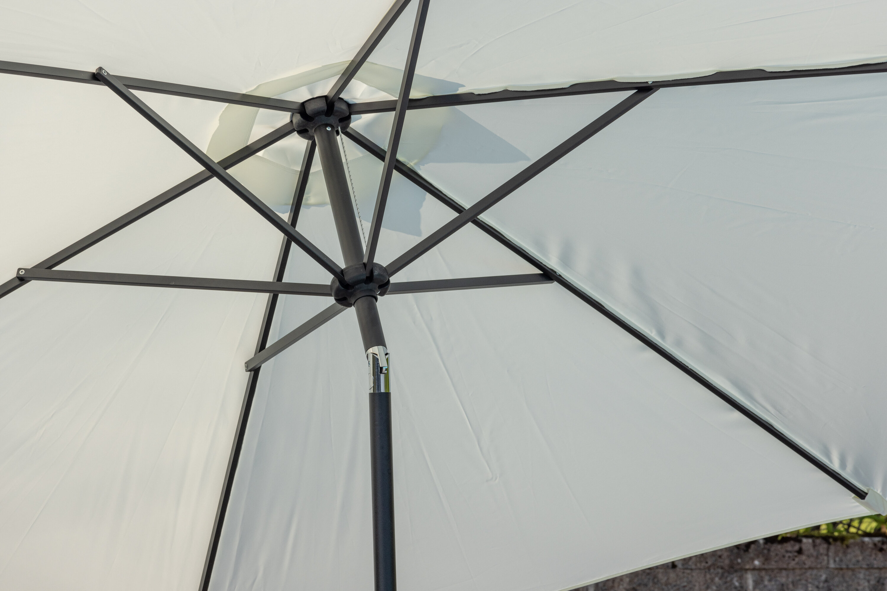 Parasol blanc élégant qui vous protège des rayons forts du soleil d'été.
