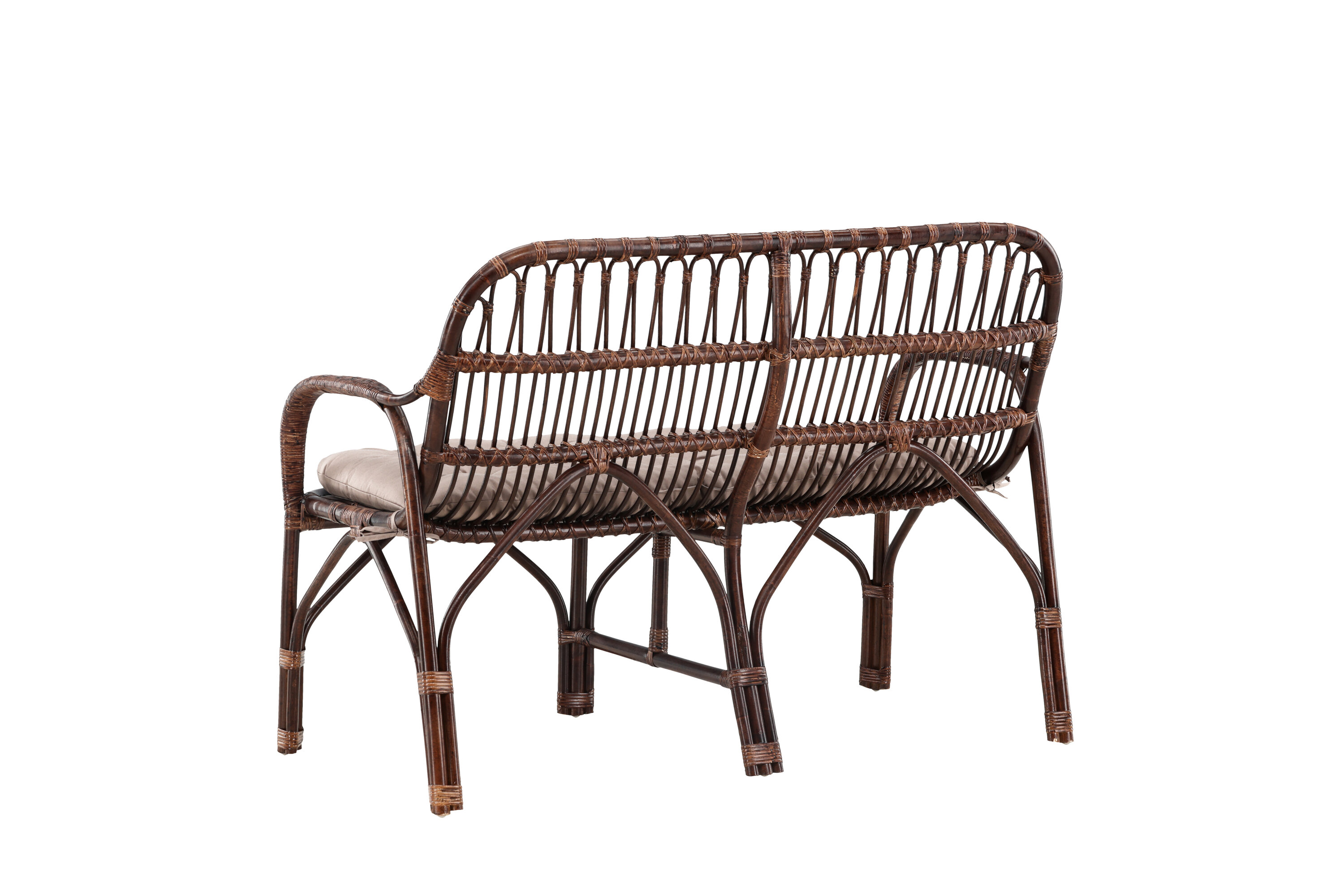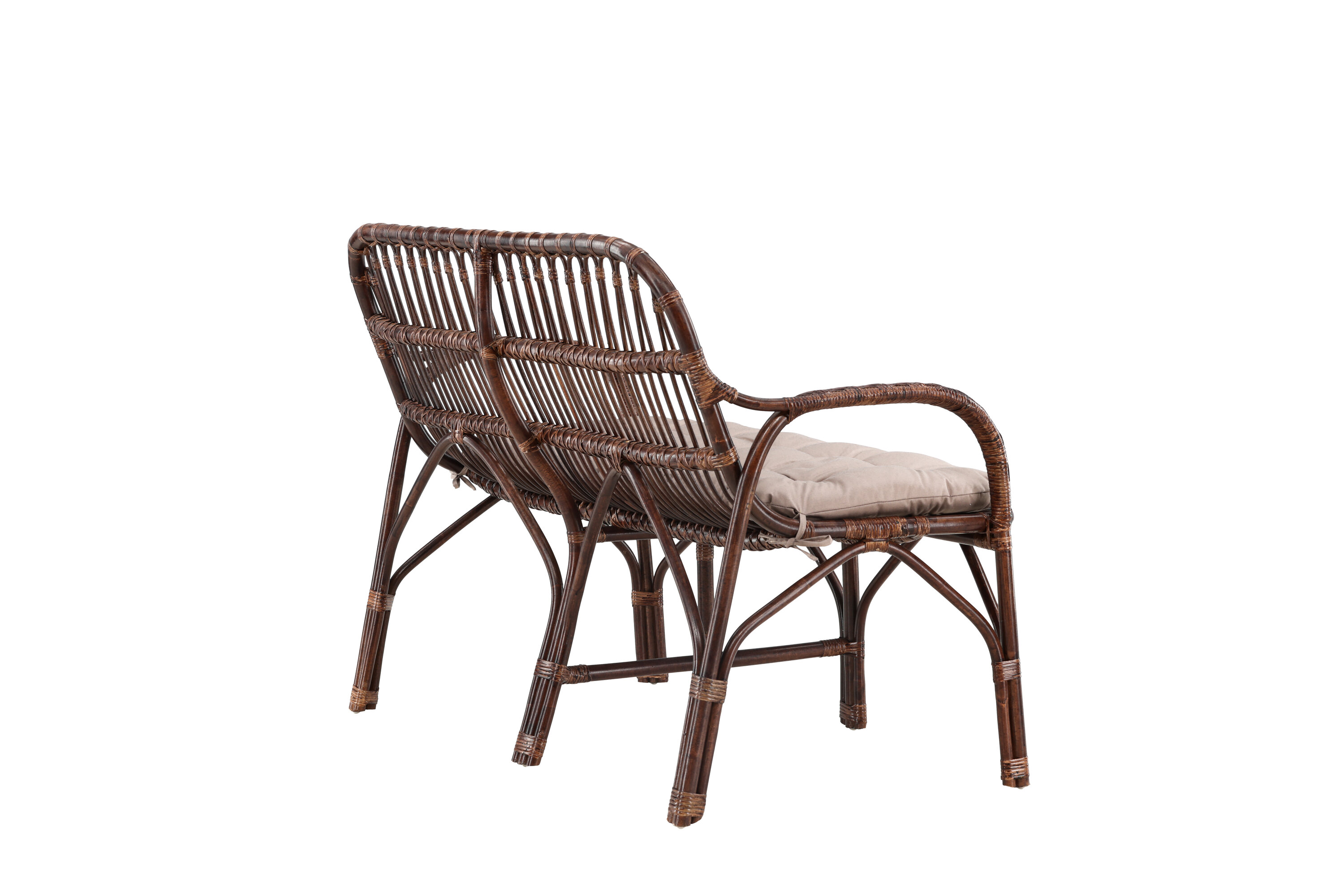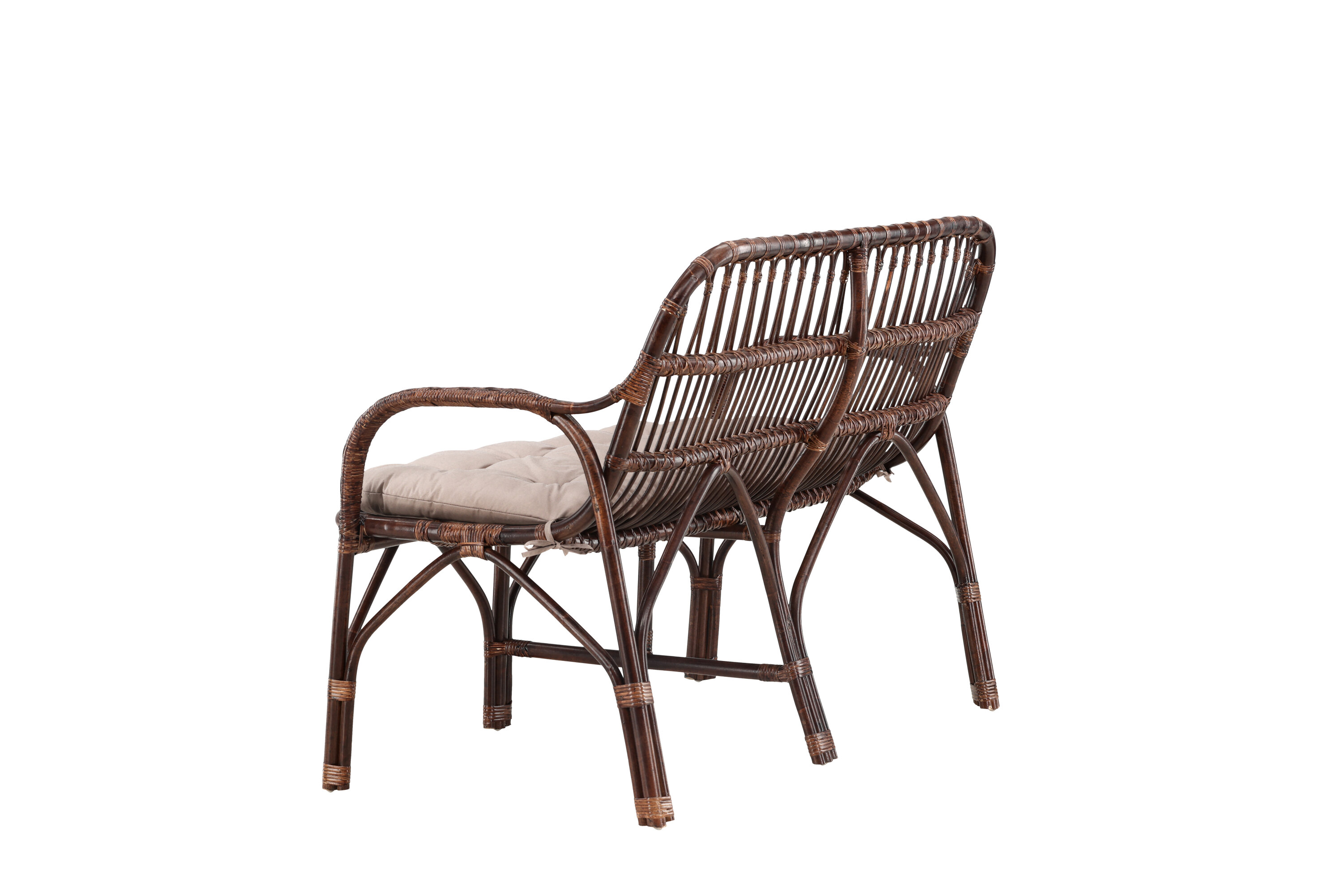 Le canapé Nella allie confort et style avec sa construction en rotin soigneusement conçue et ses choix de couleurs harmonieux. La teinte brune donne une sensation terreuse tandis que les coussins beiges créent un contraste lumineux et aéré, ce qui en fait l'endroit idéal pour se détendre et déguster une tasse de café.