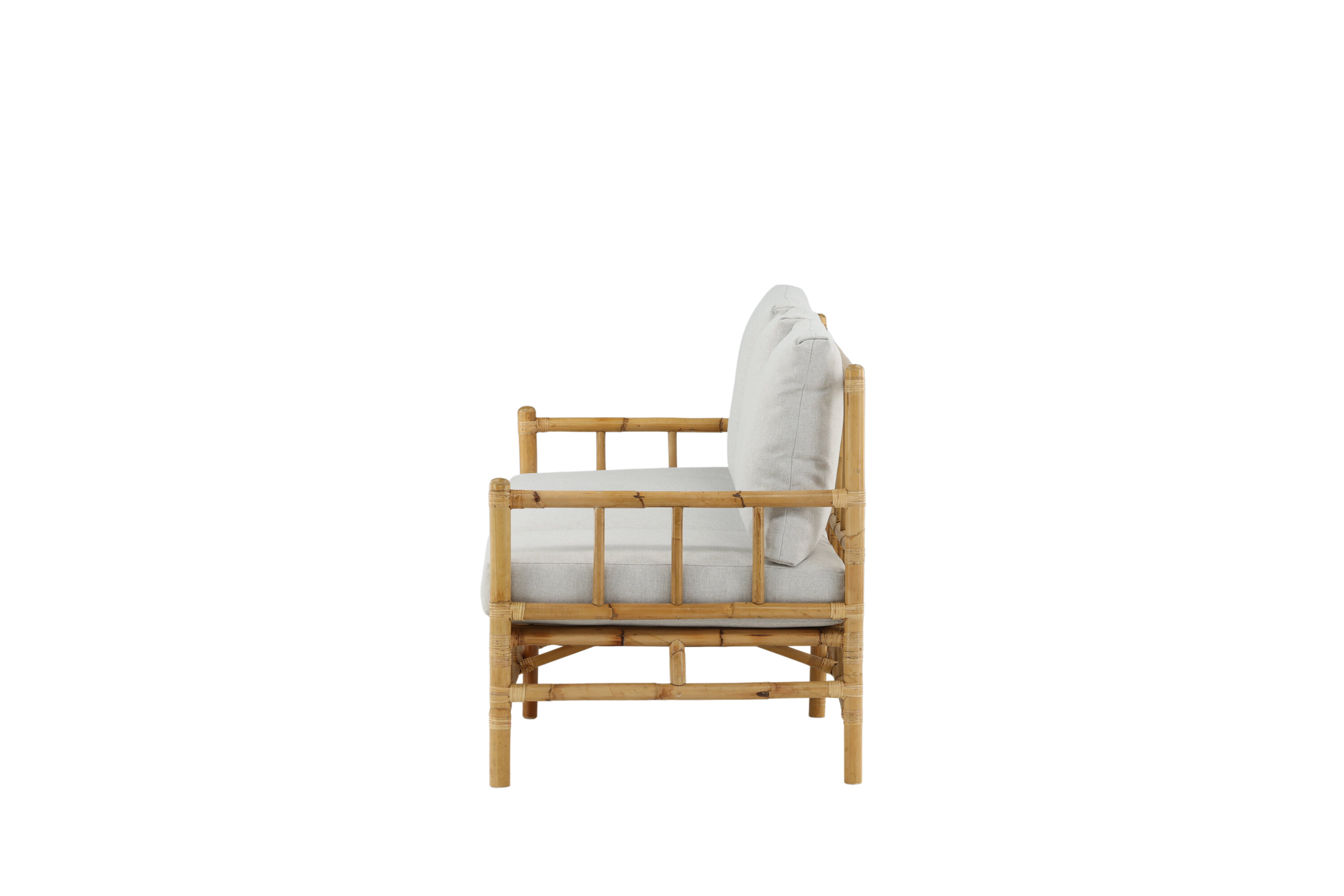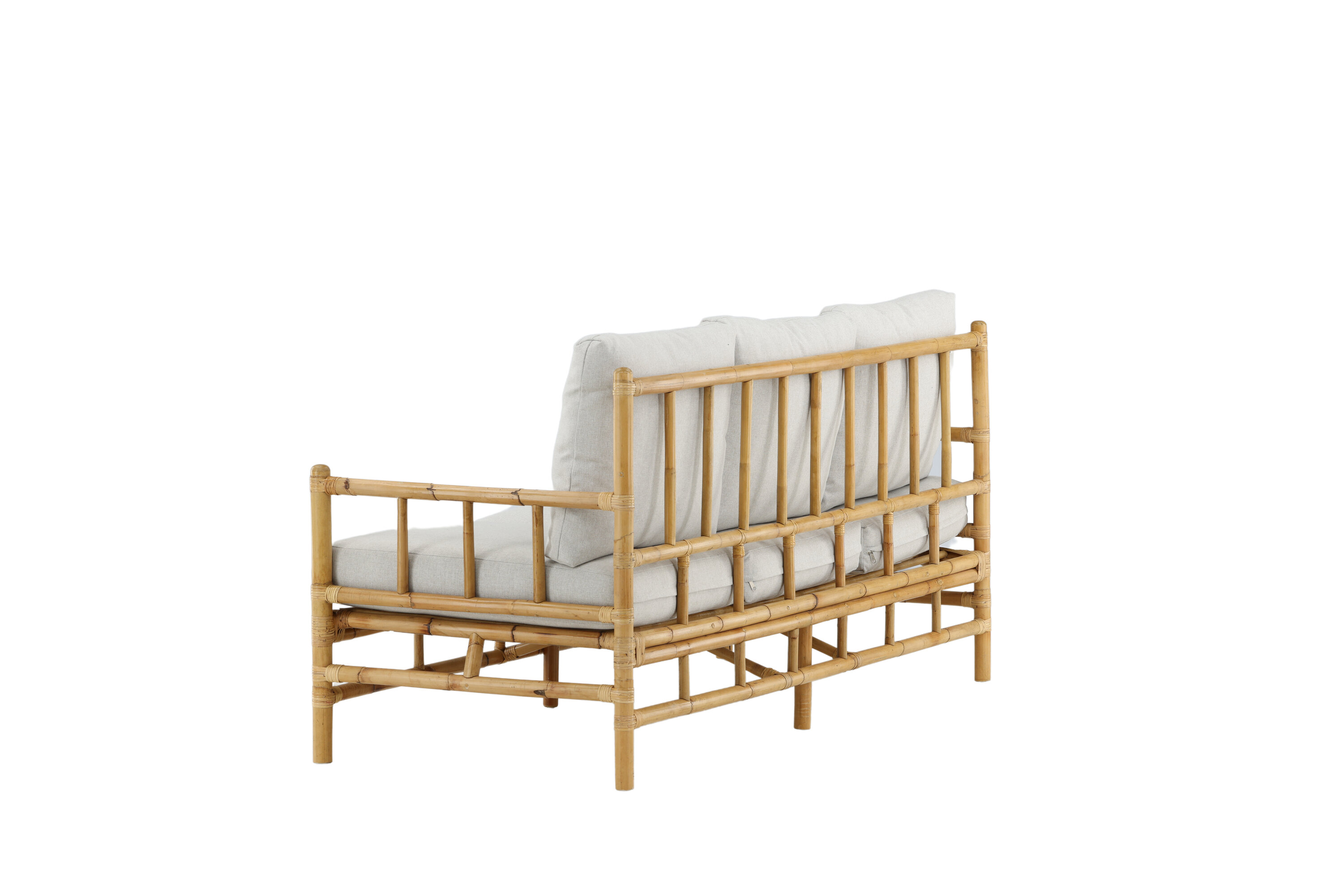 Aménagez le patio avec un canapé en bambou classique au look luxueux de la série Cane ! Ce confortable canapé trois places crée une sensation invitante et tropicale avec son design global réfléchi. Les coussins blancs associés sont en tissu polyester doux. Le corps est en bambou de couleur naturelle et le matériau naturel donne à chaque meuble un caractère unique. Un canapé d'extérieur élégant et élégant attire simplement les yeux et améliore la commodité lors d'une soirée de fin d'été.