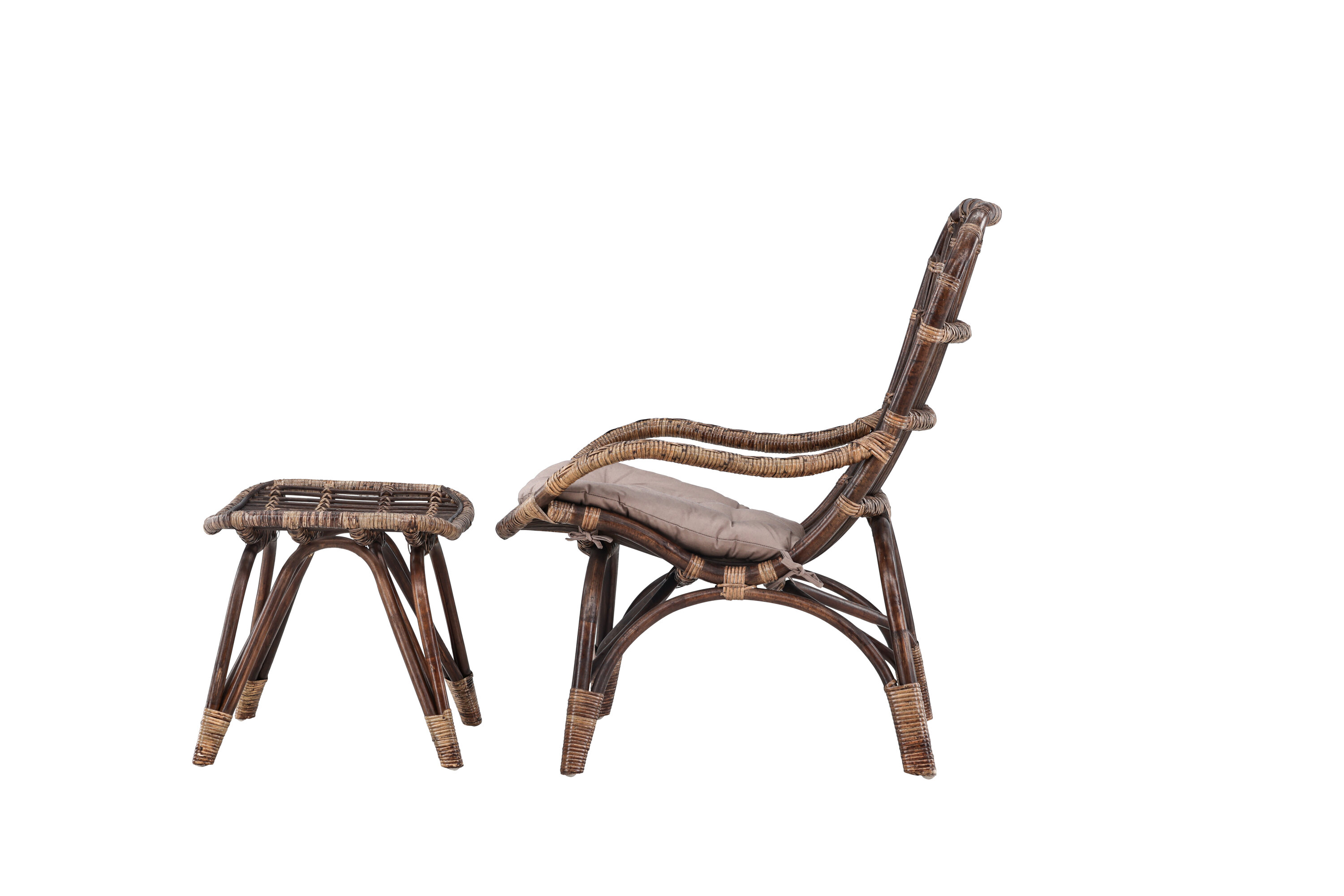 Cette chaise et son repose-pieds assorti, tous deux fabriqués en rotin de noyer noir enchanteur, ajoutent une touche de luxe et de confort à votre environnement extérieur. La beauté naturelle du rotin se combine avec un coussin doux et détendu dans un ton beige apaisant, créant un équilibre parfait entre style et confort.