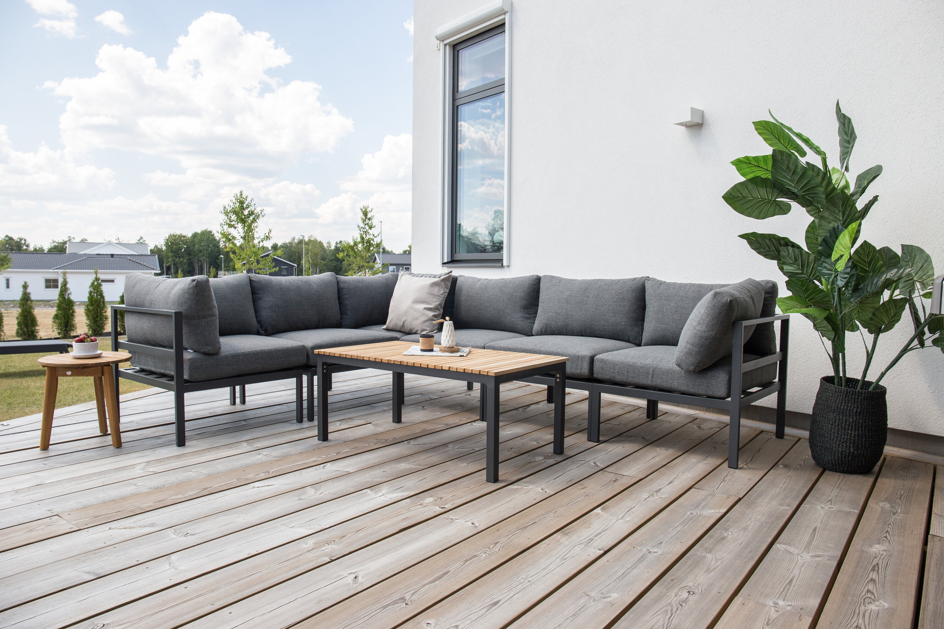 La table basse Brasillia est faite d'aluminium et de teck, assurant à la fois durabilité et esthétique intemporelle. L'aluminium confère à la table une structure légère et résistante à la rouille qui résiste à toutes les conditions météorologiques, tandis que la beauté naturelle et la chaleur du teck ajoutent une touche élégante à votre environnement extérieur.
