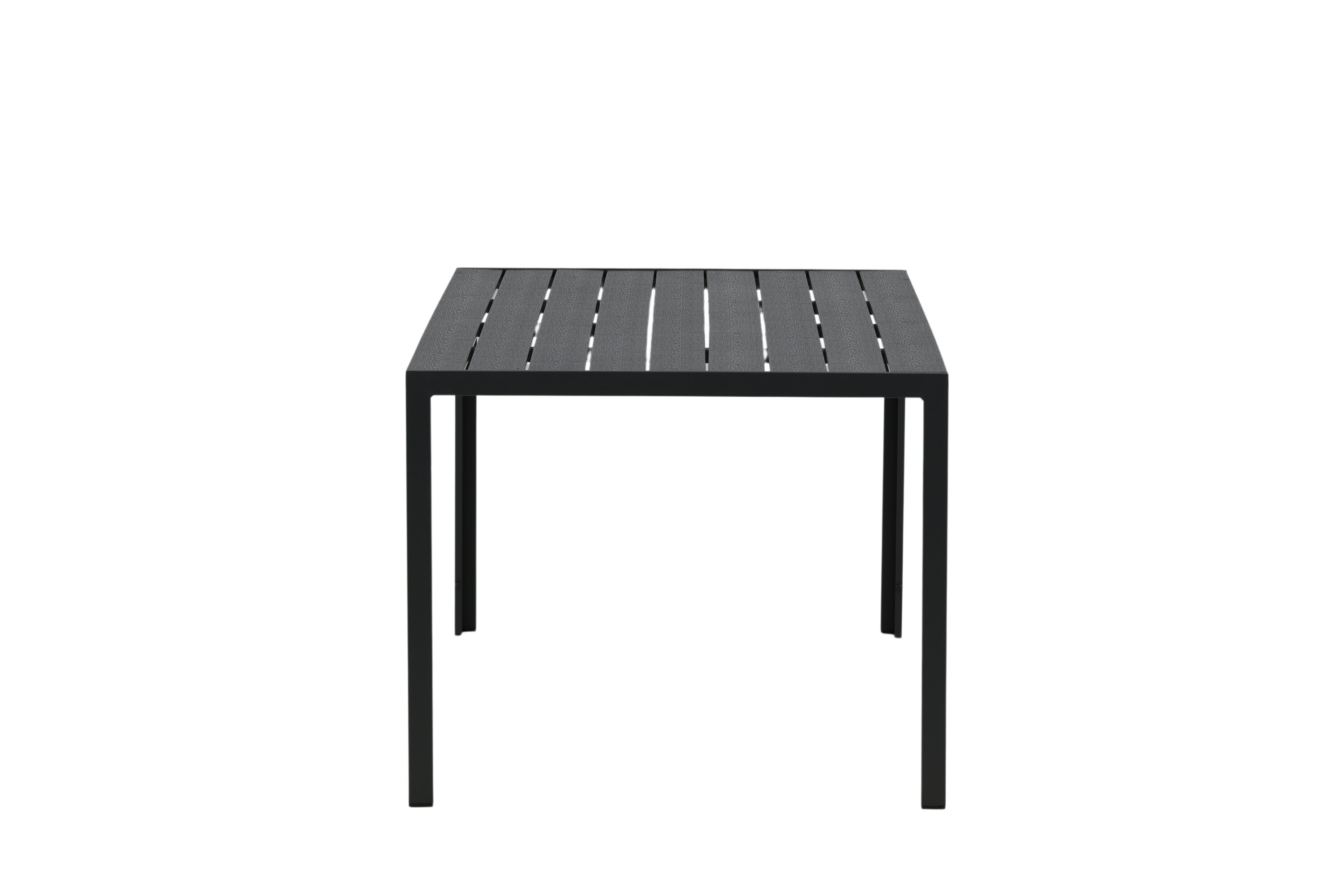 Table de salle à manger simple et élégante de couleur noire intemporelle avec un plateau en contreplaqué et un châssis en aluminium. Break est une table à manger flexible qui s'adapte aussi bien à l'espace extérieur qu'au balcon. Apportez une touche personnelle aux meubles en les assortissant à une paire de délicieuses chaises de salle à manger à votre goût. Invitez à de beaux dîners cet été !
