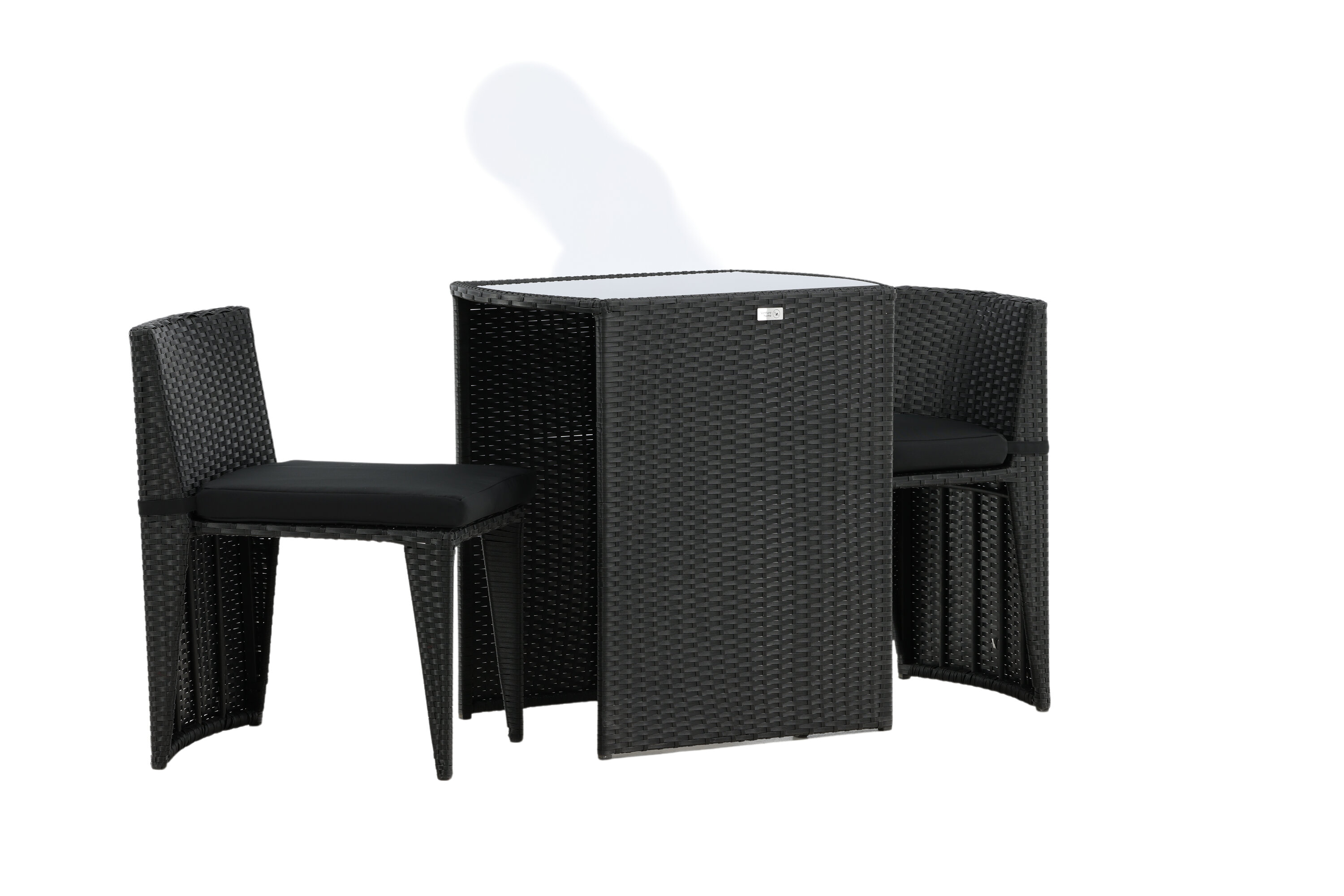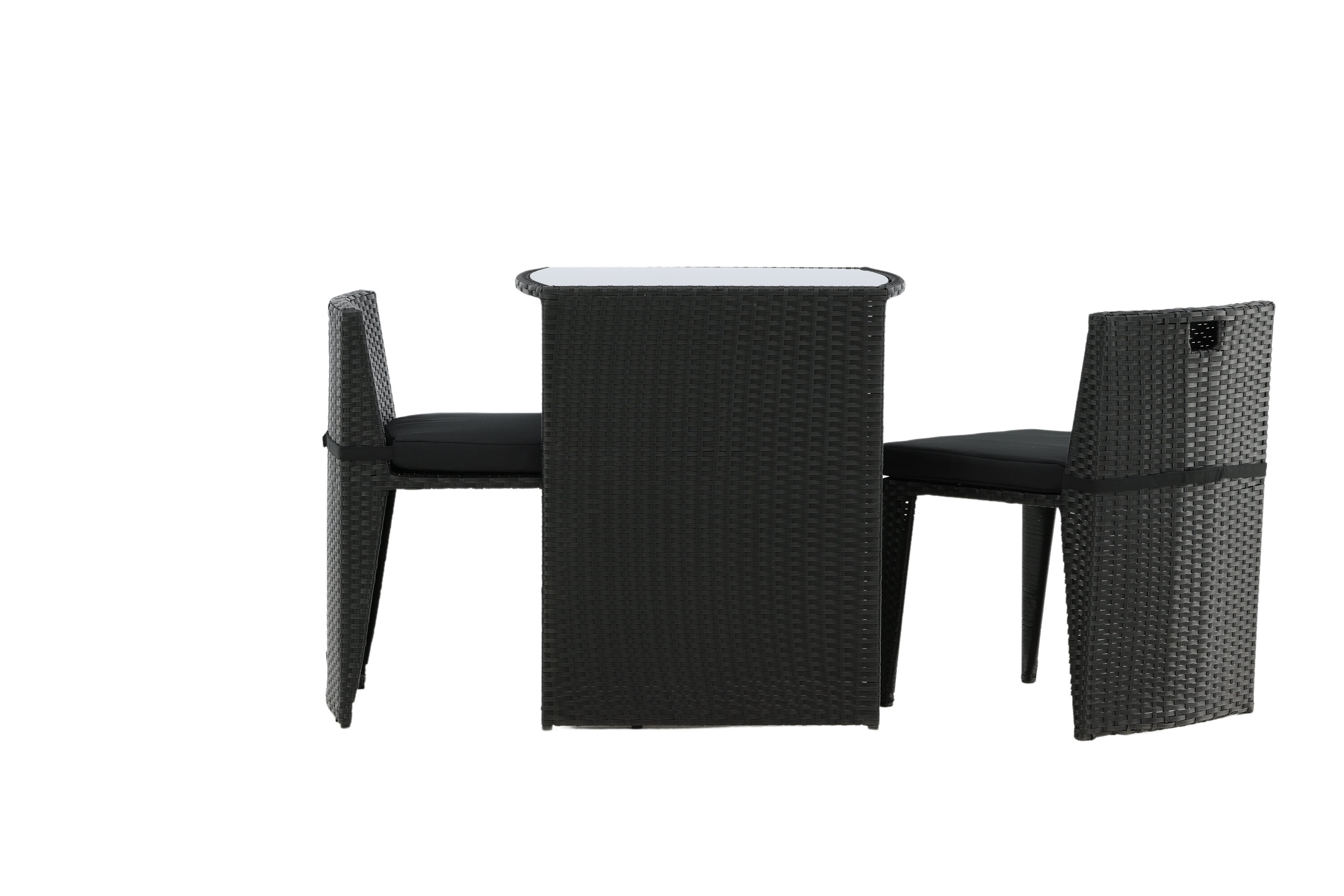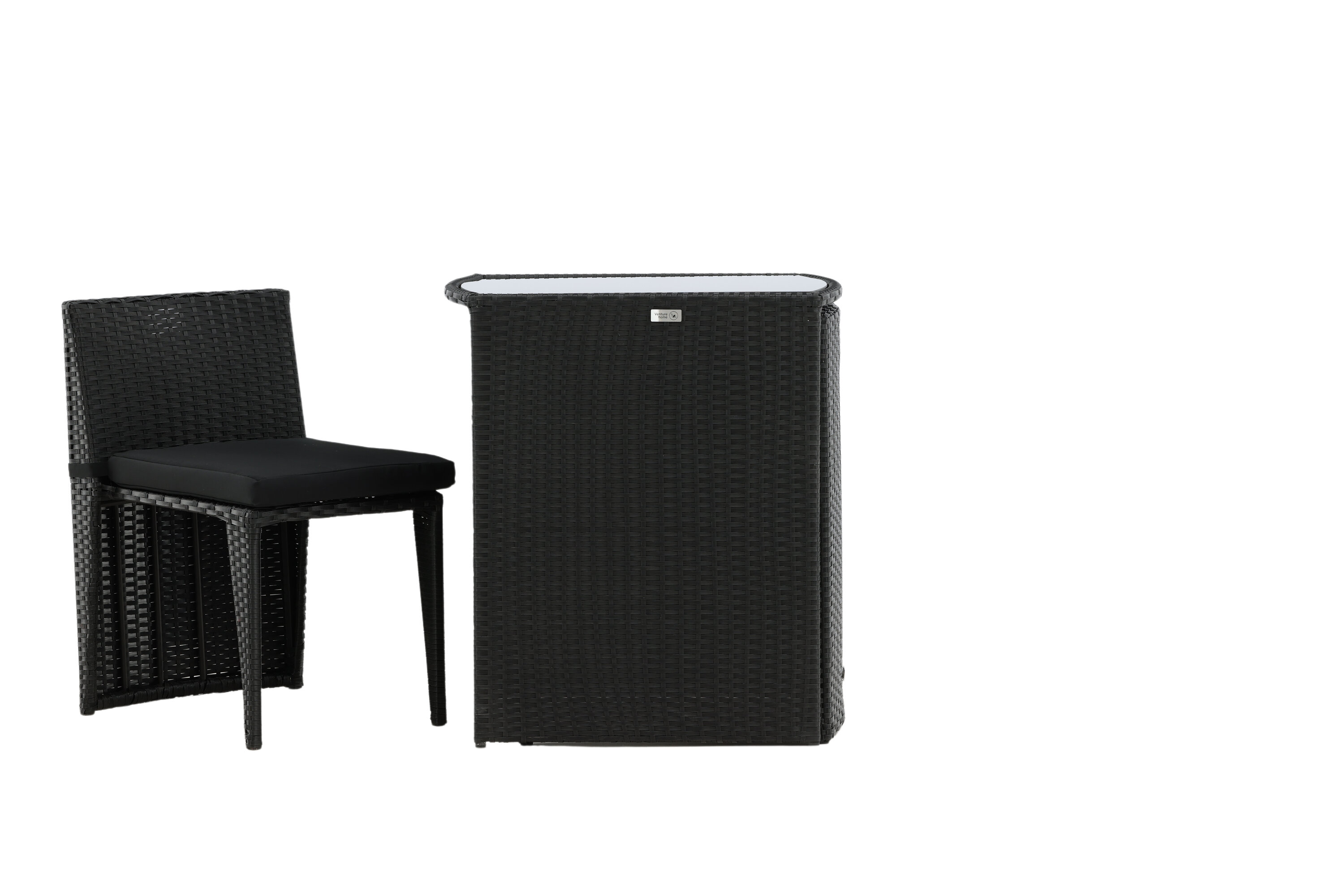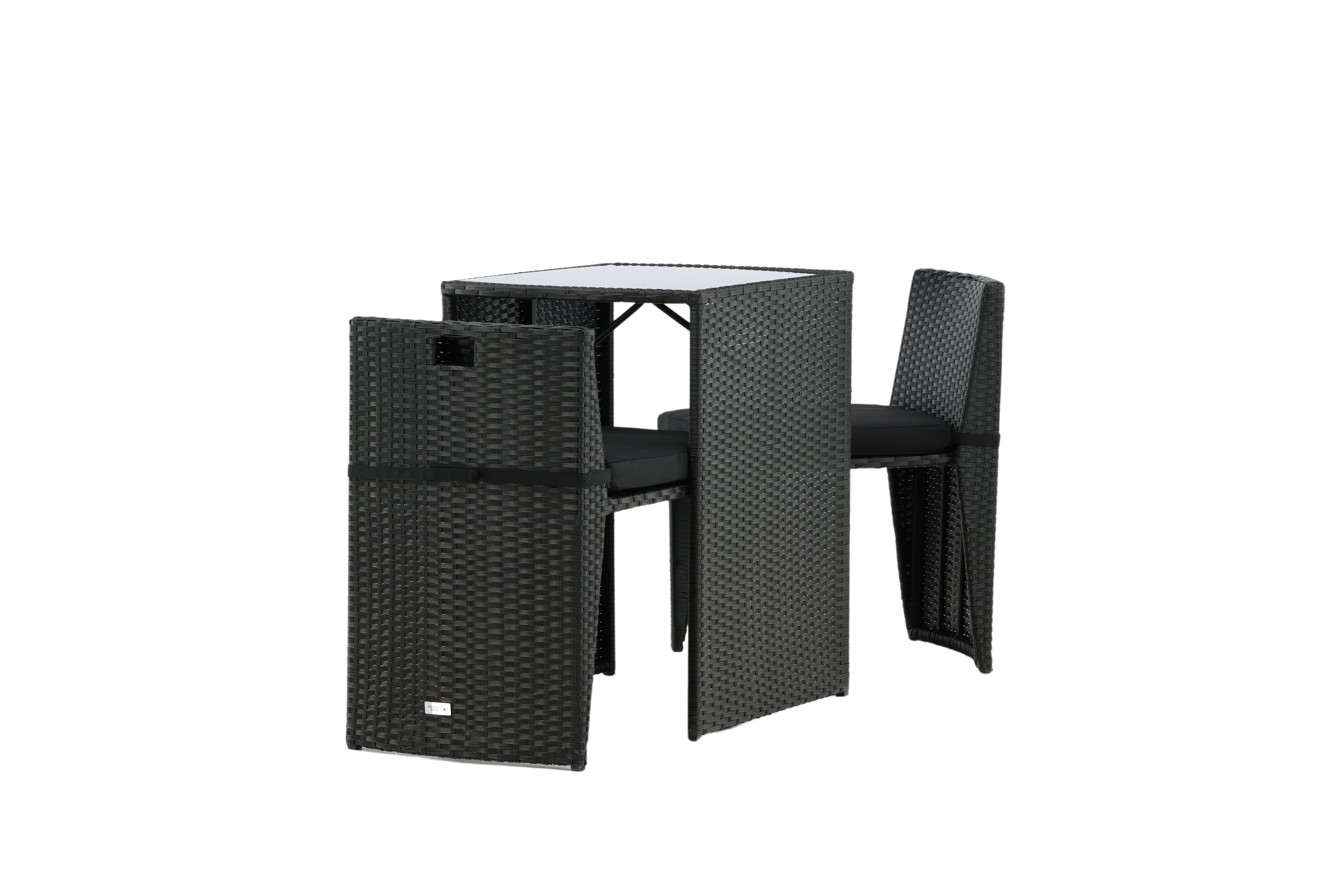 Café noir confortable dans un joli design en rotin artificiel durable qui s'adapte parfaitement au petit patio. L'ensemble du café se compose de deux chaises et d'une table avec une plaque de verre associée qui représente à la fois le temps et le vent, les chaises soignées sont livrées avec des coussins de siège souples et vous pouvez facilement pousser les chaises sous la table pour un rangement facile et un gain de place.