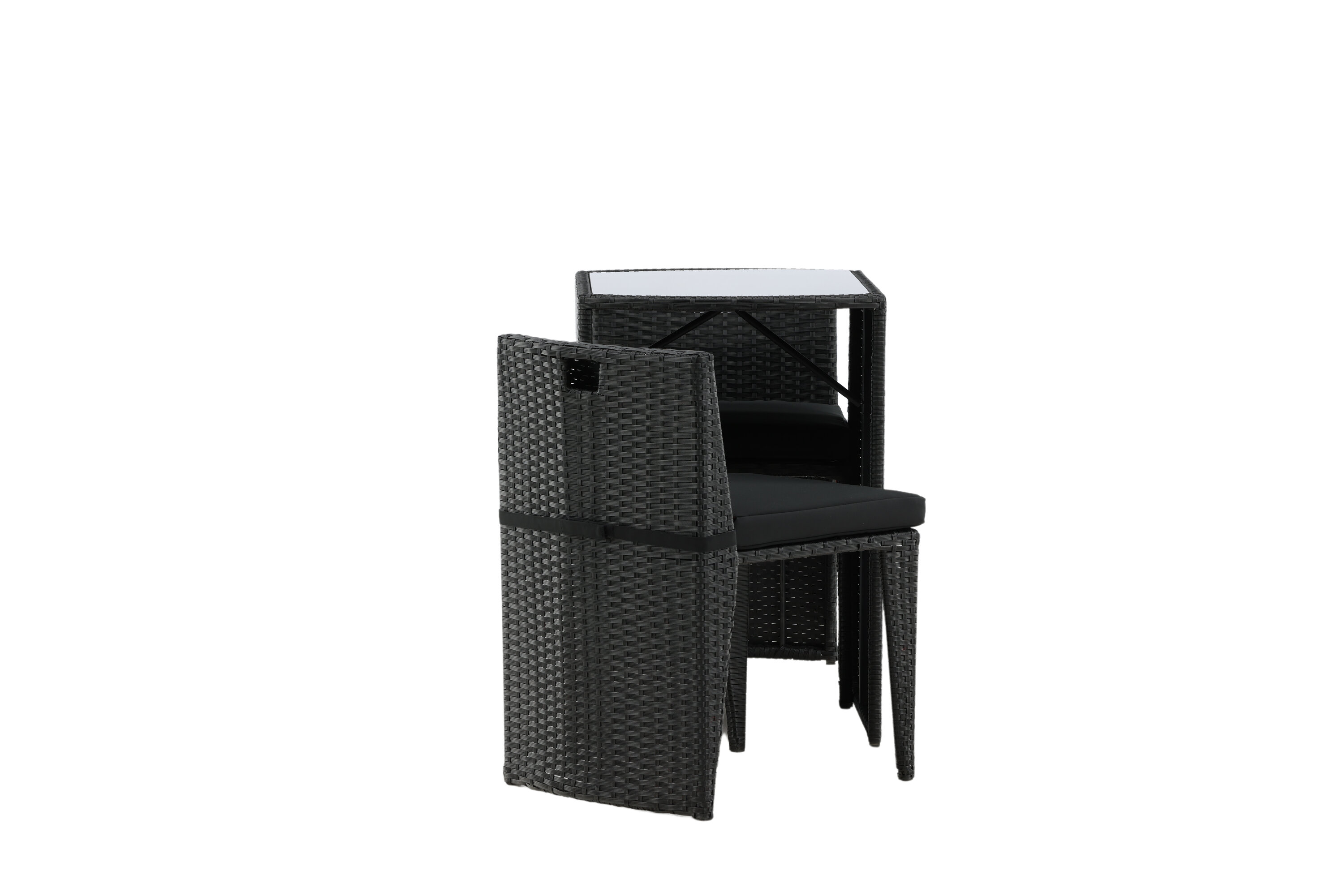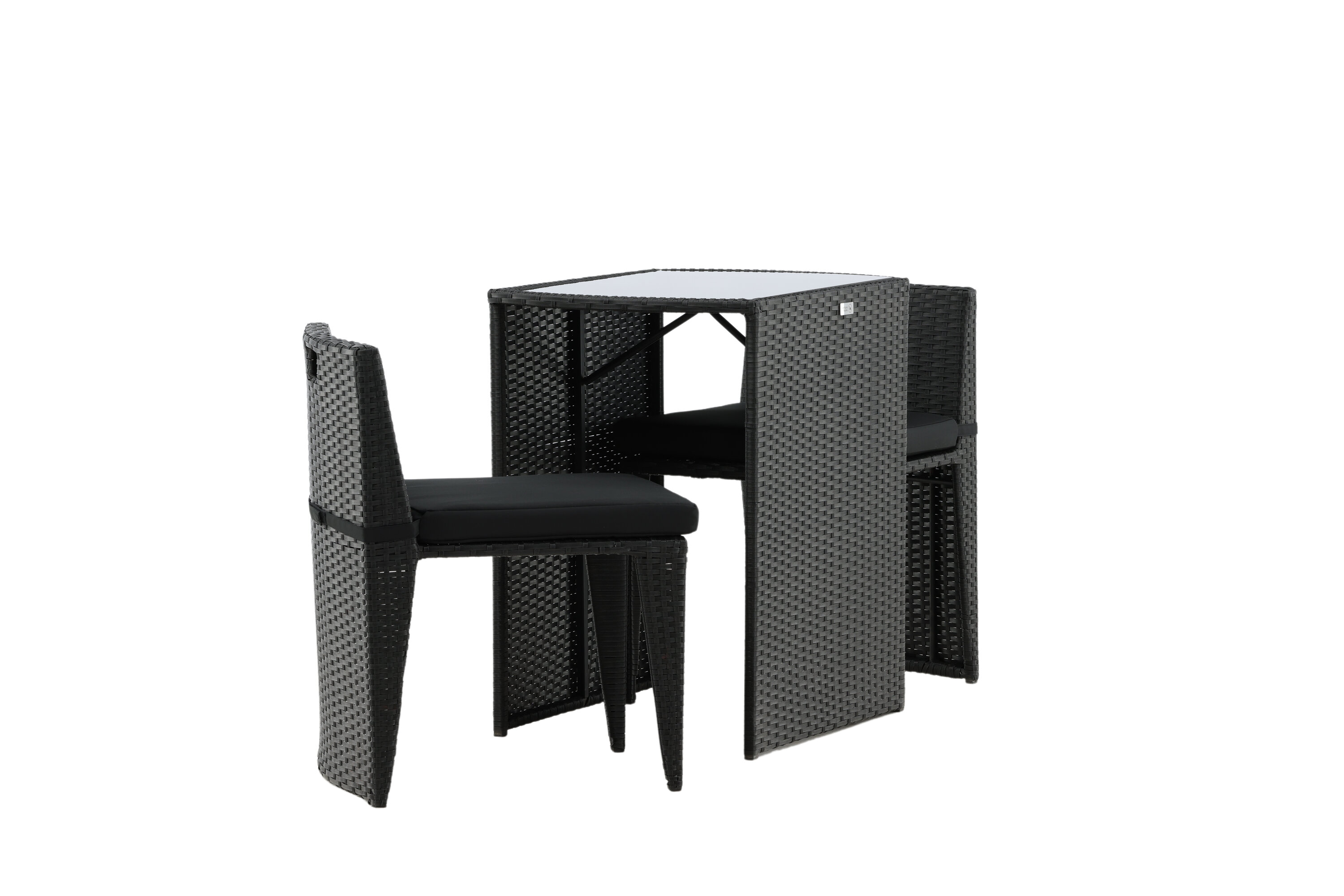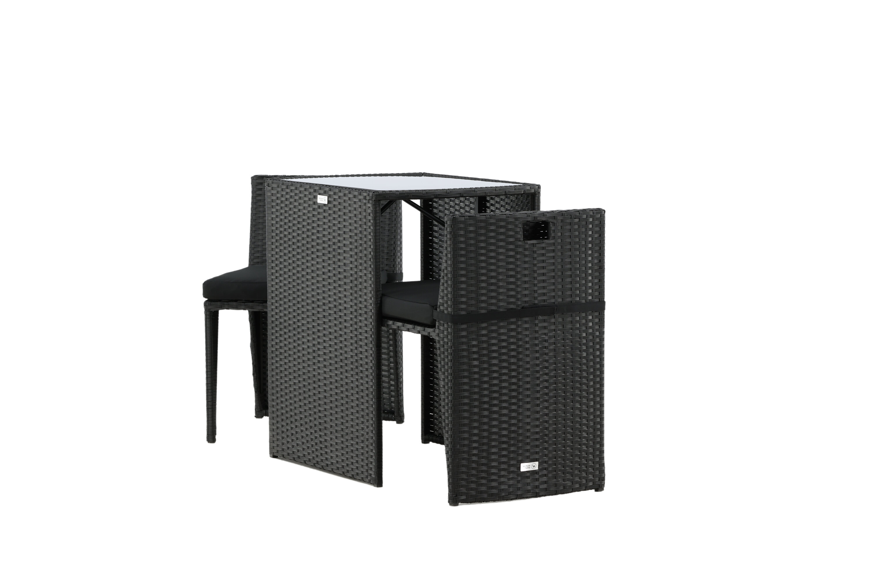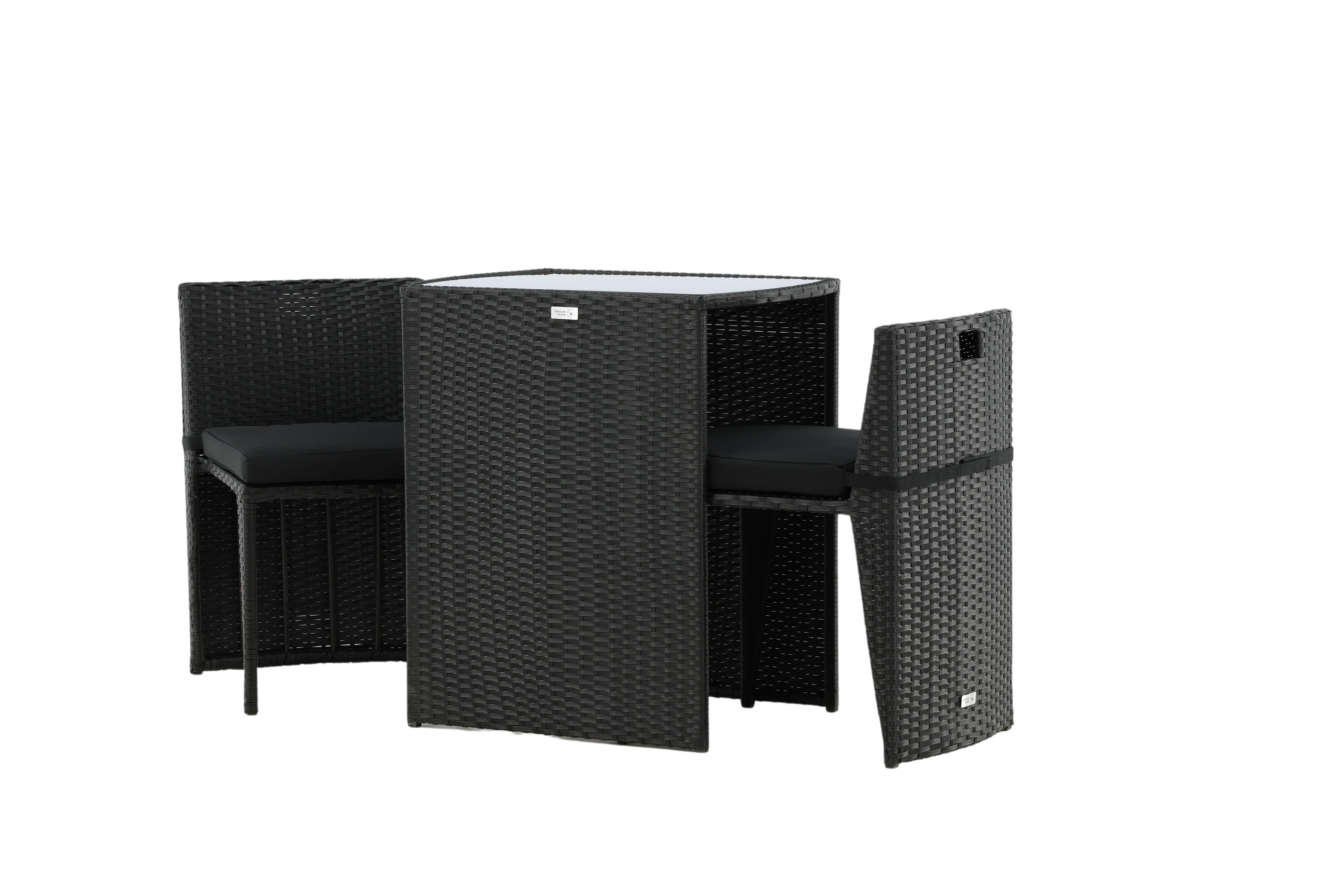 Café noir confortable dans un joli design en rotin artificiel durable qui s'adapte parfaitement au petit patio. L'ensemble du café se compose de deux chaises et d'une table avec une plaque de verre associée qui représente à la fois le temps et le vent, les chaises soignées sont livrées avec des coussins de siège souples et vous pouvez facilement pousser les chaises sous la table pour un rangement facile et un gain de place.